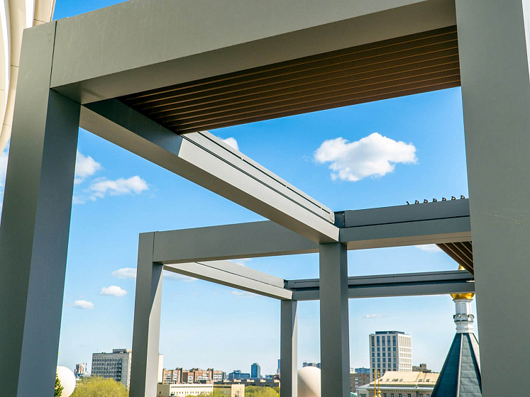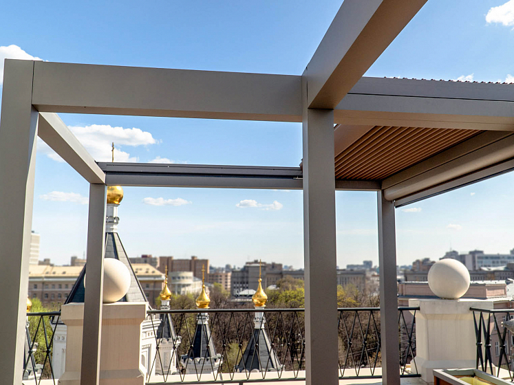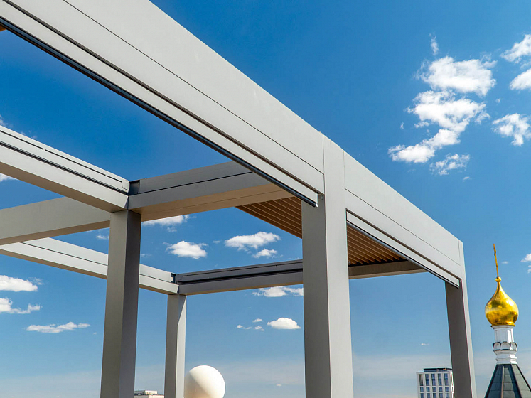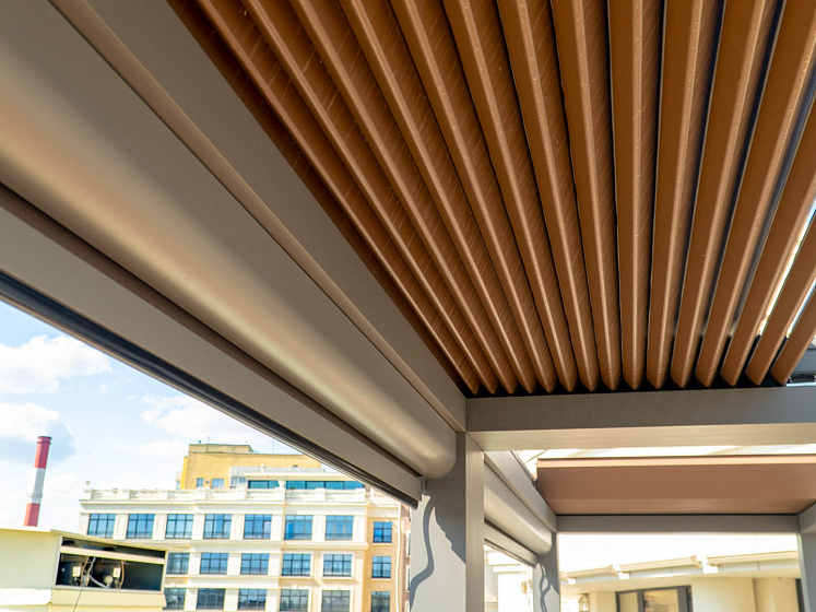 - Комфорт. Автоматические сдвижные ламели позволяют регулировать уровень освещённости и защиты от ветра и дождя.