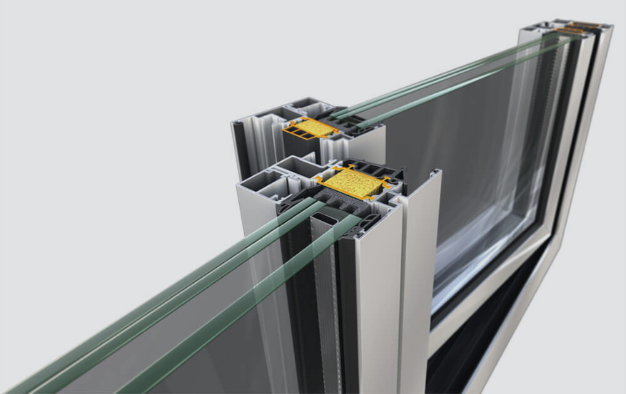 - Высокий коэффициент теплоизоляции обеспечивается строением профиля и специальными термовставками.
