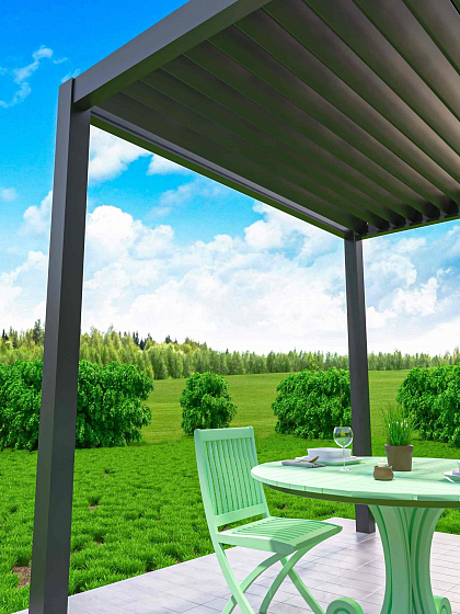 В биоклиматиках все великолепно — всепогодные, впечатляющие, можно устанавливать в ветреных регионах. Многим частным домовладельцам нравится дизайн и идея, но цена биоклиматик даже небольших размеров с монтажом и дополнительными опциями может быть около миллиона рублей, при этом ее технические характеристики далеко превосходят потребности небольшой частной террасы.