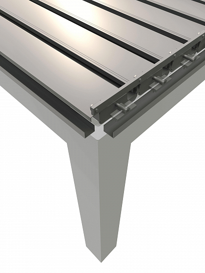 Это новая инвестиционная модель. Чем она отличается от основной линейки? Выглядит также великолепно, но значительно легче и менее мощная — это и есть главное отличие от стандартных биоклиматик, эту модель мы можем изготовить в нужном размере, что существенно снижает стоимость.