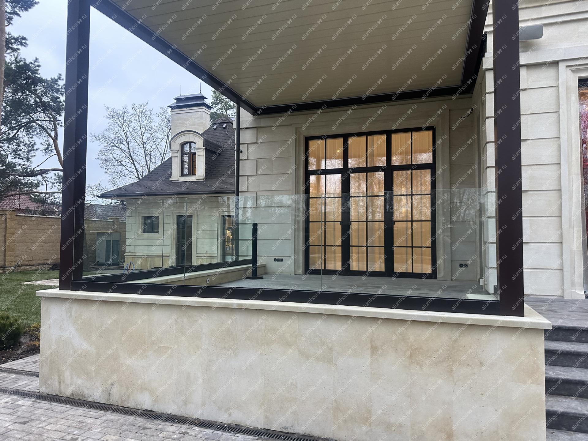 Комплексное остекление коттеджа с установкой алюминиевых окон, раздвижных систем, стеклянного ограждения и безрамного остекления.