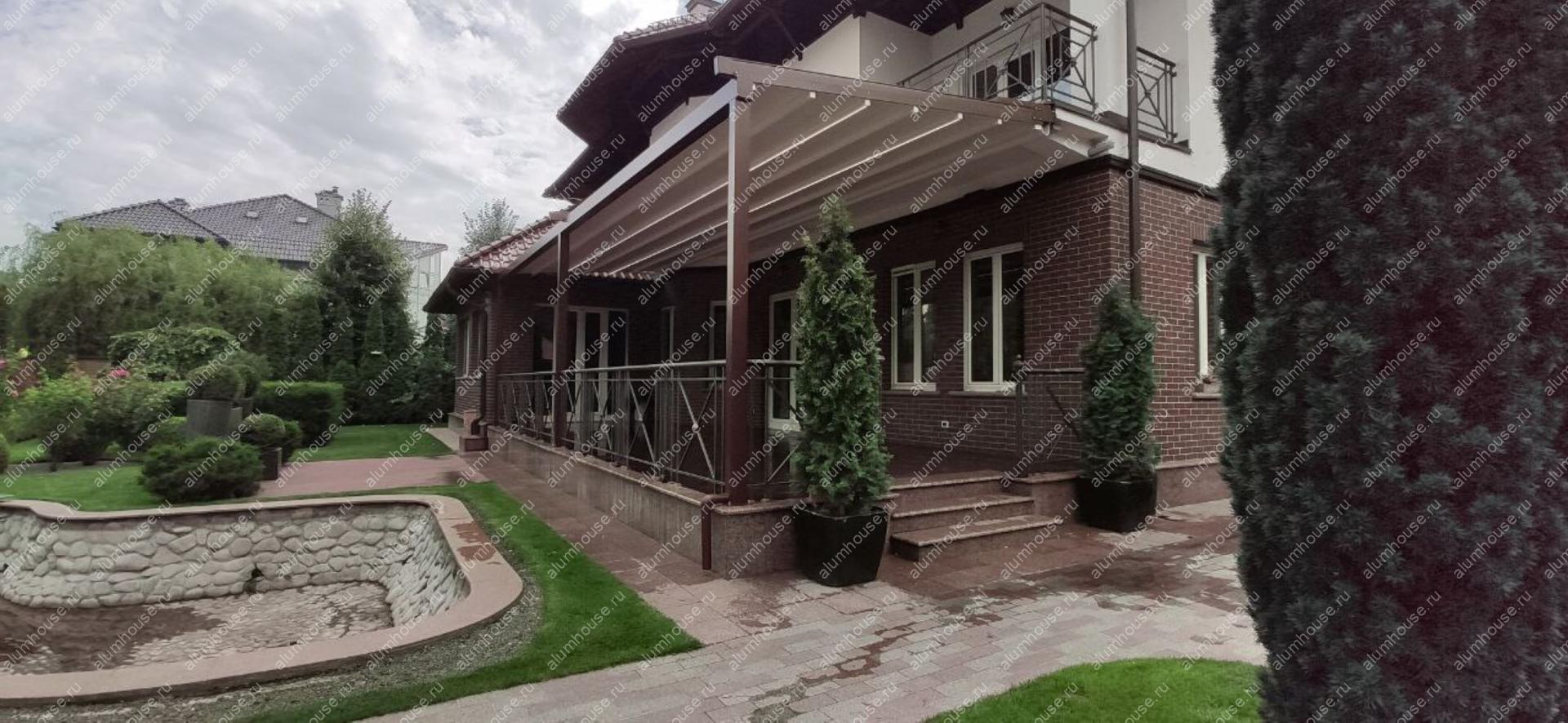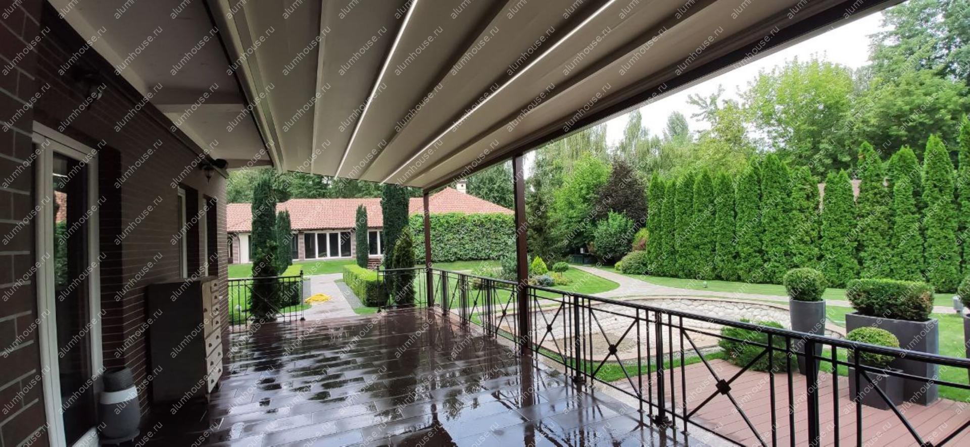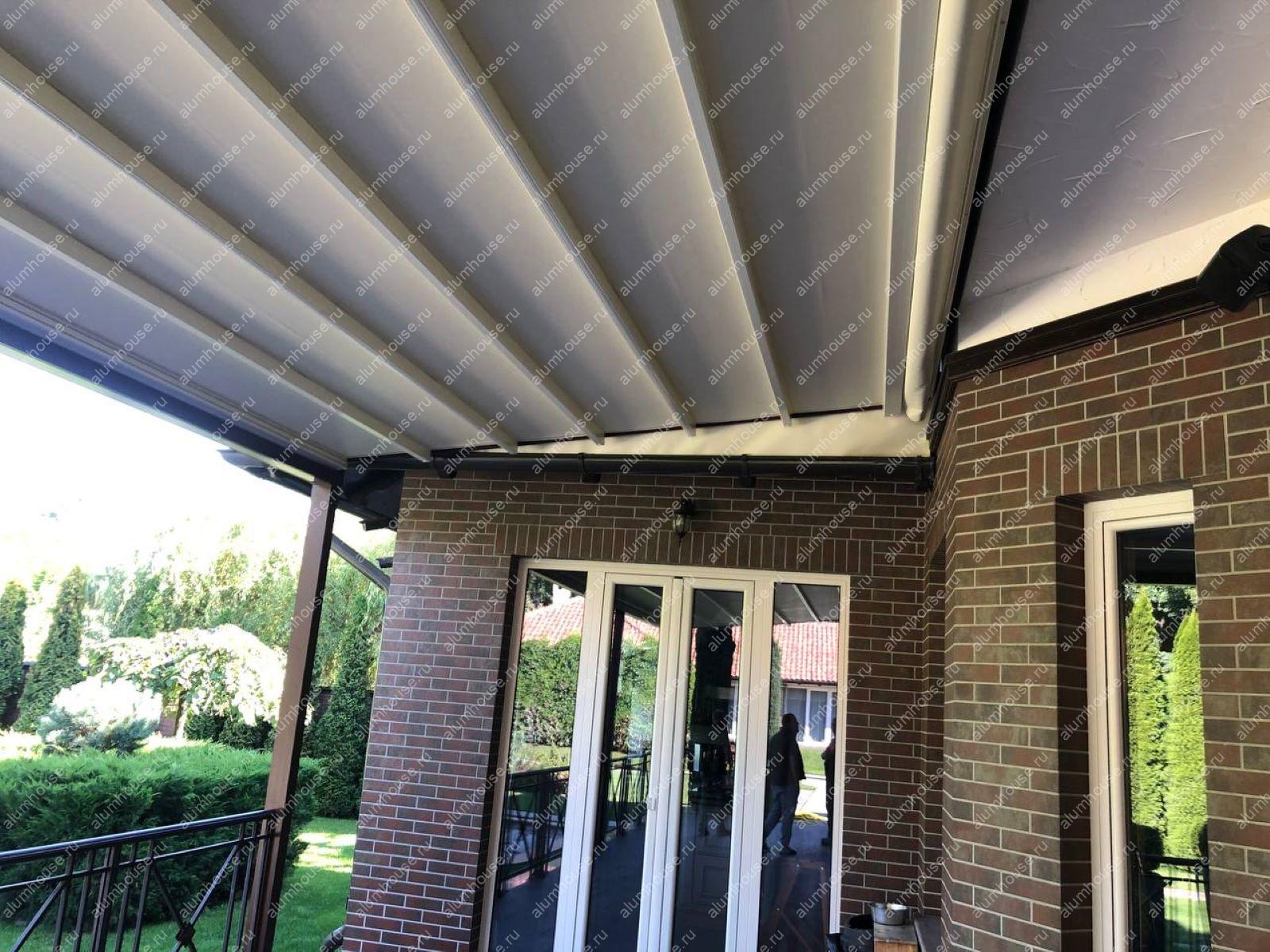 Такая алюминиевая пергола со складным тентом стала стильным и современным элементом террасы, объединив комфорт, надёжность и индивидуальный подход к оформлению уличного пространства.