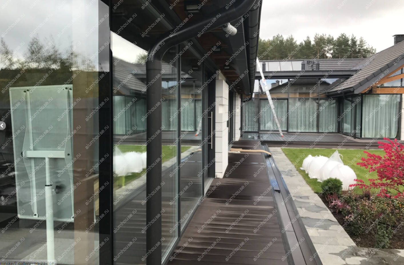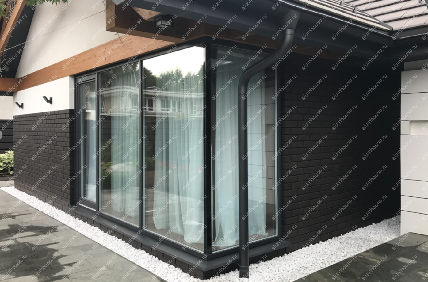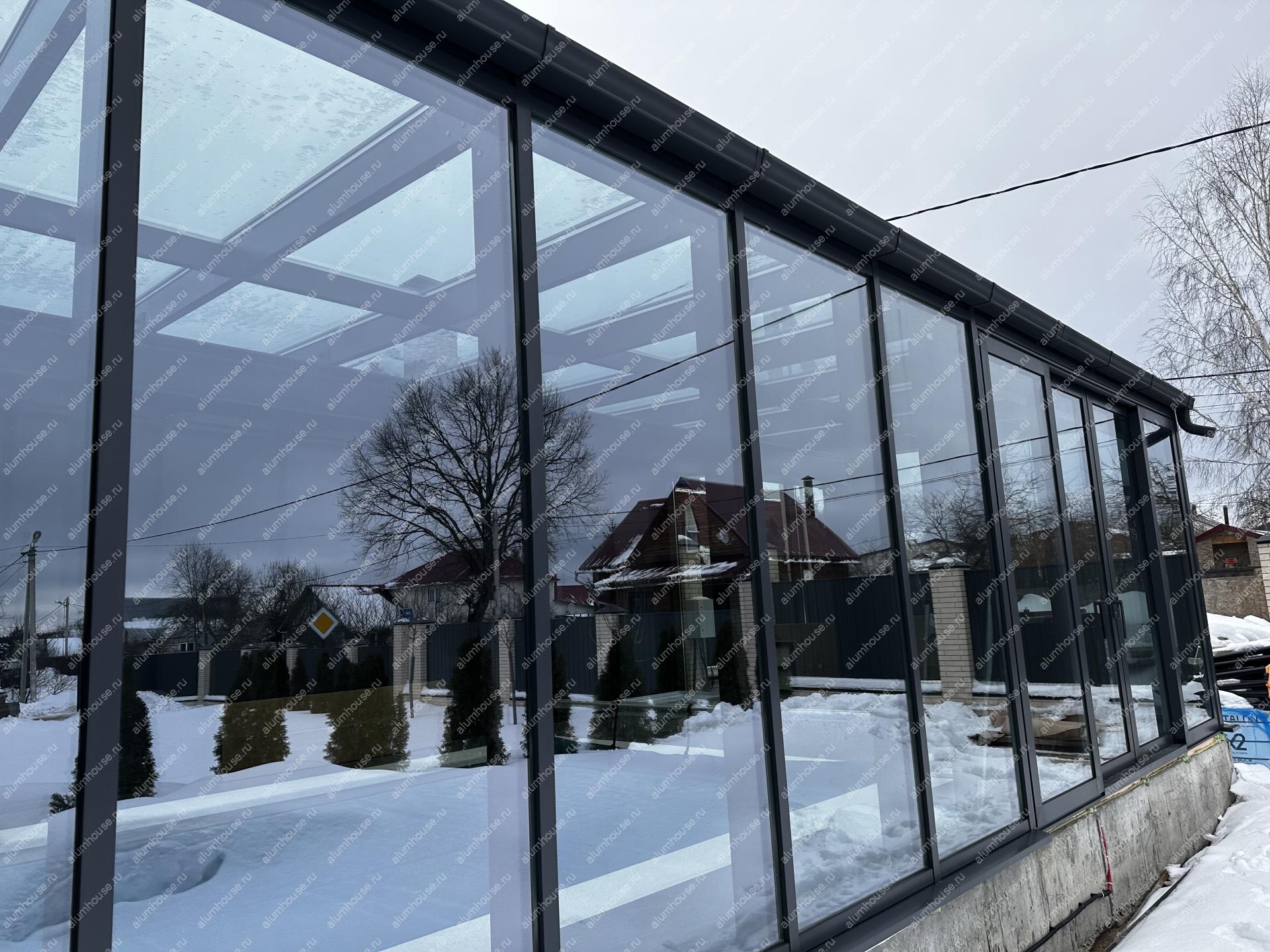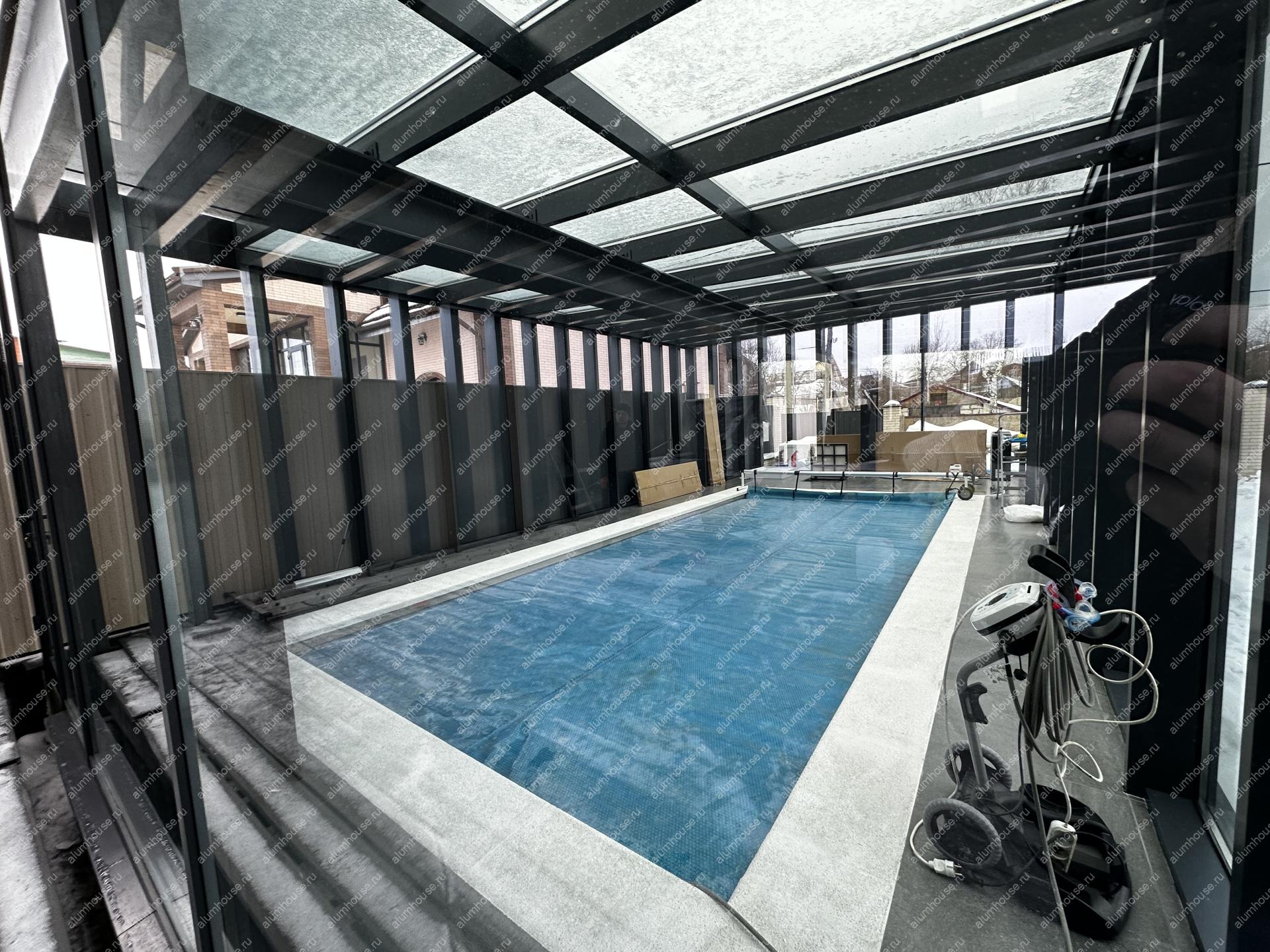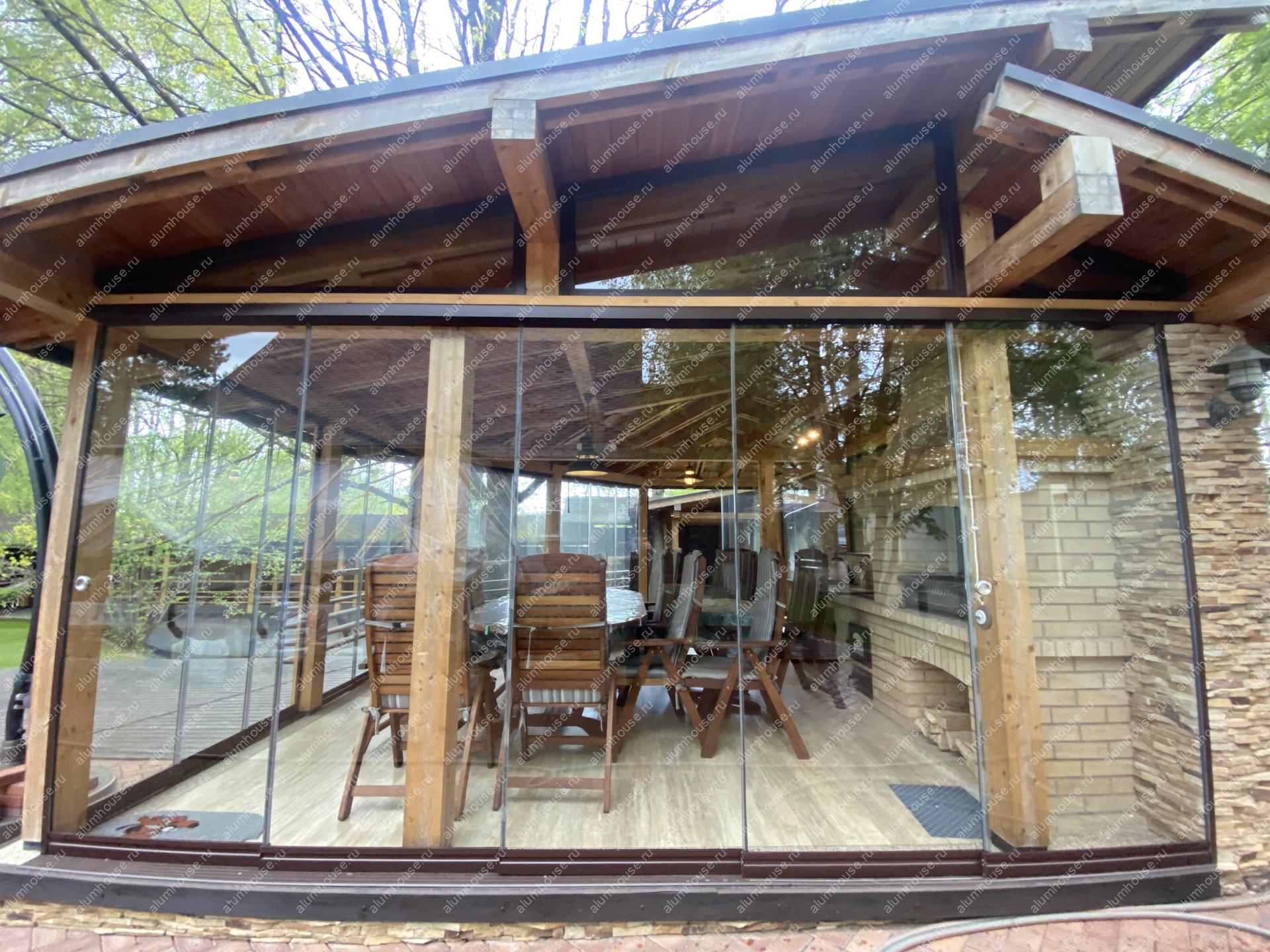 Безрамные стеклянные панели обеспечивают панорамный обзор, максимальное проникновение естественного света и визуальное расширение пространства, при этом полностью сохраняется архитектурная выразительность беседки.
