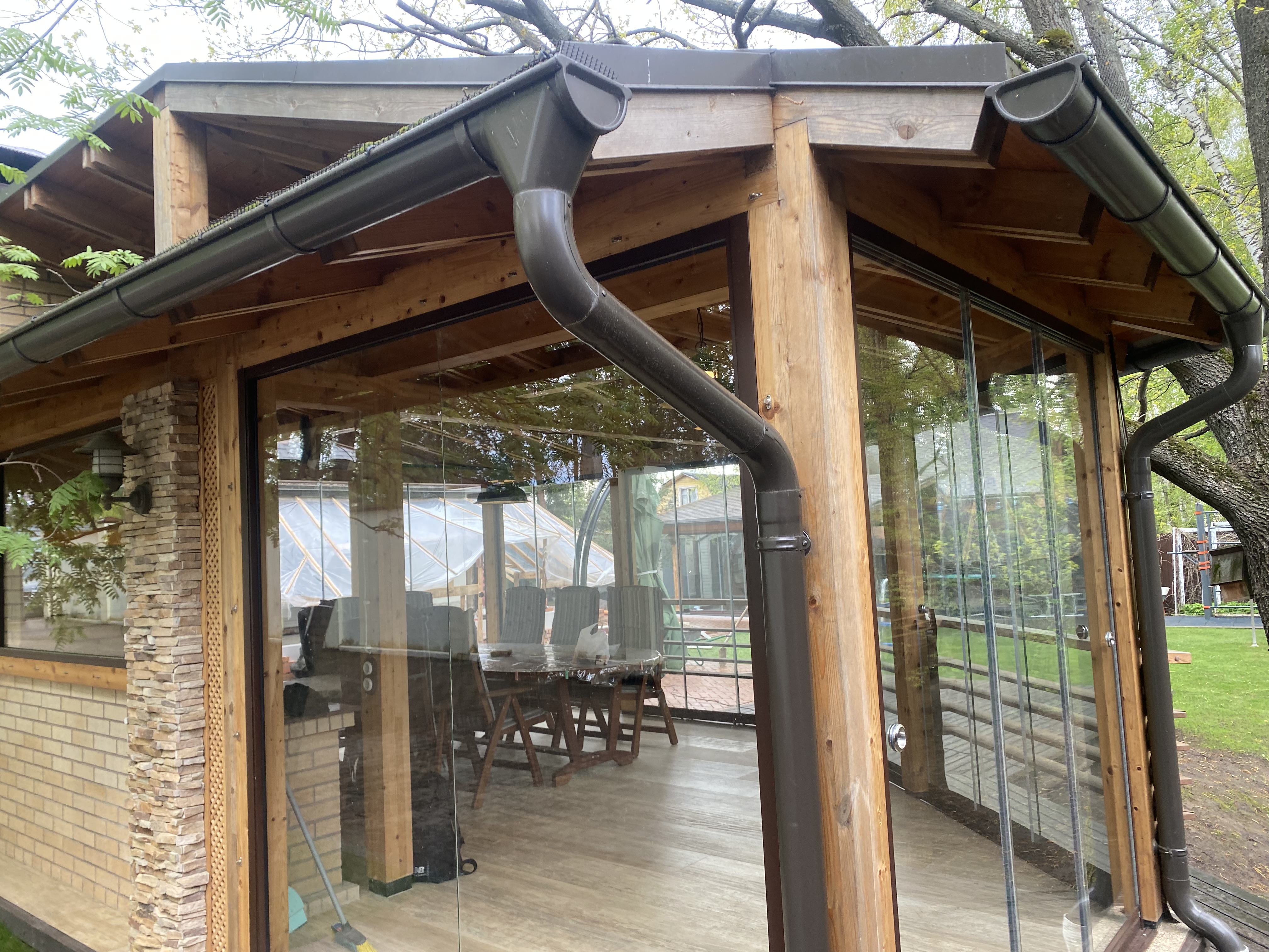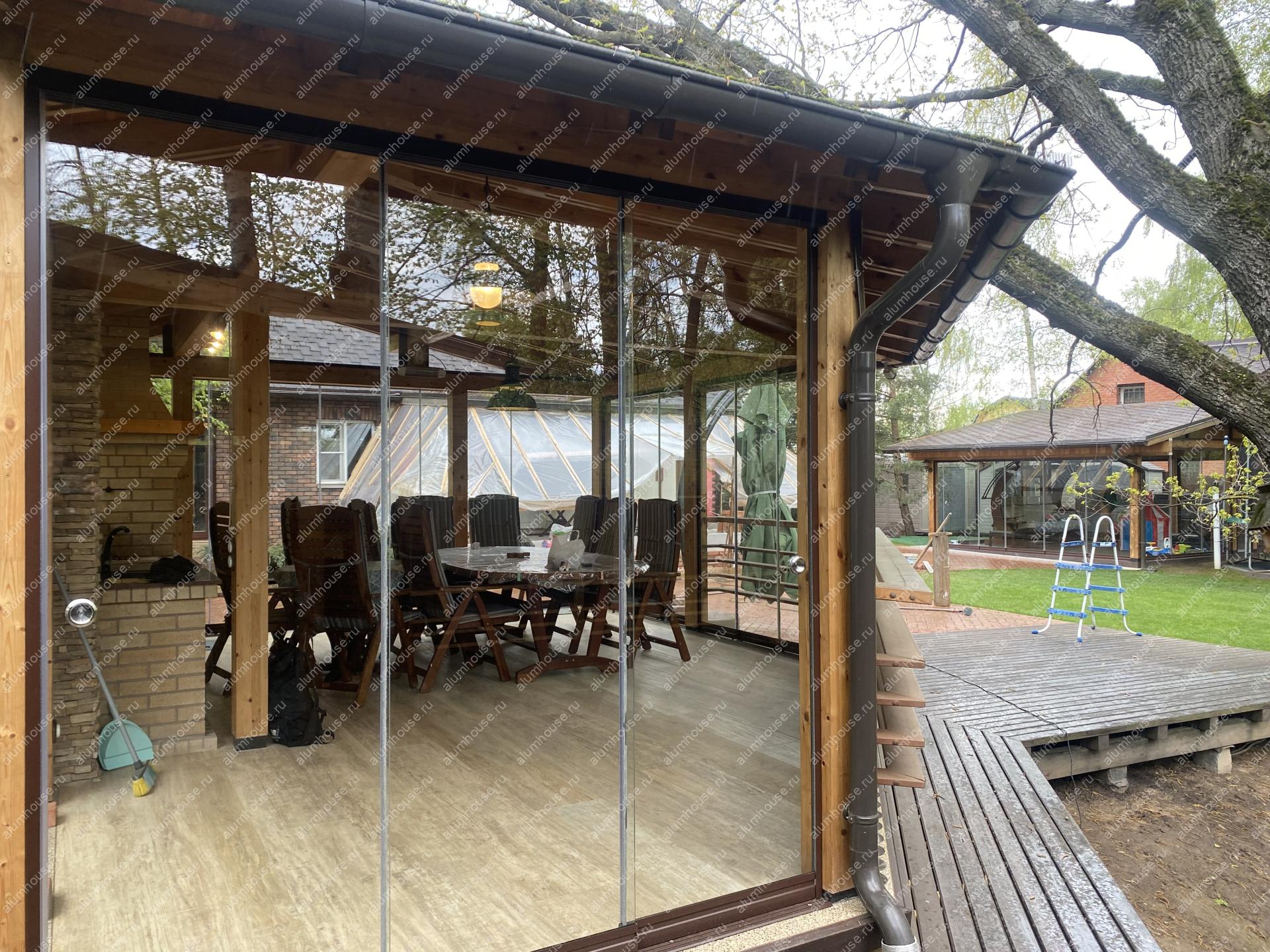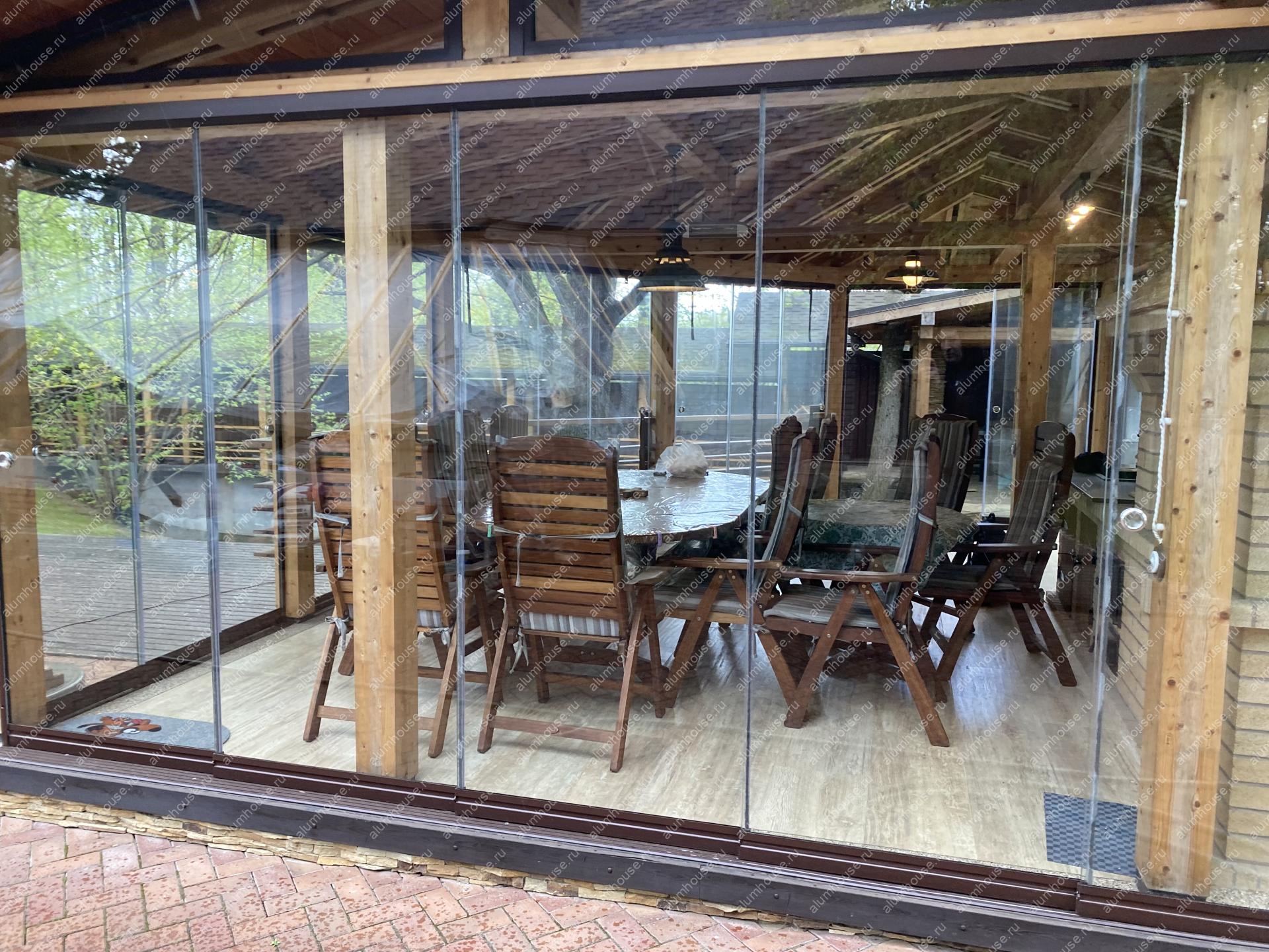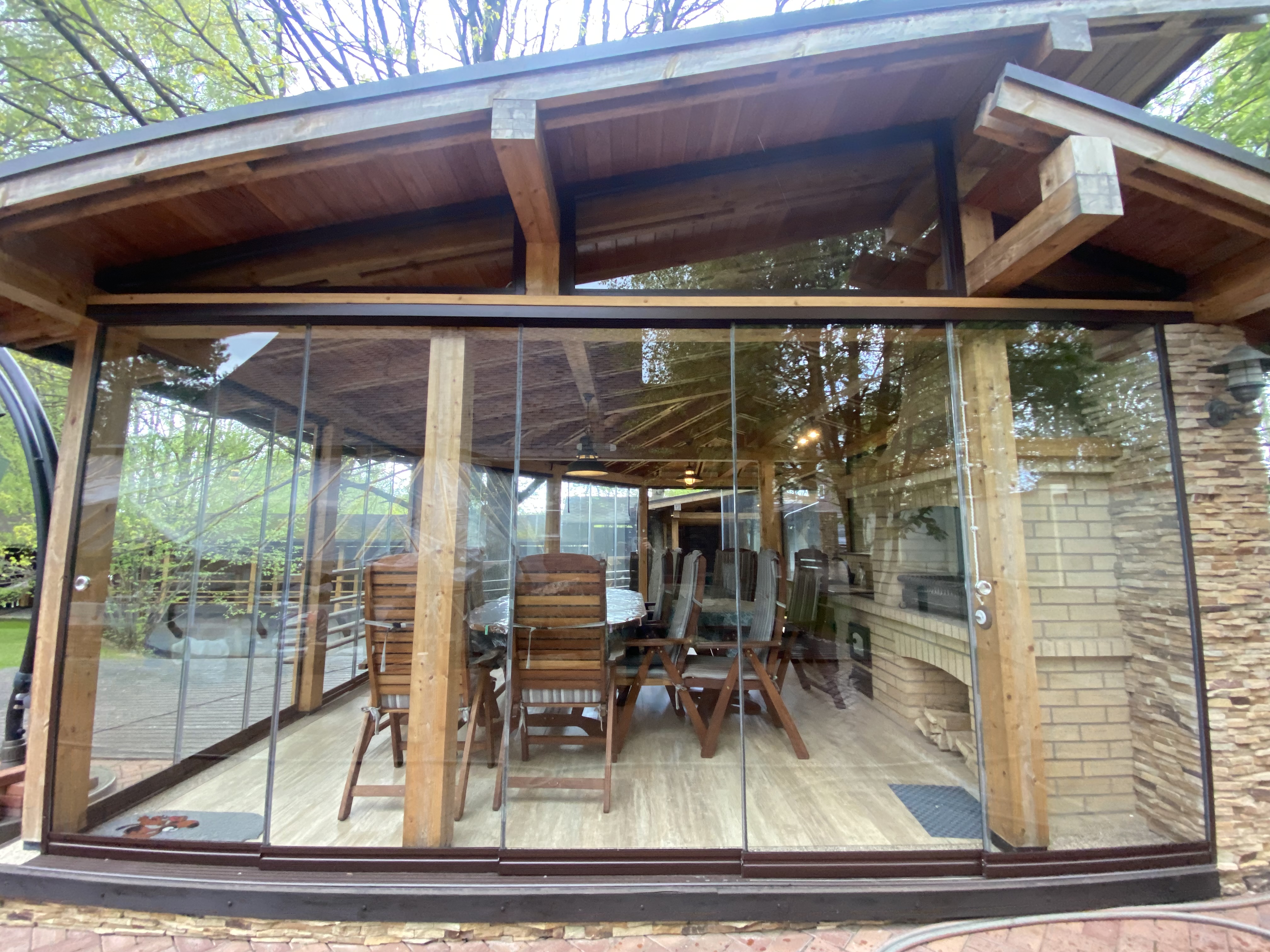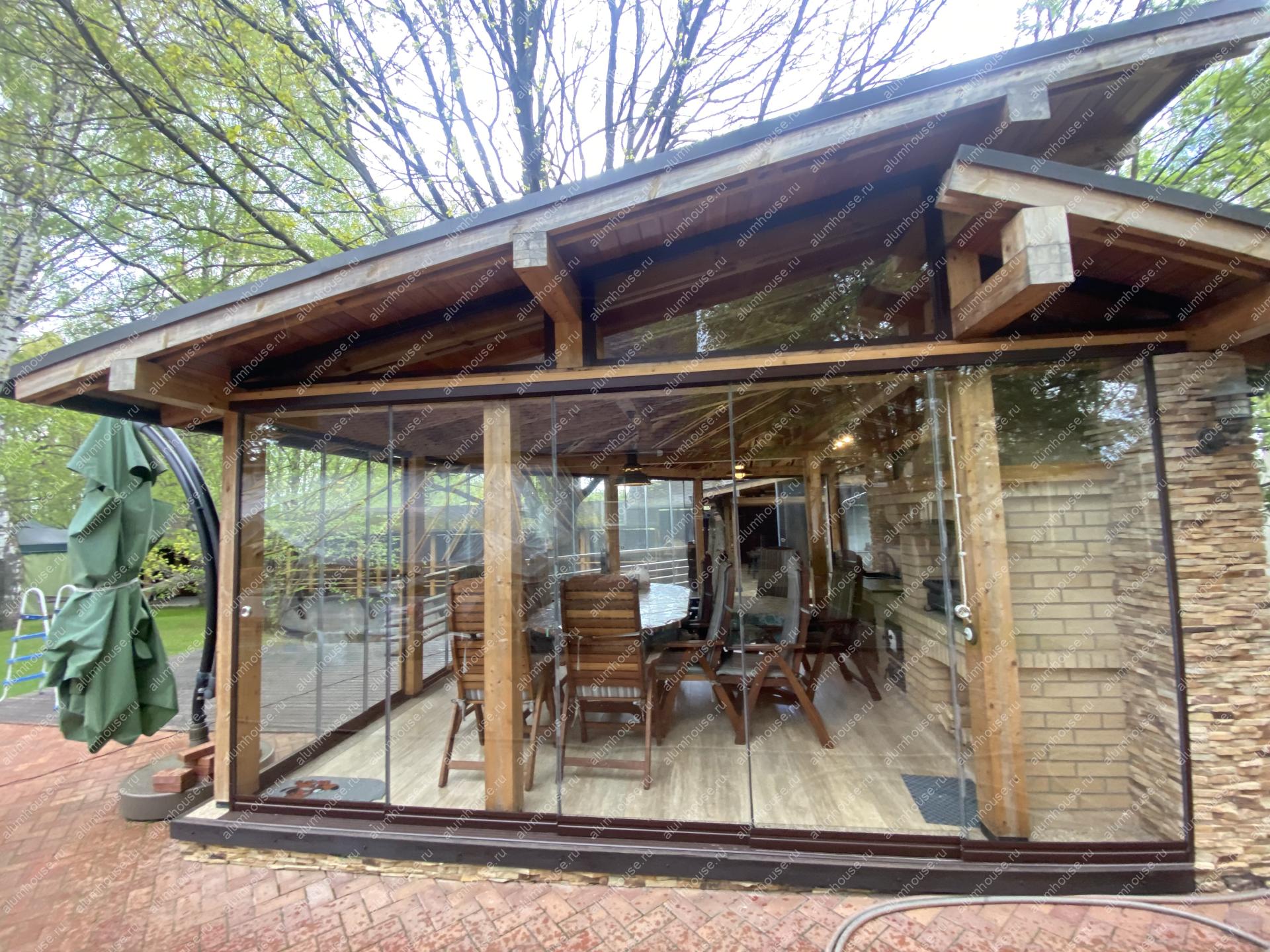 Безрамное остекление для беседки из клееного бруса — это не только современный внешний вид, но и практичность: защита от осадков, ветра и пыли, простота ухода за стеклянными поверхностями и возможность комфортного использования беседки в любую погоду. Такой подход идеально подходит для круглогодичного отдыха на участке, сочетая экологичность древесины и прозрачность стекла.