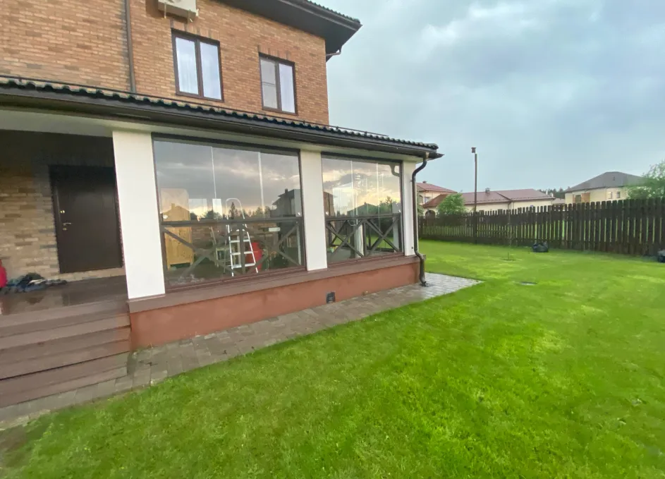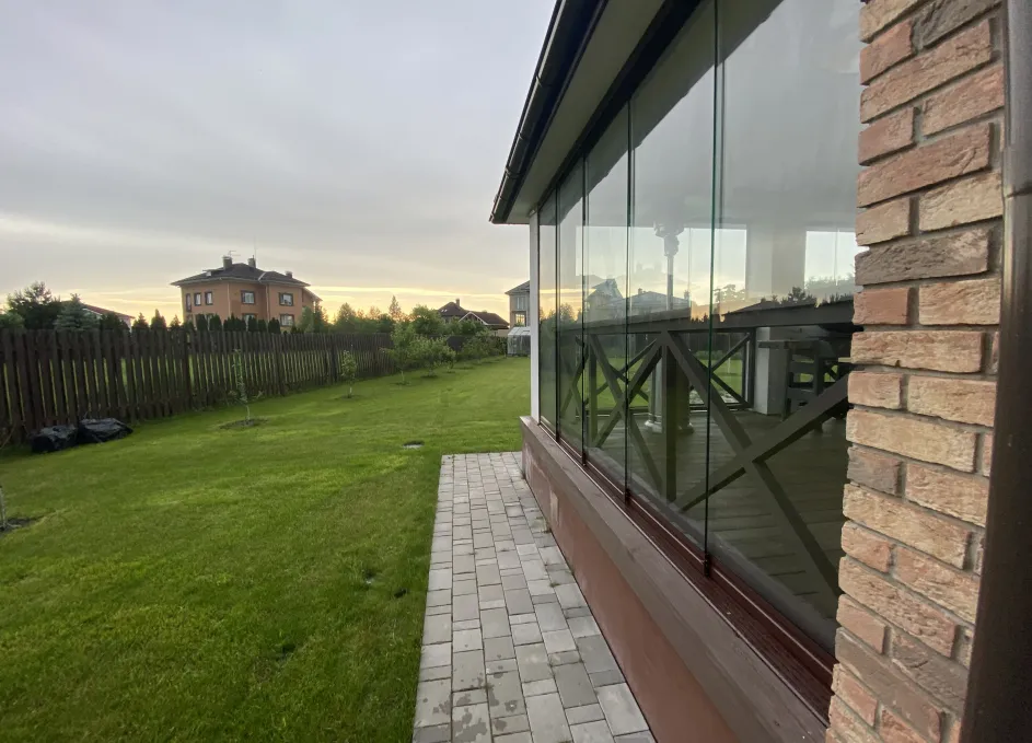 Срок службы остекления веранды составляет более 10 лет, а при некотором техническом обслуживании - до 30 лет. Застекленные веранды закаленным стеклом не только защищают фасад, но и уменьшают потребность в обслуживании окон и дверей. Остекление обеспечивает эффективную защиту от шума машин и других посторонних звуков. Встроенное остекление снижает уровень шума до 20 дБ.