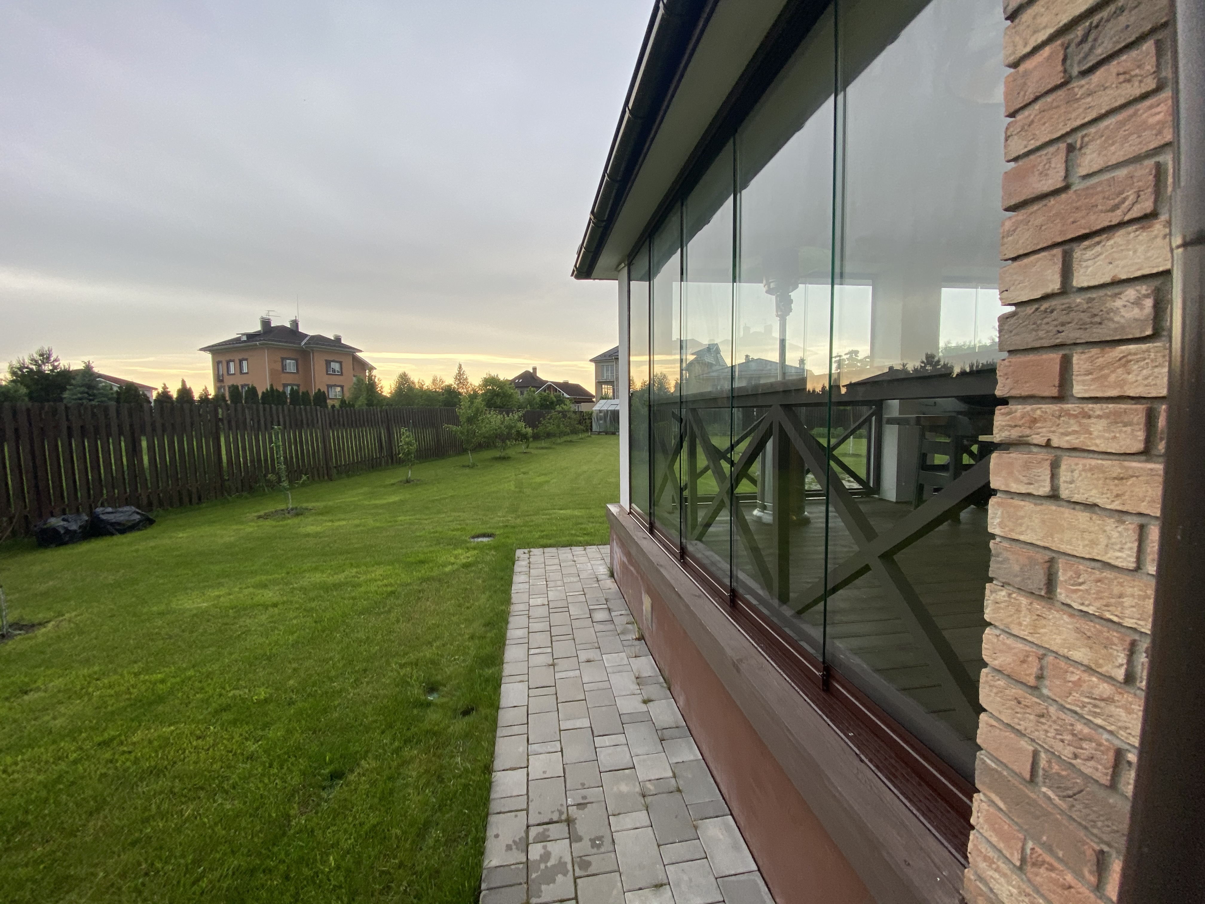 Создает пространство для жизни: легкая безрамная система остекления "Слайд" позволяет создавать легкие веранды. Повышается удобство для собственника, и дом приобретает замечательное дополнительное пространство. Остекленные веранды держат дольше тепло. Это имеет эффект улучшения теплового климата в помещении.