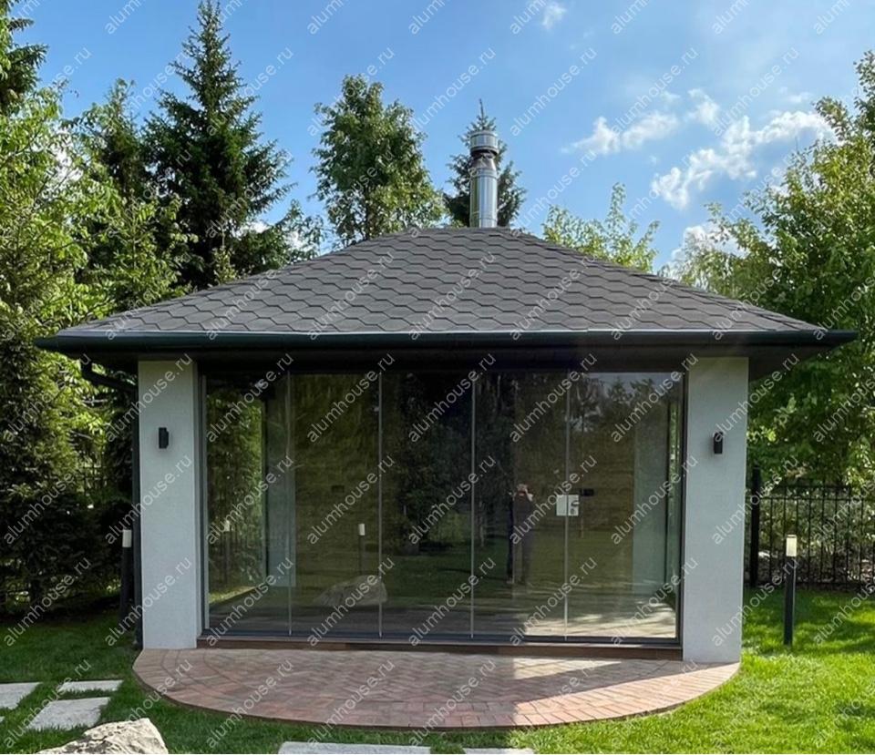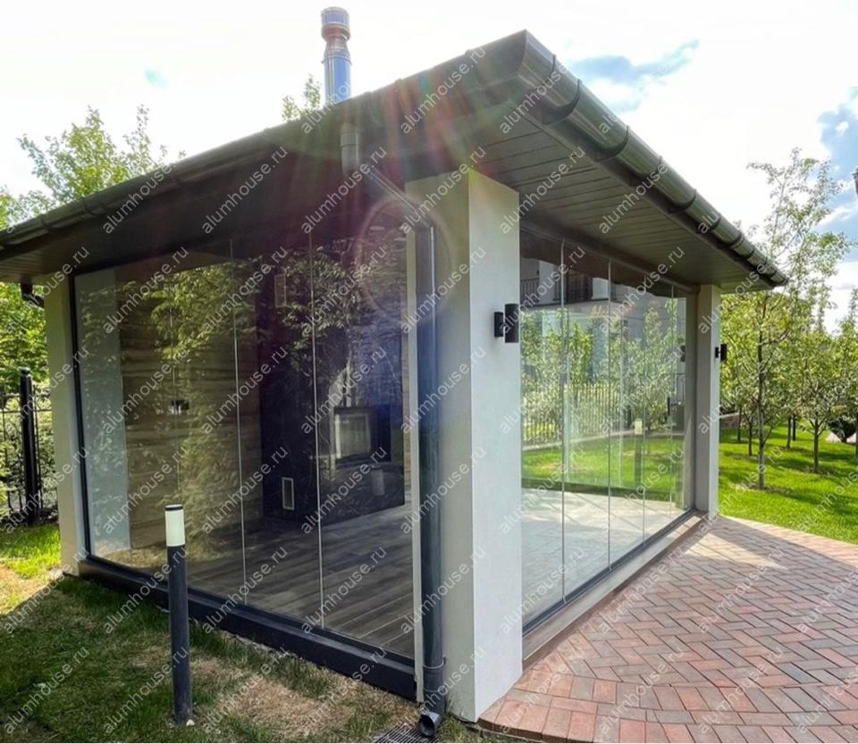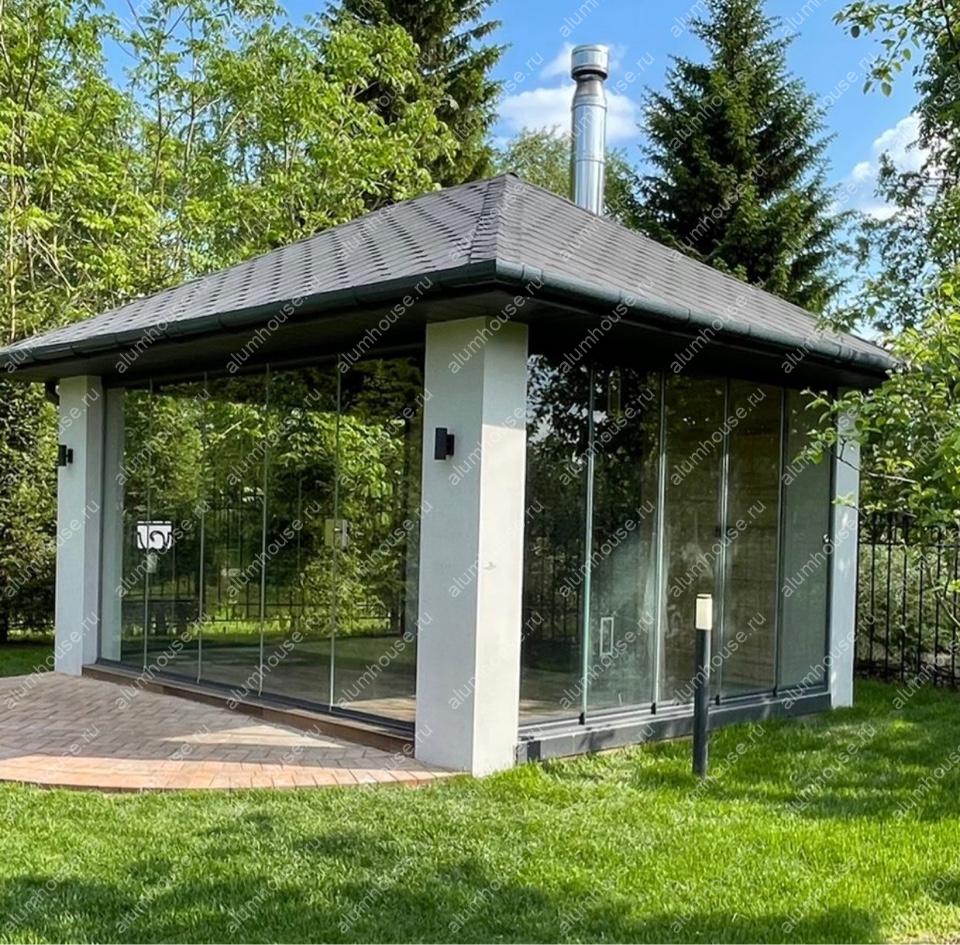 Такое остекление надёжно защищает от ветра, дождя и других погодных воздействий, при этом легко открывается и закрывается, позволяя адаптировать пространство под любые задачи — от уютных семейных вечеров до приёма гостей. Благодаря отсутствию массивных рам, внутрь поступает больше естественного света, а панорамный обзор делает пребывание в беседке особенно приятным.