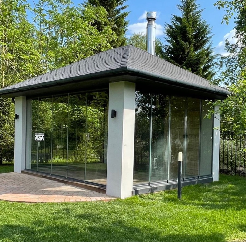 Четырёхгранная беседка с безрамным остеклением Claroflex и Slide — это современное решение для создания стильного и комфортного пространства на открытом воздухе. В ходе реализации проекта были использованы системы безрамного остекления Claroflex и скользящие двери Slide, что позволило добиться максимальной прозрачности, отличной видимости и ощущения единства с природой.
