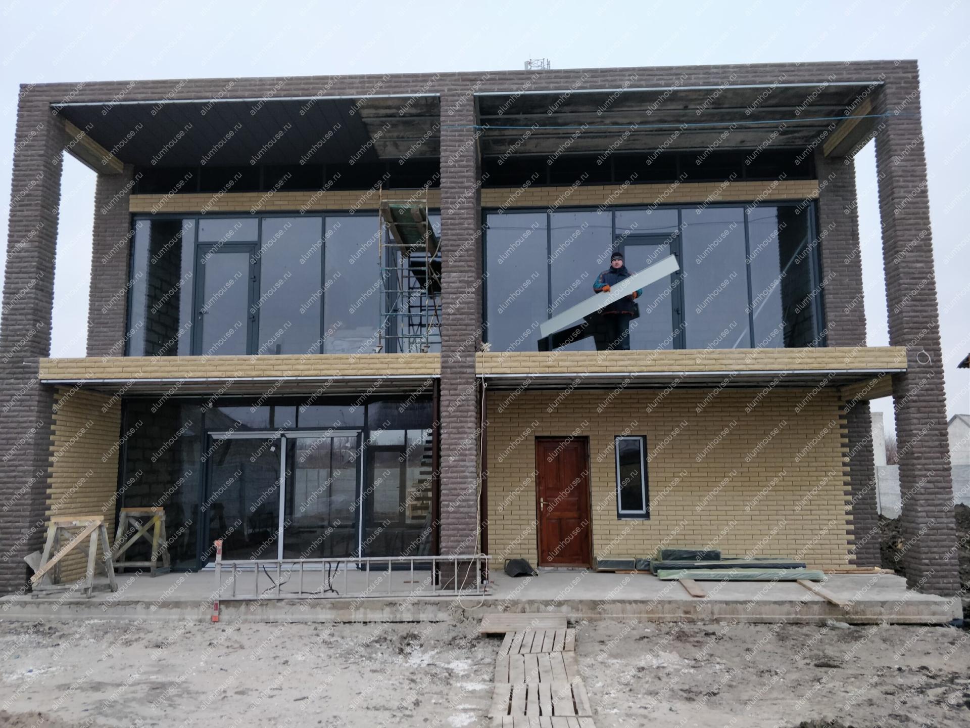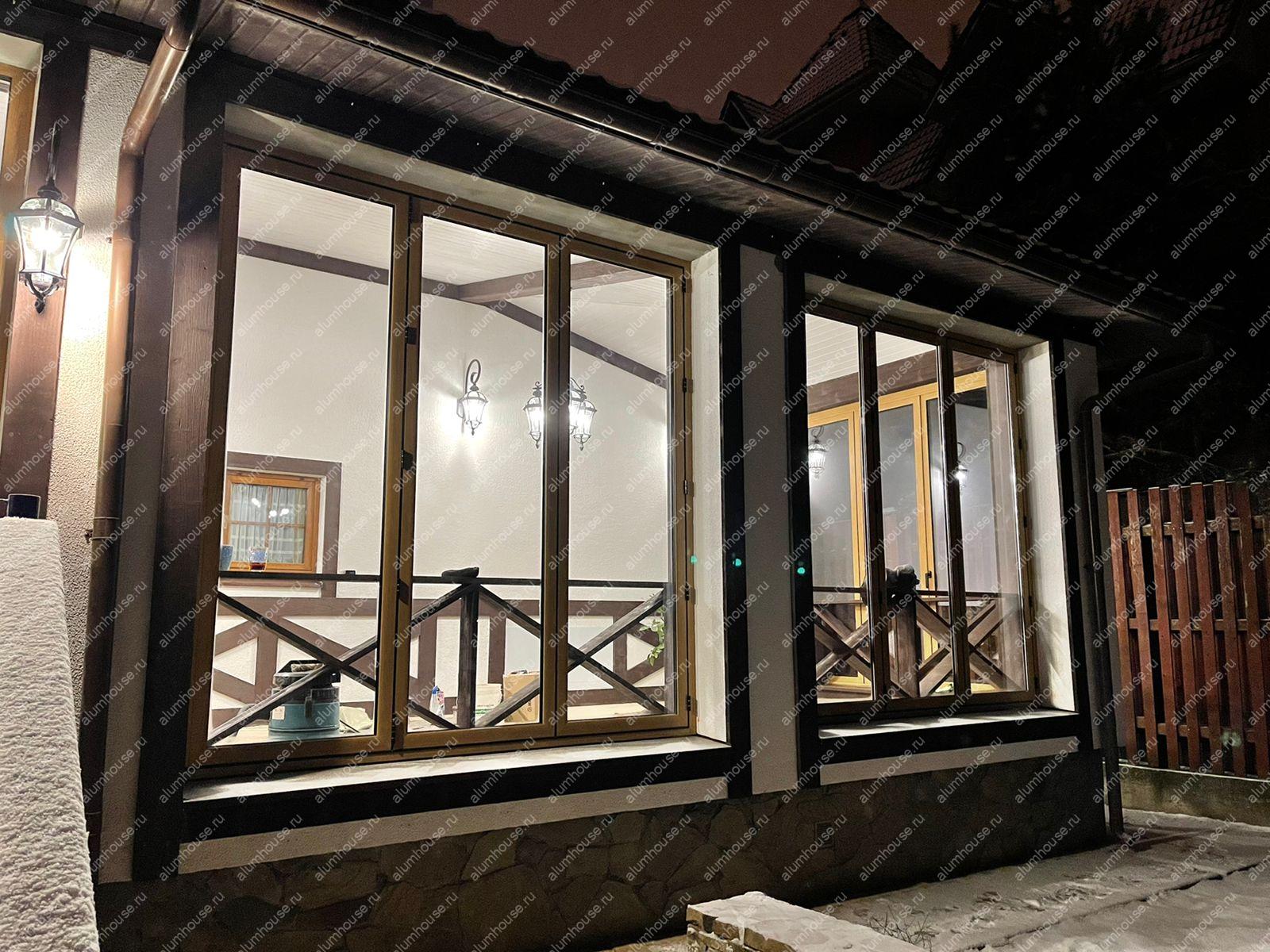 Преимущества фасадного остекления дома из бруса алюминиевыми окнами и дверьми: