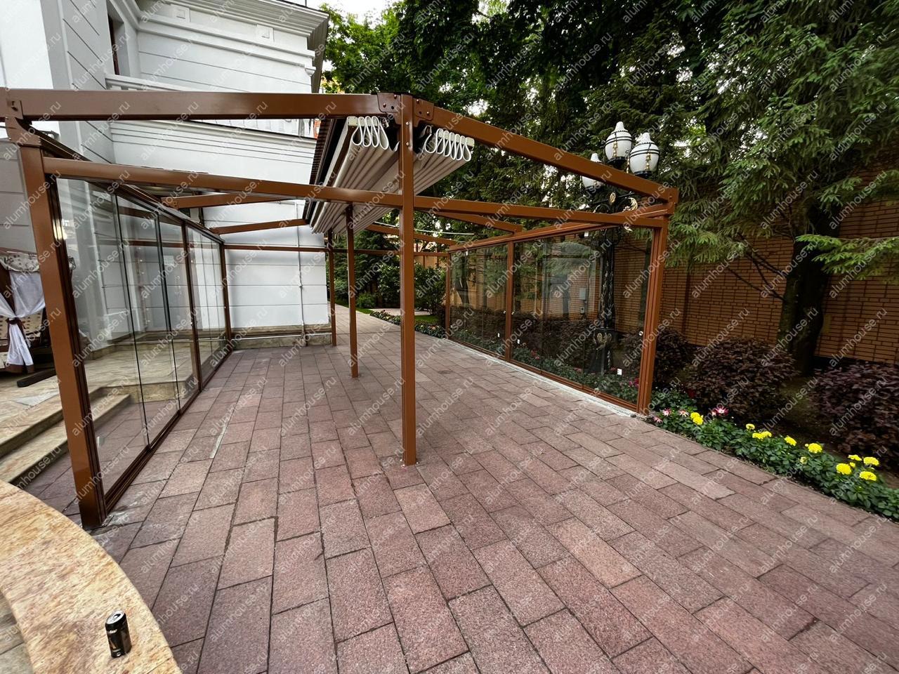 Выполнено остекление беседки тёплыми раздвижными дверями, что позволило создать круглогодичное, светлое и защищённое пространство для отдыха и встреч на свежем воздухе. Для реализации использованы современные алюминиевые профильные системы с терморазрывом, энергосберегающие стеклопакеты и надёжная фурнитура, что обеспечивает высокий уровень тепло- и шумоизоляции, а также комфортное использование беседки в любое время года.