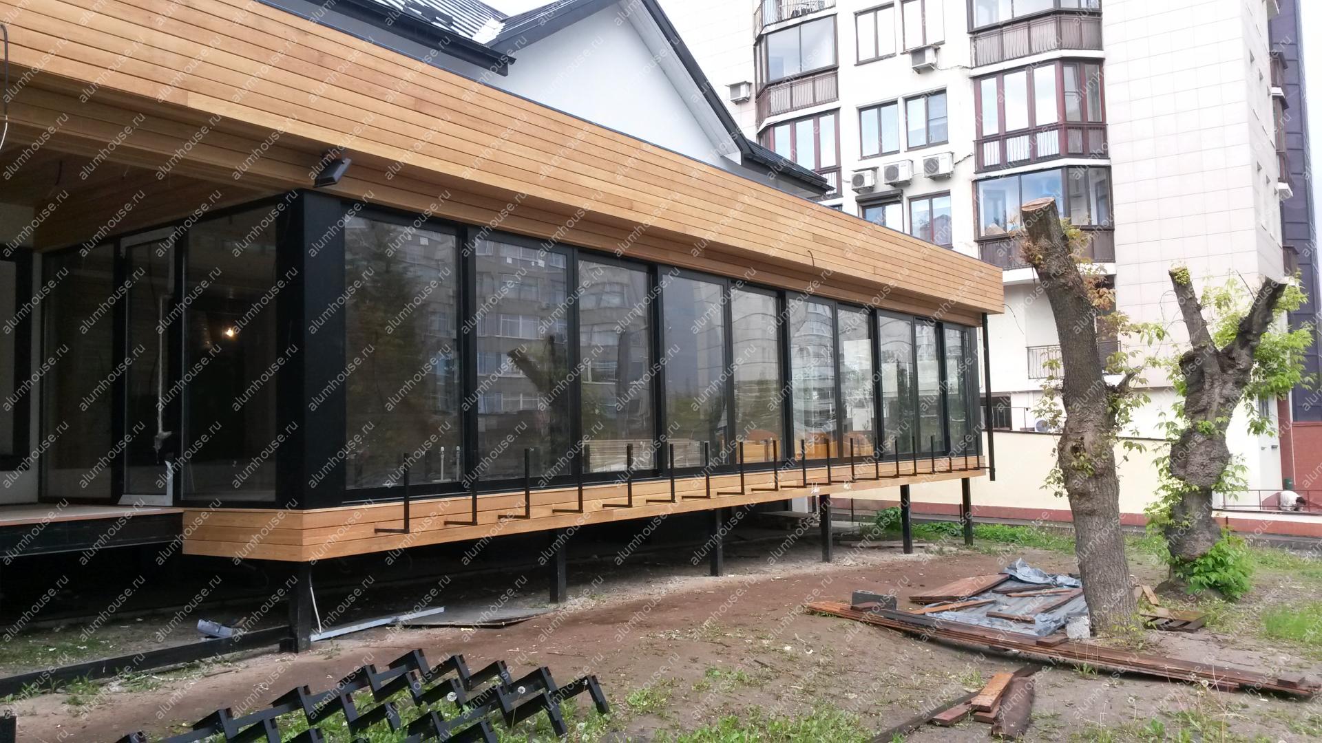 - Уникальный вид и дизайн. Такому виду остекления возможно придать различную цветовую гамму. Алюминиевые профиля можно красить в любой цвет по шкале RAL, либо декорировать под фактуру дерева. Это означает, что можно вписаться в любую цветовую гамму существующего фасада.