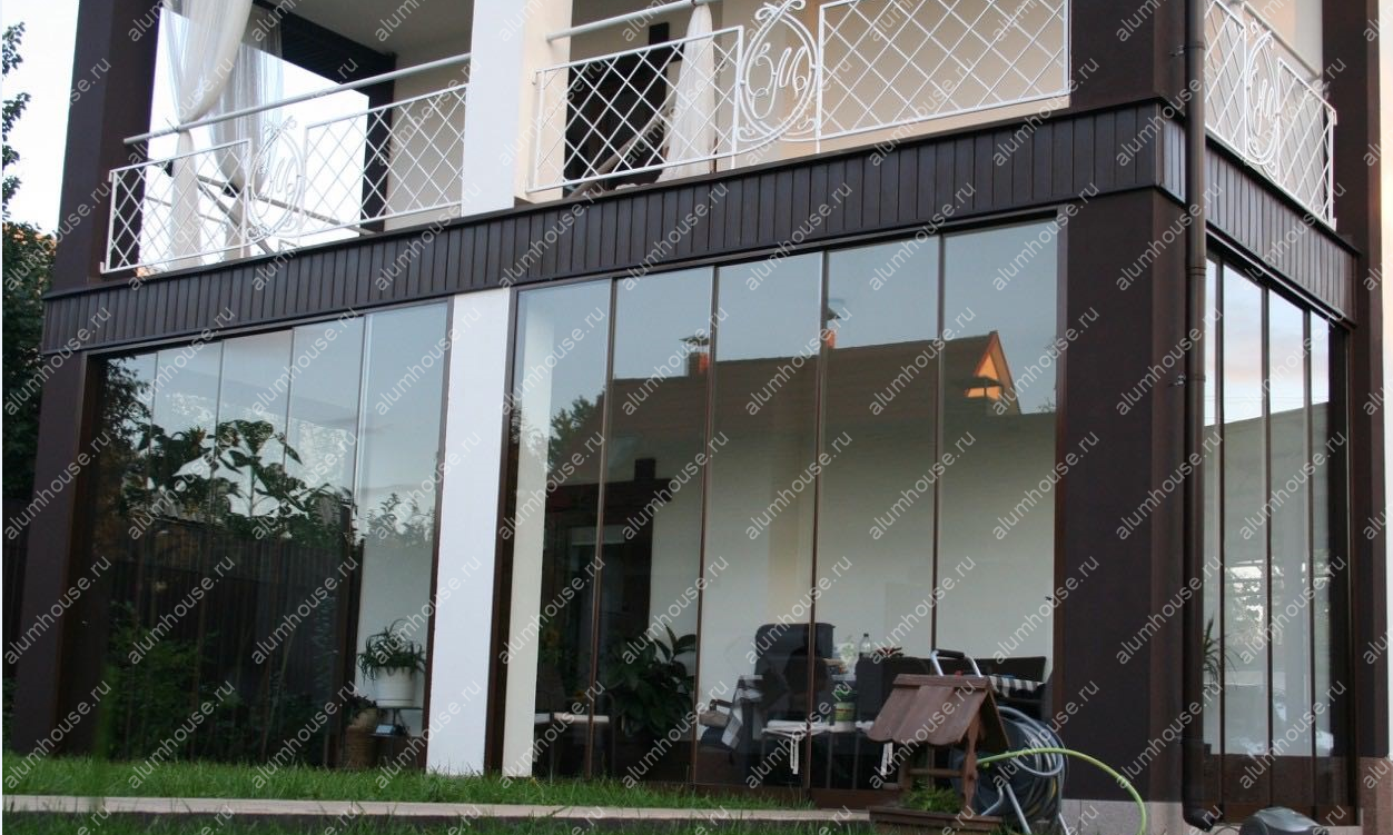 Такой тип остекления легко обслуживается, отличается долговечностью и отлично подходит для загородных домов, где важны свет, панорамный обзор и эстетика открытого пространства.
