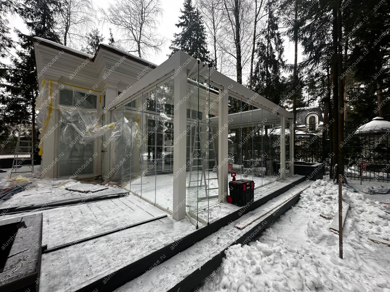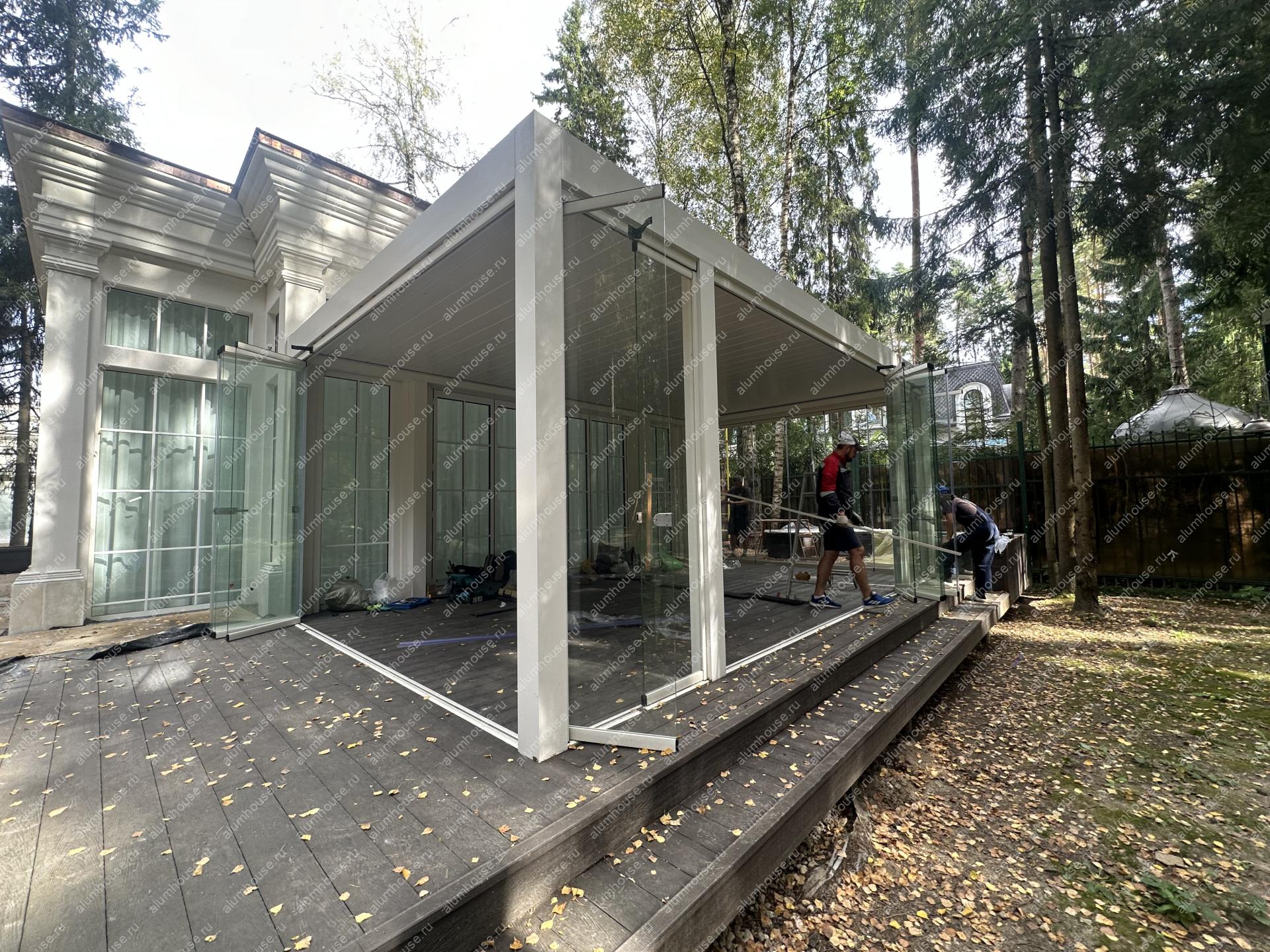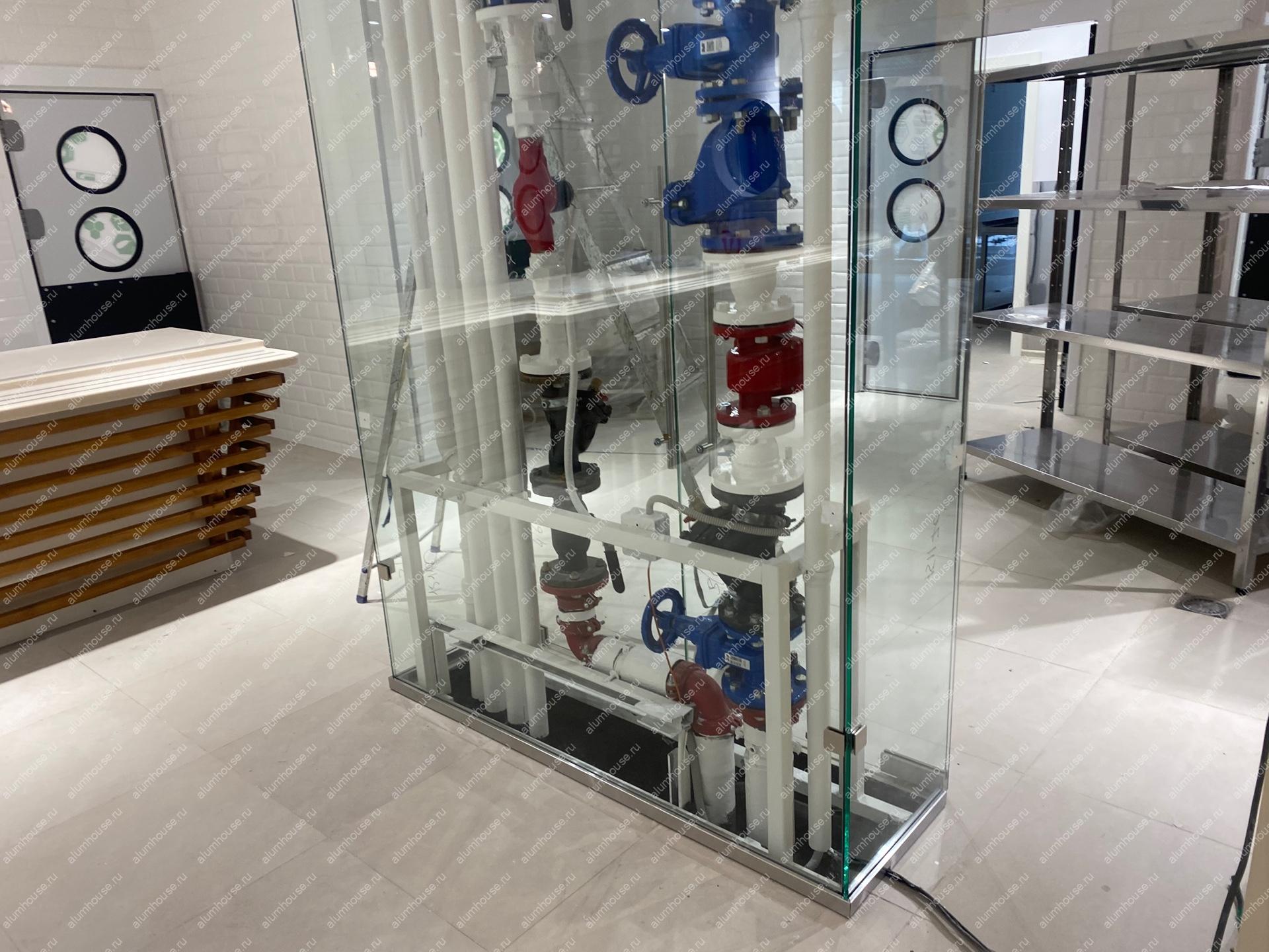 Индивидуально спроектированная стеклянная конструкция из качественной фурнитуры из алюминия и нержавеющей стали.