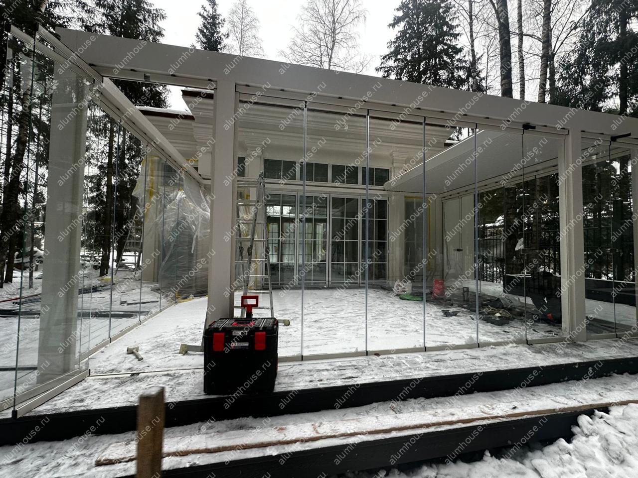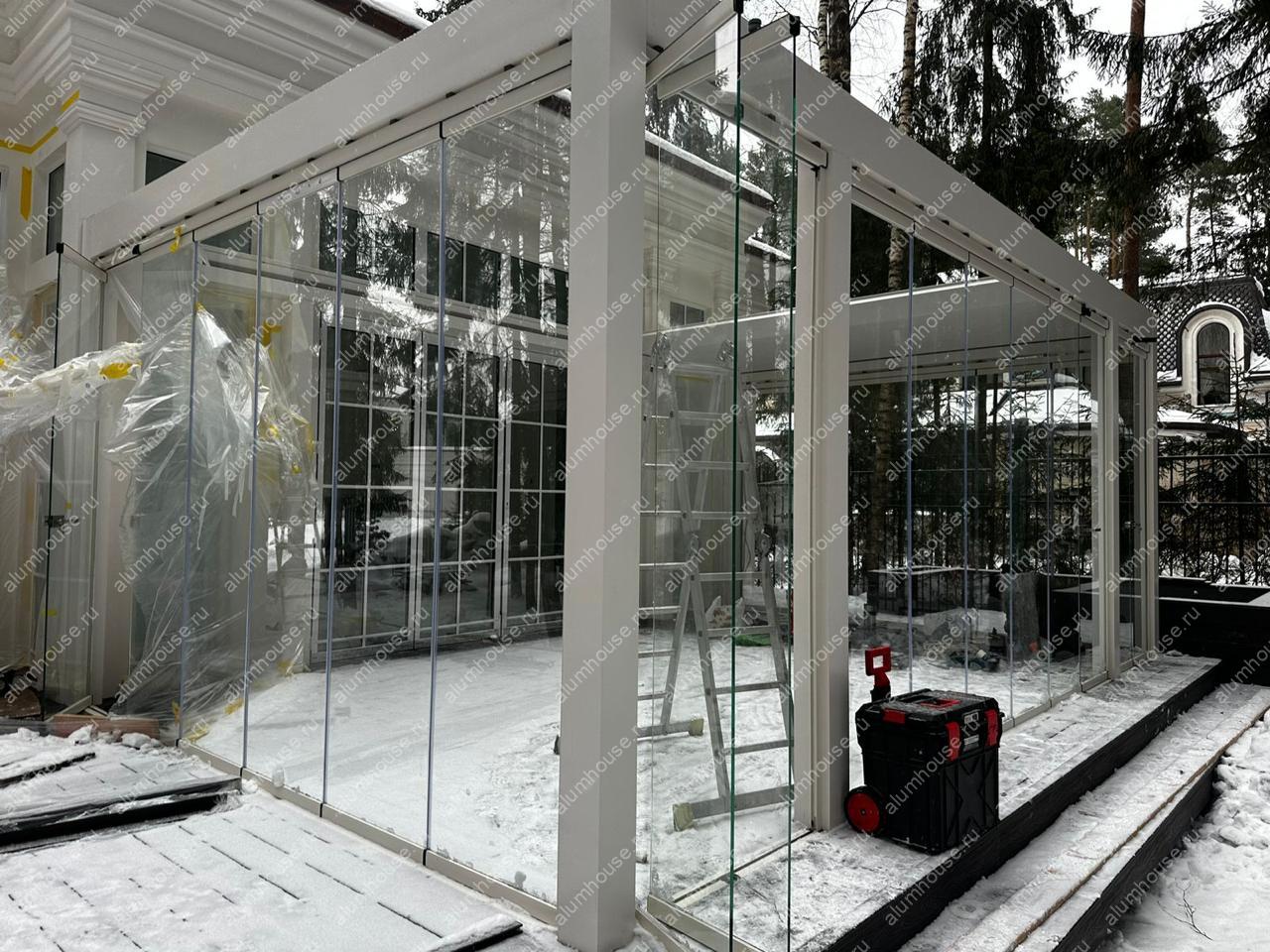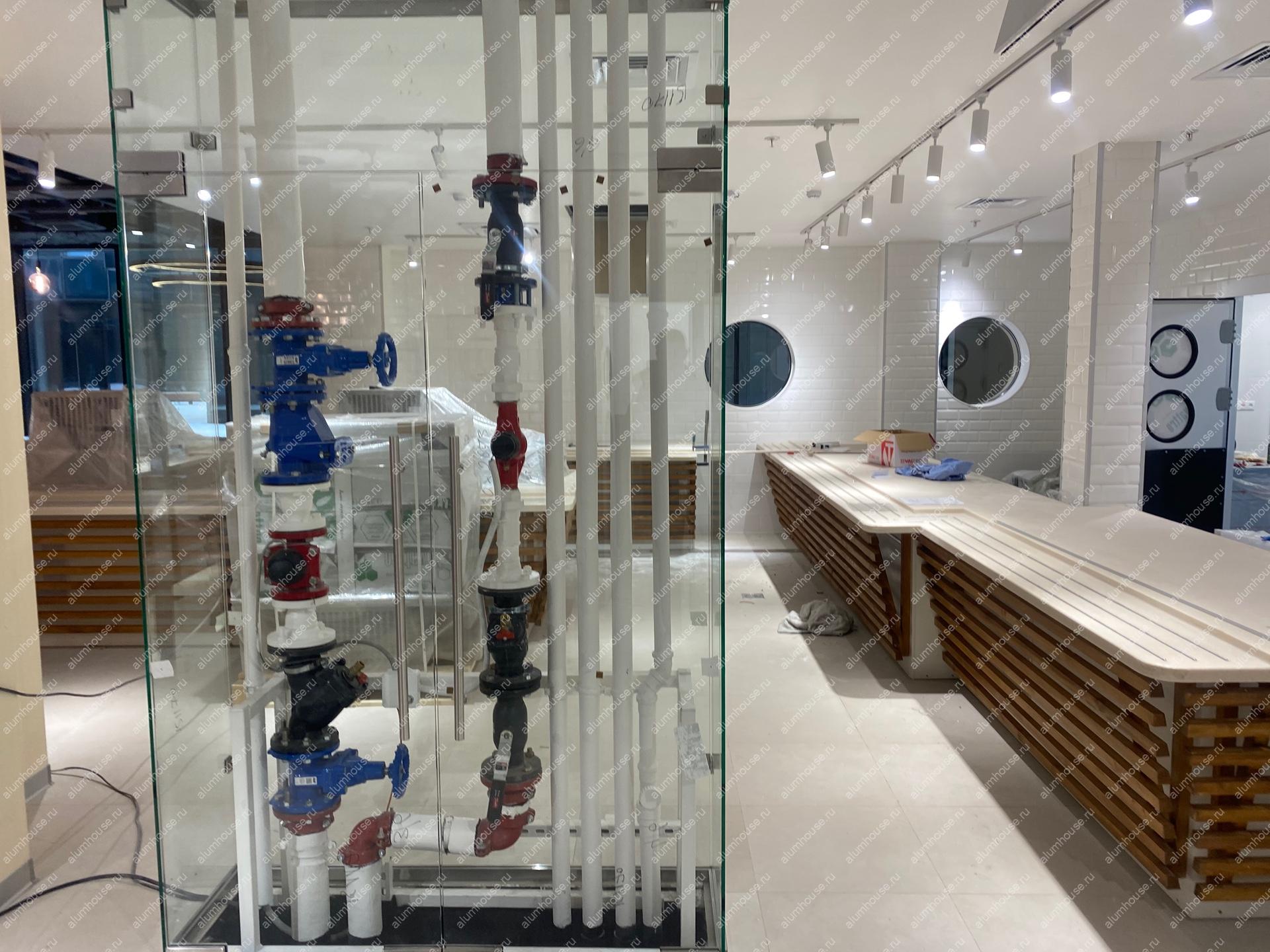 Индивидуально спроектированная стеклянная конструкция из качественной фурнитуры из алюминия и нержавеющей стали.