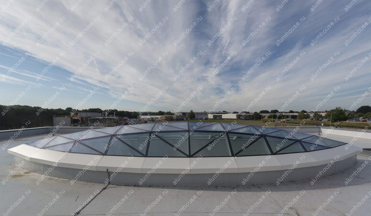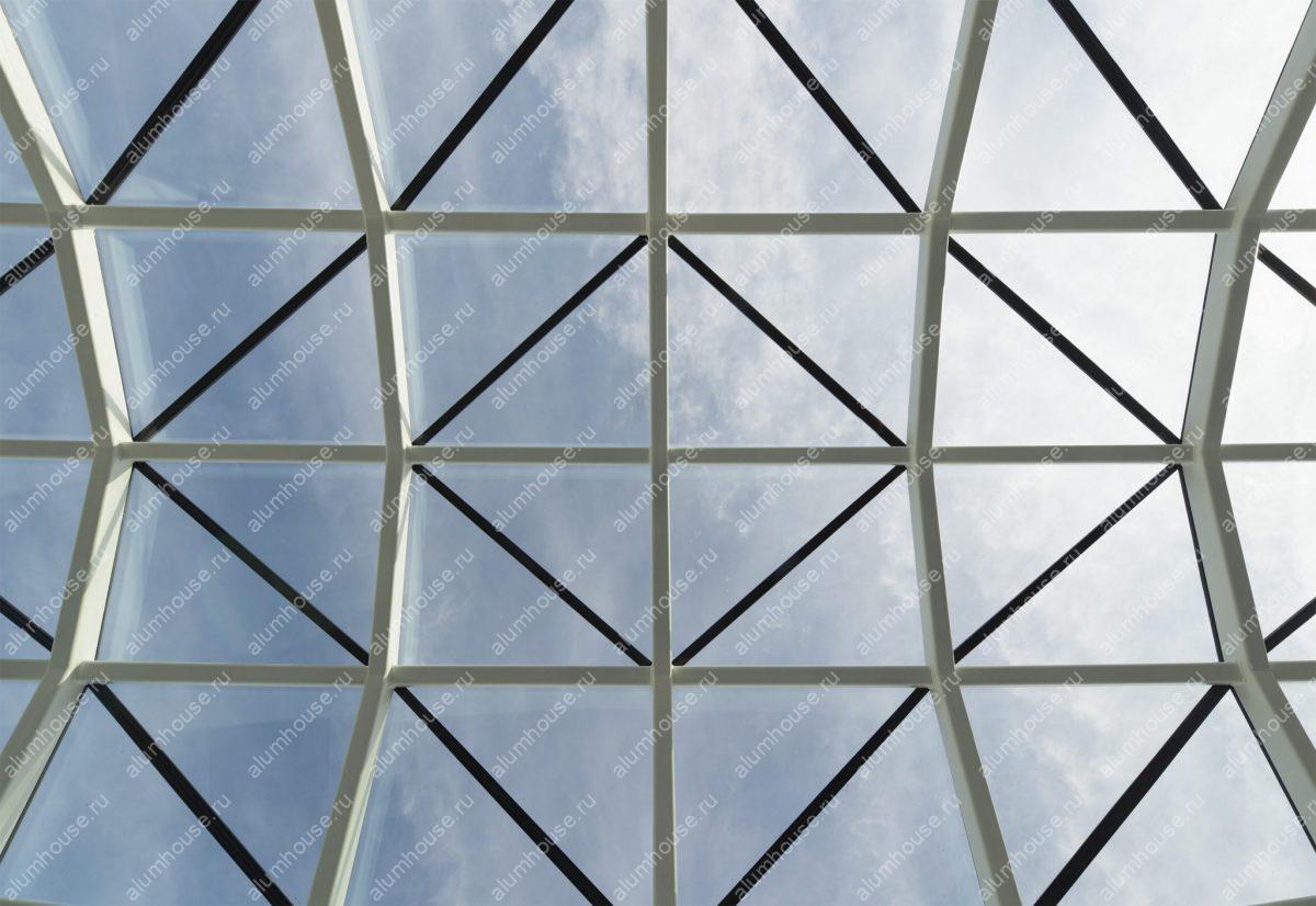 Реализован проект стеклянной крыши купольной формы — архитектурного элемента, сочетающего функциональность, визуальную лёгкость и выразительный современный облик. Конструкция выполнена из алюминиевого каркаса и безопасного закалённого стекла, что обеспечивает прочность, устойчивость к нагрузкам и высокую светопроницаемость.