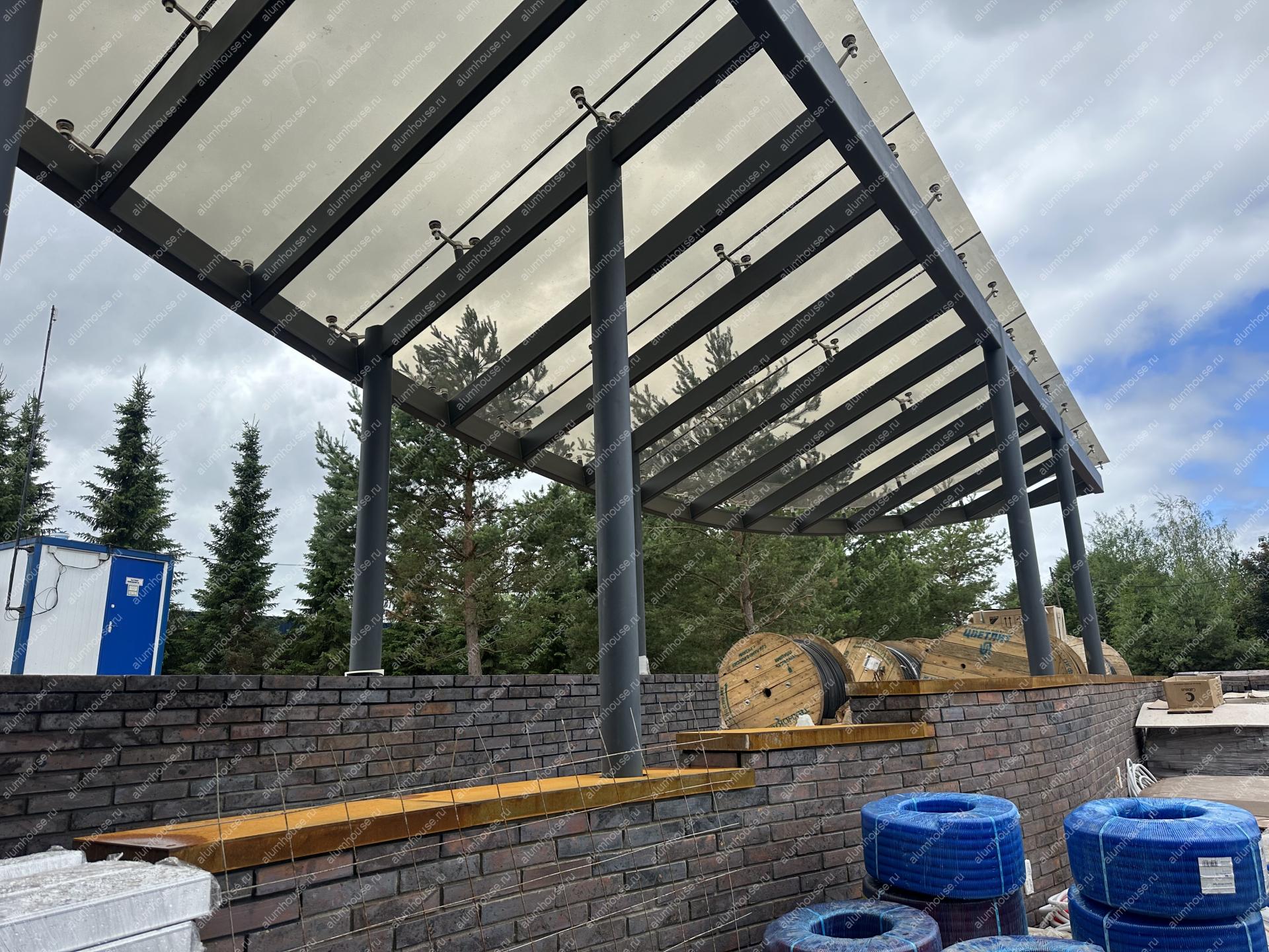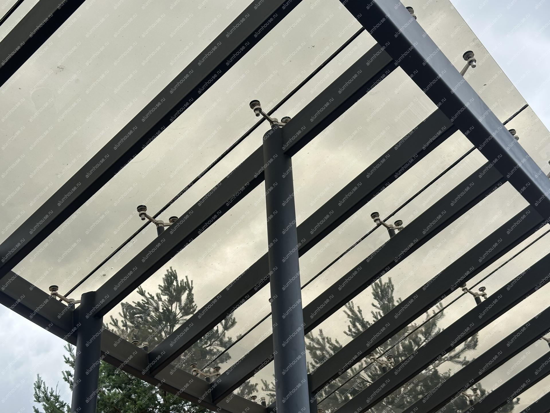 Нашими специалистами выполнены работы по остеклению козырька на консолях для вентилируемого фасада. Особенность такого решения заключается в способе крепления: стекло фиксируется с помощью мощных металлических консолей, которые надёжно монтируются непосредственно в стену здания, проходя через все слои фасада, включая утеплитель и вентиляционный зазор. Это обеспечивает прочность конструкции и её устойчивость к ветровым и снеговым нагрузкам.