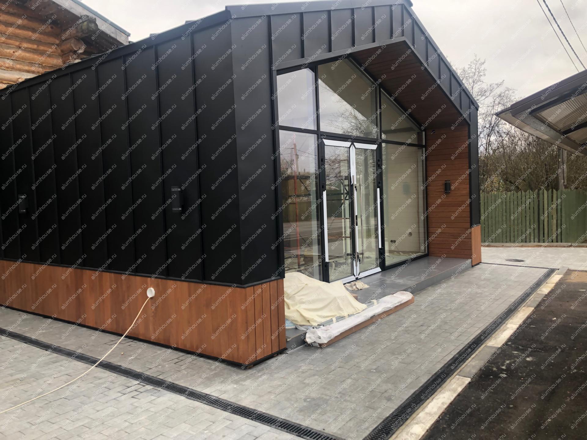 Тёплые раздвижные дверные конструкции идеально вписываются в фасад здания, не нарушая общей концепции. Благодаря своему типу открыванию, позволяет открыть проёмы на 1/2.