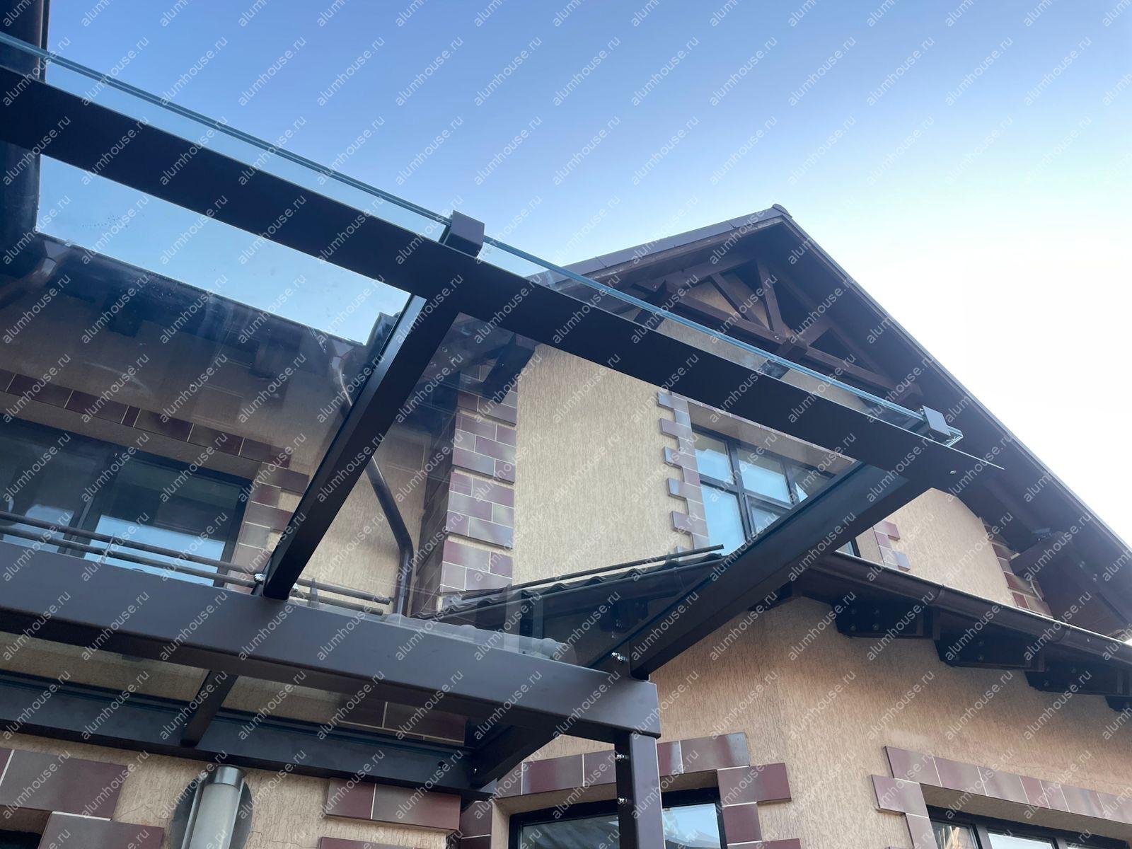 Прочность и долговечность. Болтовое соединение обеспечивает надёжную фиксацию стеклянных панелей, что делает конструкцию устойчивой к ветровым и снеговым нагрузкам. Триплекс, состоящий из нескольких слоёв стекла, обеспечивает дополнительную прочность и безопасность. Лёгкость и прозрачность. Стеклянный навес выглядит лёгким и воздушным, не создавая ощущения тяжести. Прозрачность материала позволяет наслаждаться видом на окружающую территорию, не теряя при этом приватности.