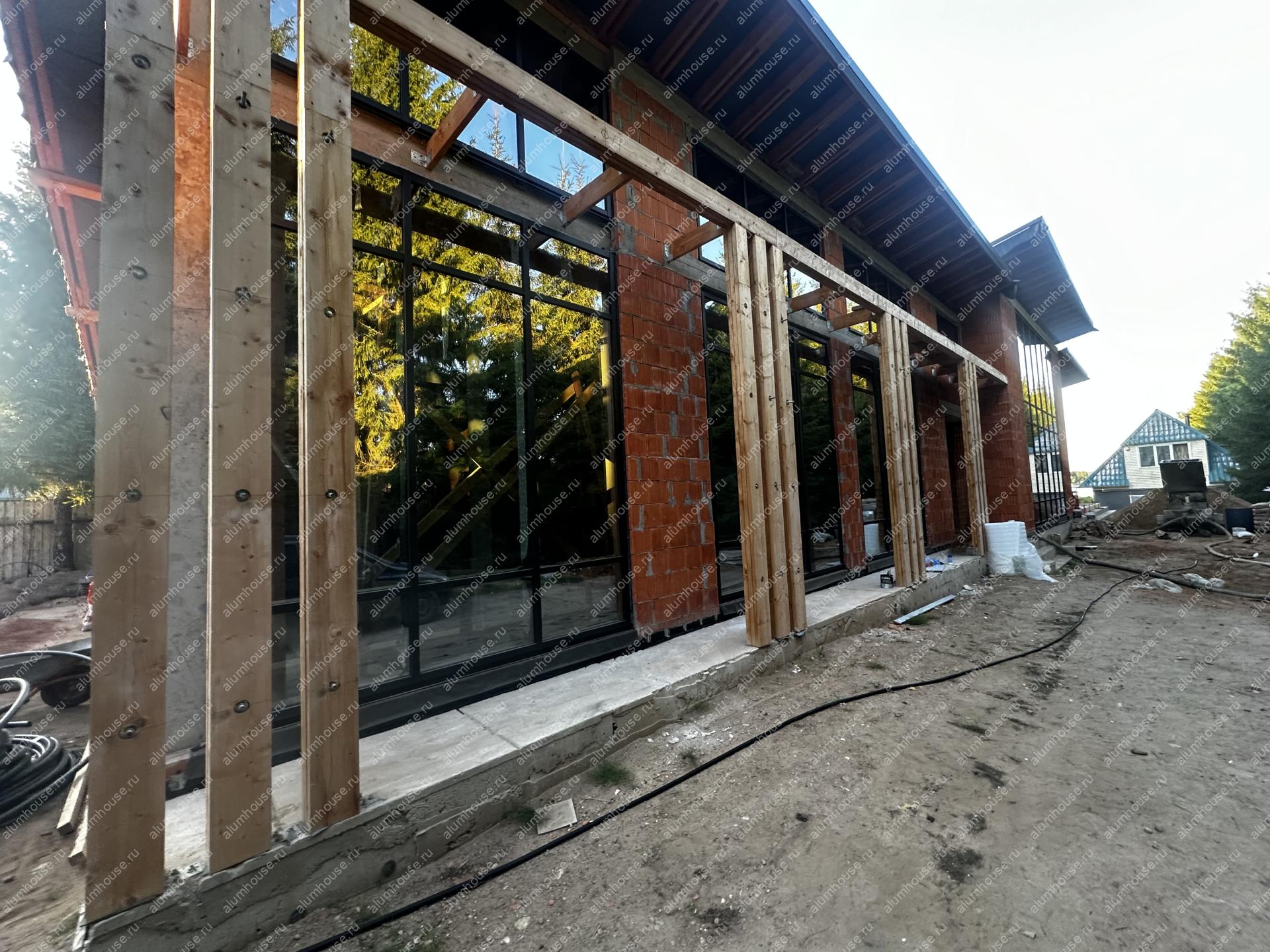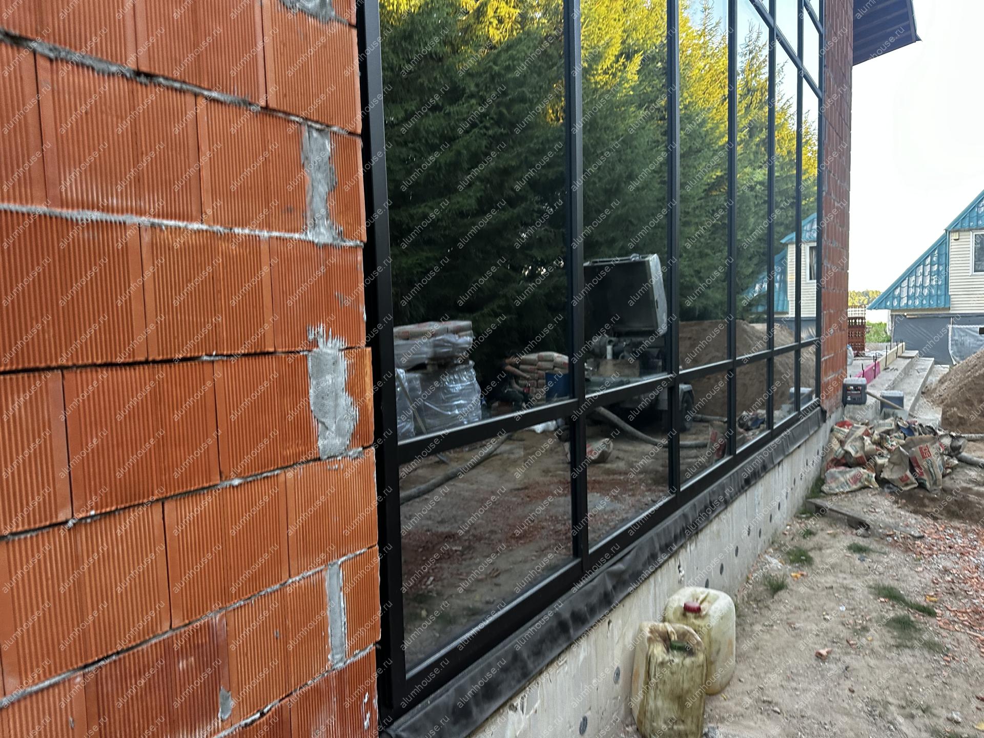 - Эстетика и элегантность: фасадное остекление придаёт дому современный и стильный внешний вид. Оно позволяет максимально использовать естественное освещение и создаёт ощущение простора и лёгкости.