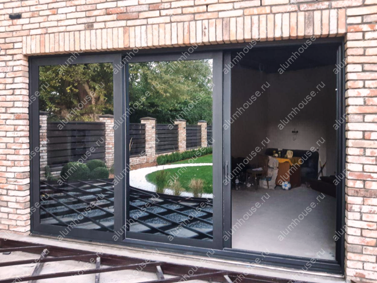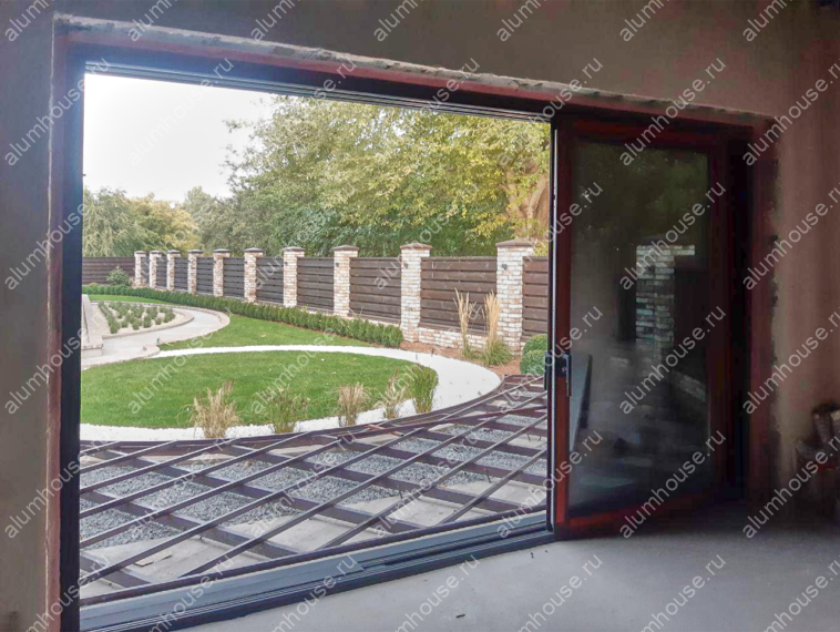 Работы включали замеры, подбор системы, изготовление по индивидуальным размерам и профессиональный монтаж. Это решение идеально подходит для террас, зимних садов и больших проёмов, гармонично сочетая эстетику и функциональность.
