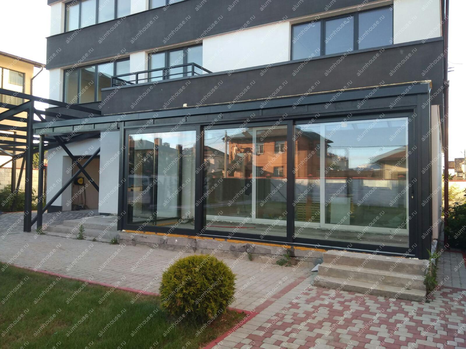 Зимний сад из алюминия с раздвижными дверьми на фасаде: гармония природы и архитектуры