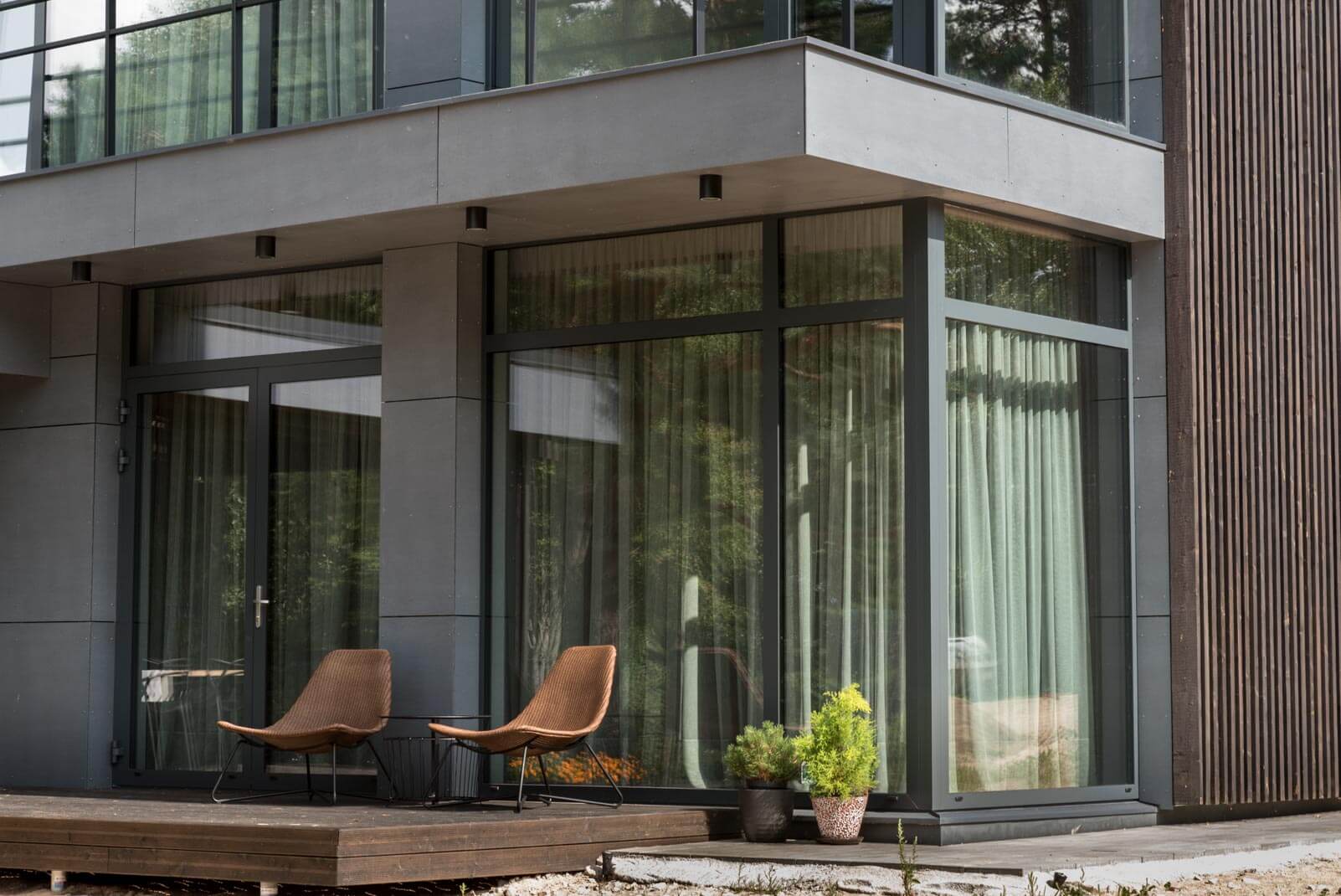 Остекление фасада загородного дома в стиле хай-тек - это безопасность и энергоэффективность в сочетании с большими панорамными стеклами и системами окон и дверей с большой площадью.