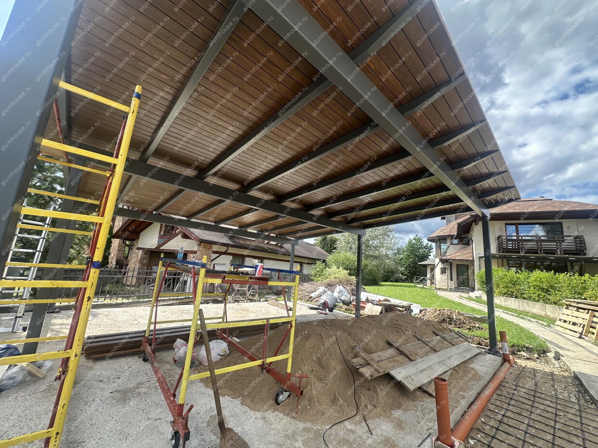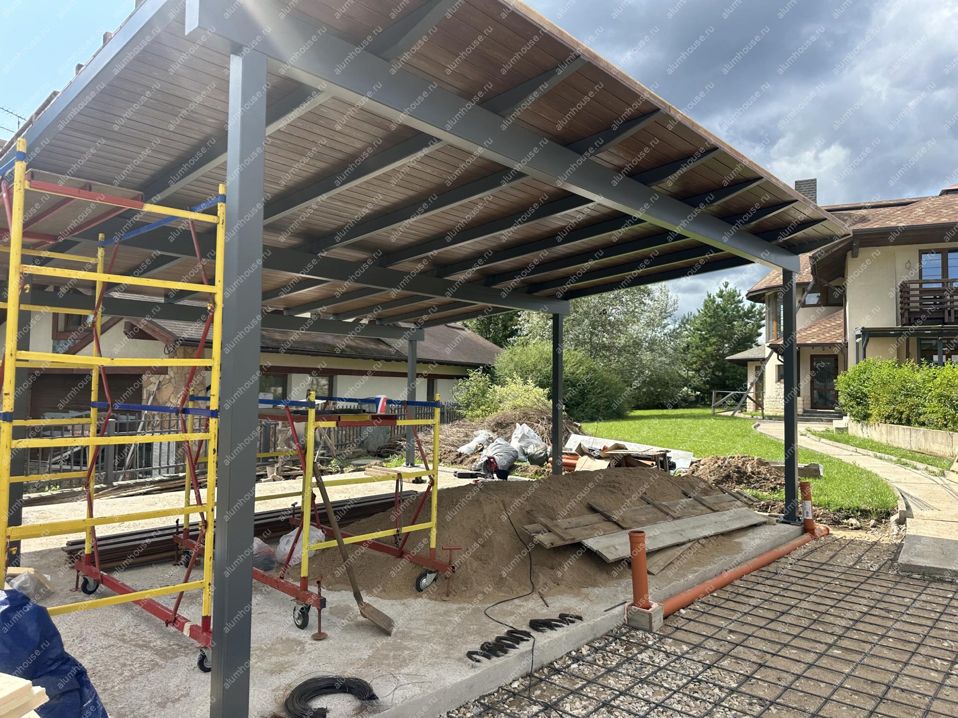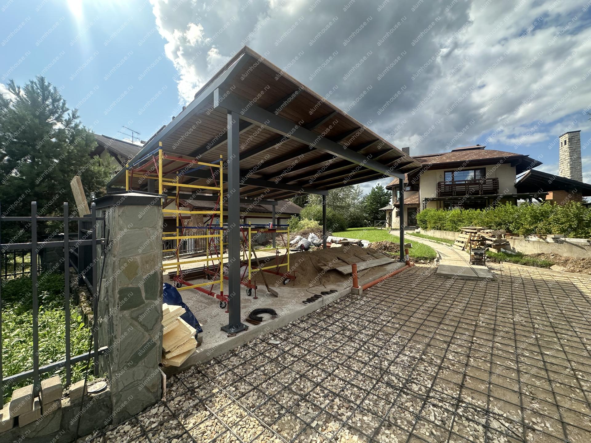 В проект вошли замеры, 3D‑увязка с участком и фасадом дома, изготовление металлокаркаса на производстве и монтаж на объекте с финишной герметизацией. Все видимые элементы имеют аккуратную геометрию и долговечное покрытие, упрощающее уход. Решение гармонично интегрируется в ландшафт, повышая комфорт ежедневной эксплуатации и увеличивая ценность участка.