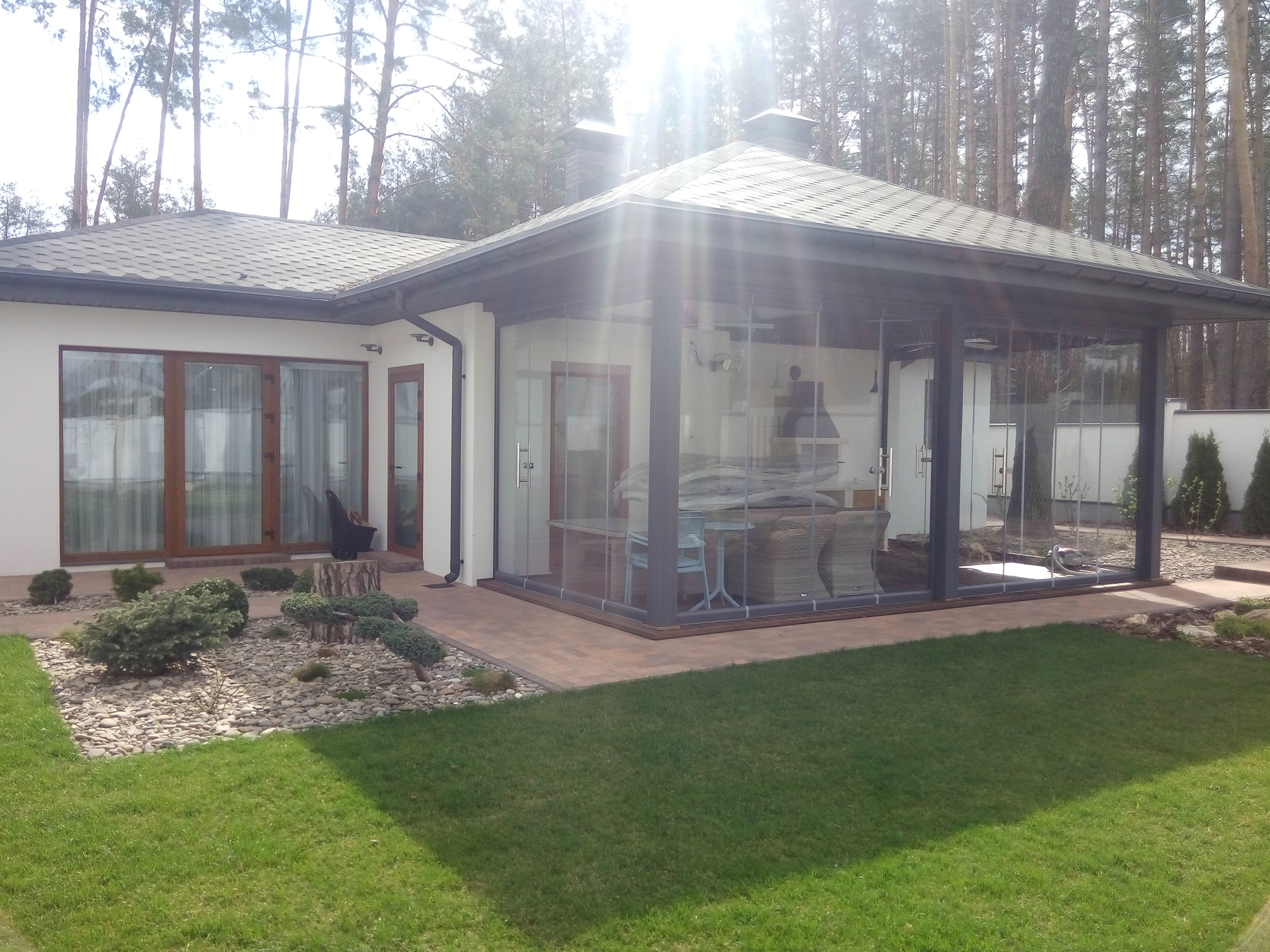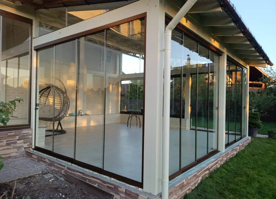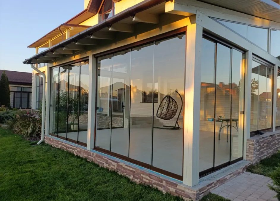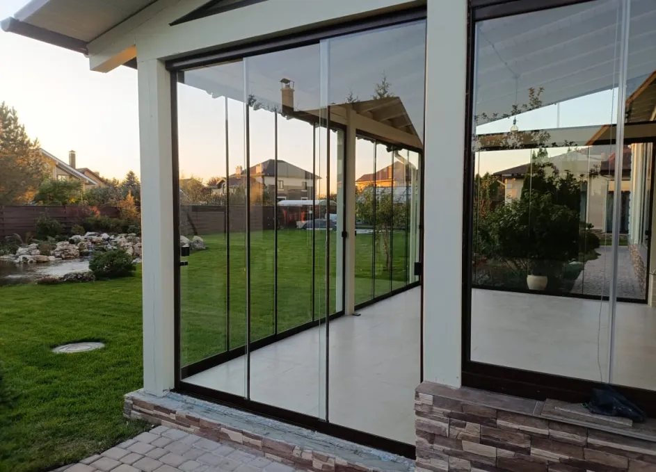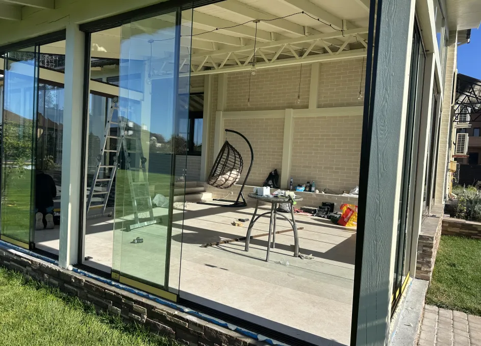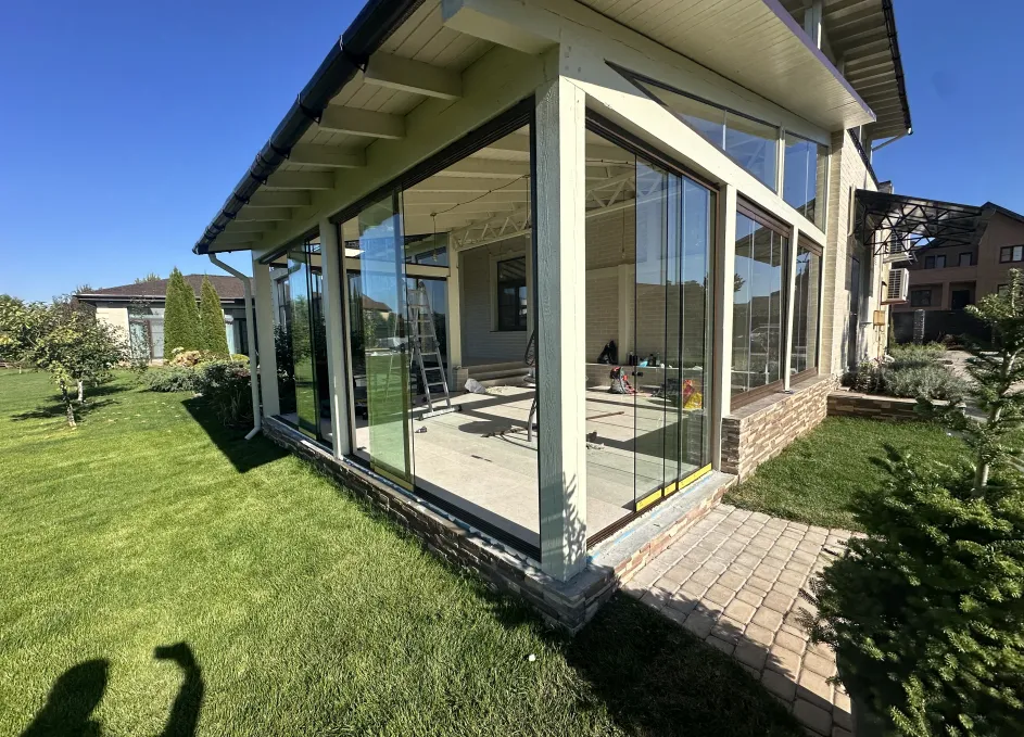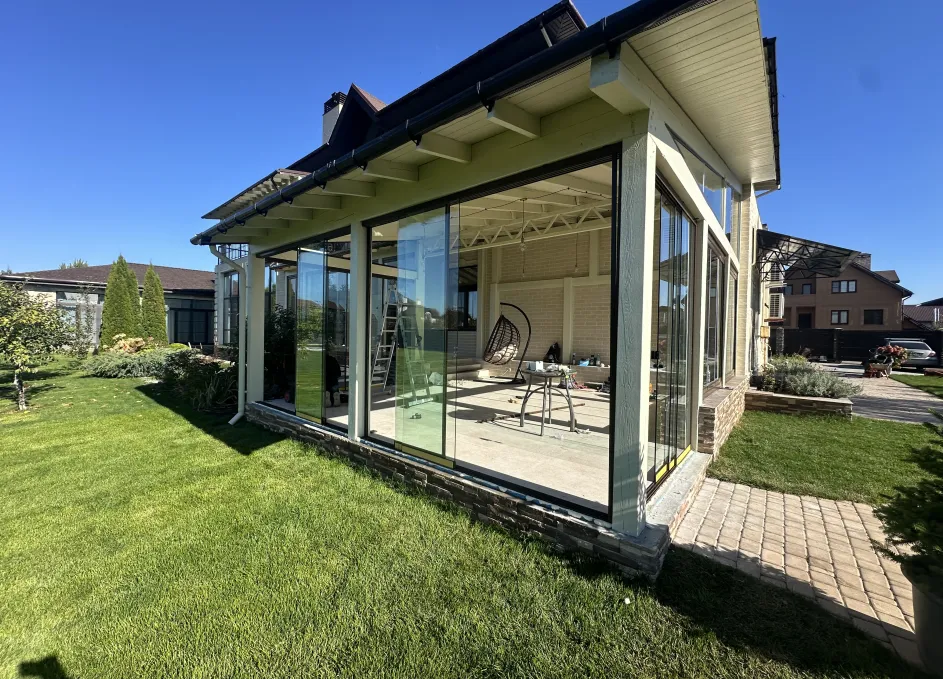 Остекление террасы от пола до потолка раздвижной слайд конструкцией