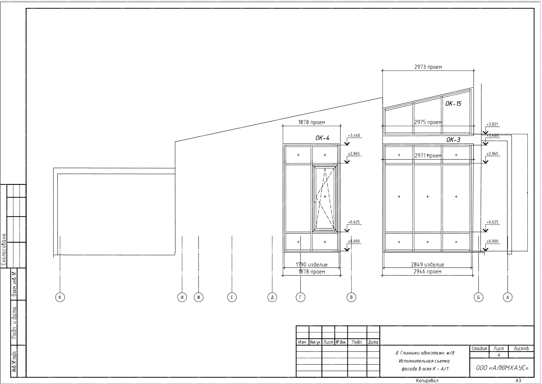 Документация фиксирует габариты, шаг стоек и ригелей, конфигурацию остекления и точки примыканий к существующему дому.