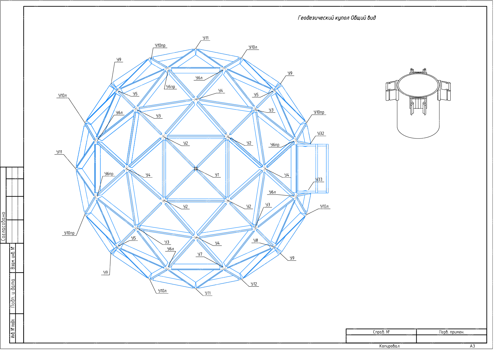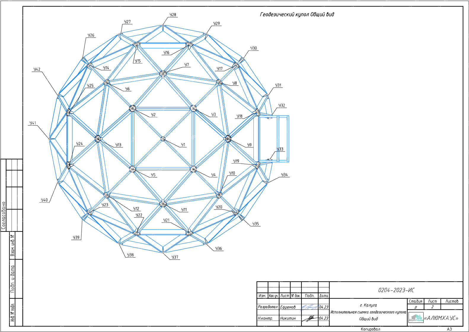 Проект описывает последовательность остекления купольной оболочки: нумерацию ячеек, карты остекления по рядам и частотам, а также спецификацию стекла.