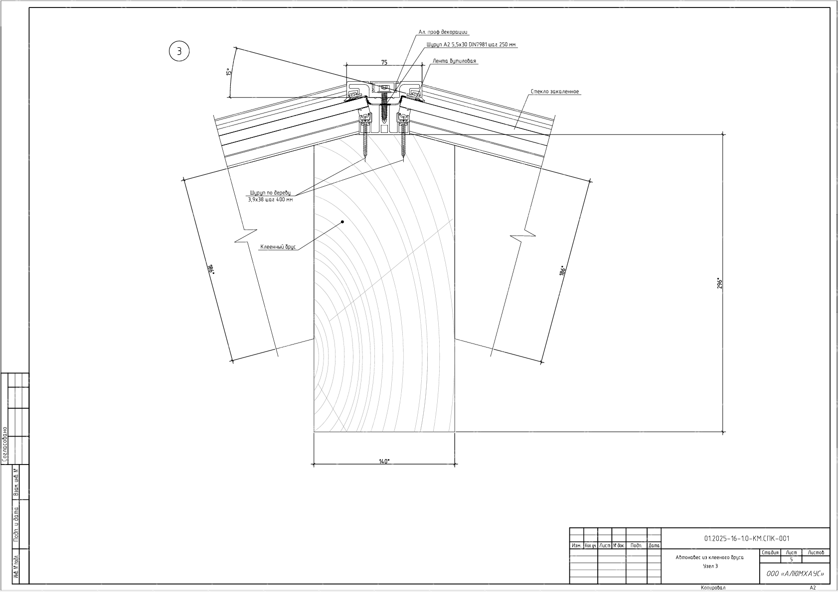 Проект остекления стеклянного навеса по готовому деревянному каркасу представляет собой комплект инженерных чертежей и пояснений для интеграции стеклянной кровли в существующую систему из клеёного бруса. В документации фиксируются геометрия пролётов, шаг стропил и расчётные нагрузки для корректного подбора стекла и крепёжных решений. Цель проекта - обеспечить безопасное, герметичное и визуально лёгкое остекление без изменения архитектуры каркаса.