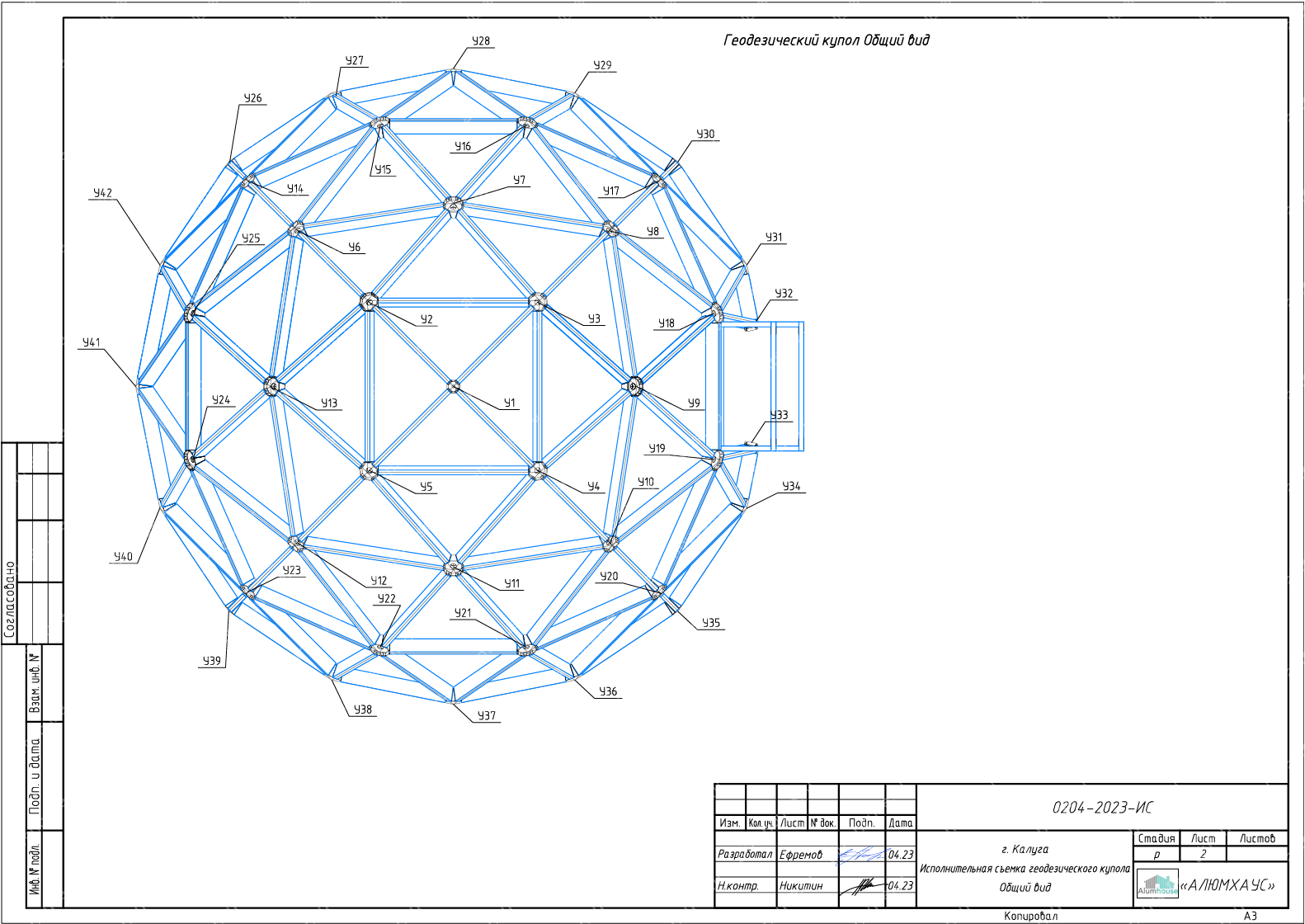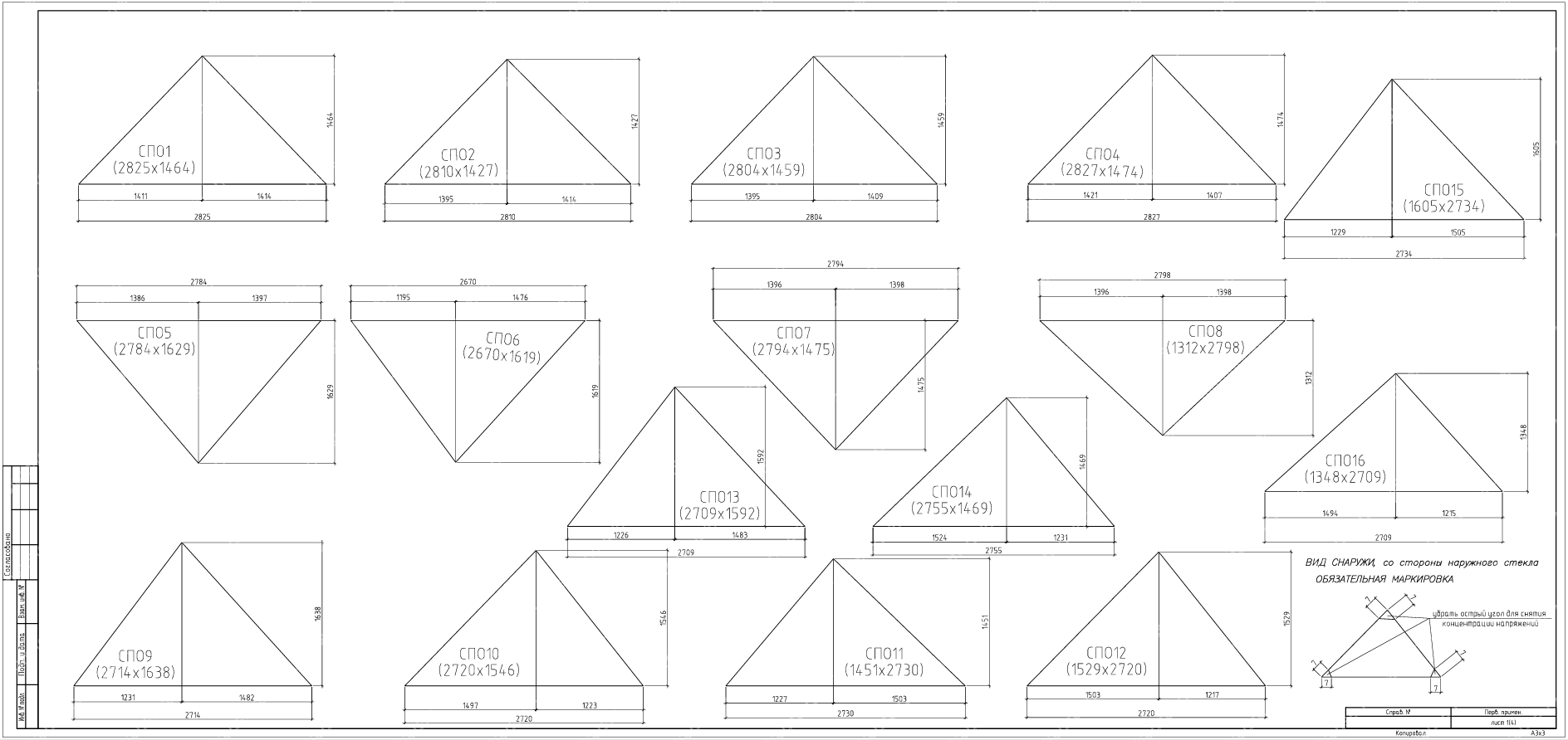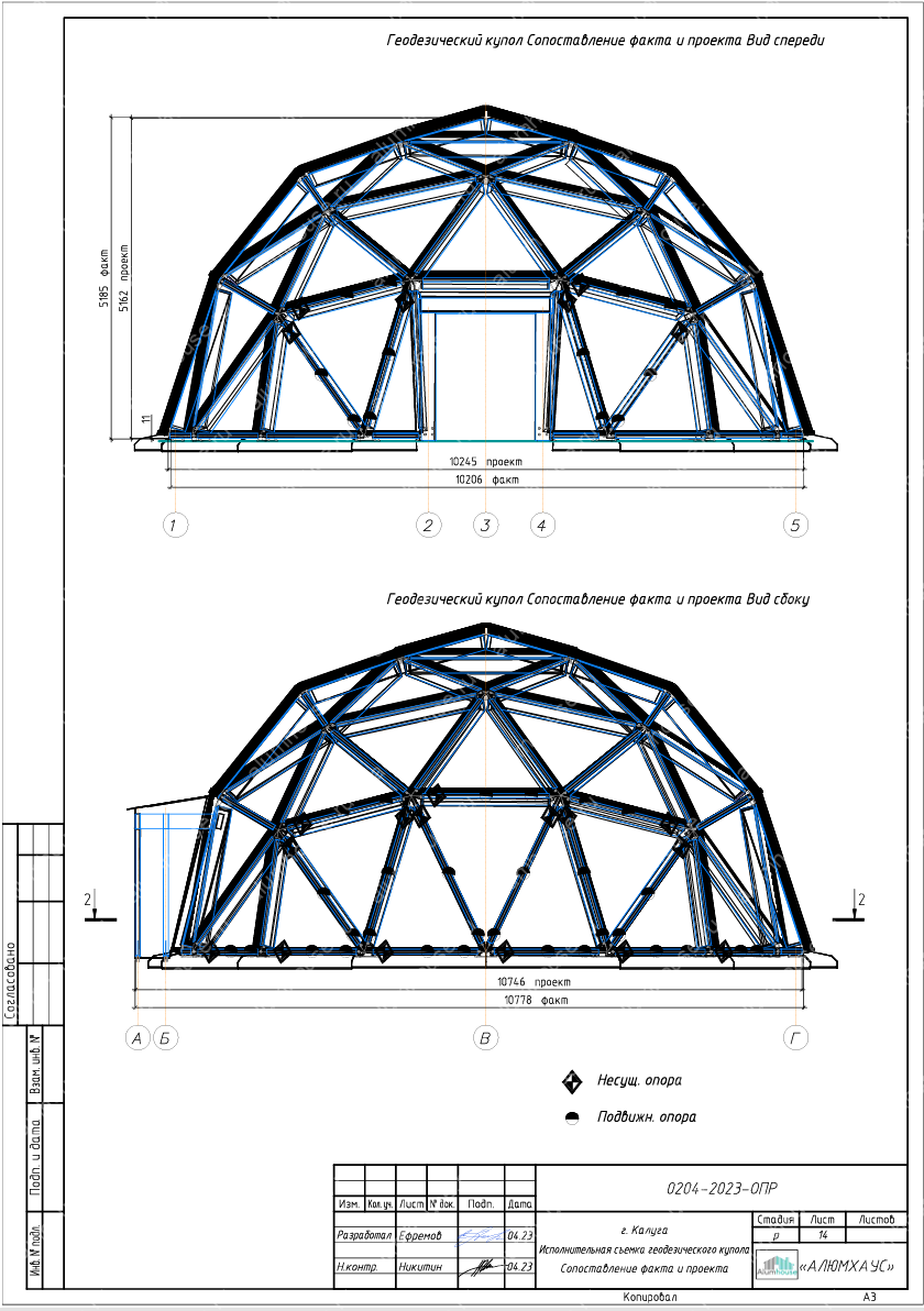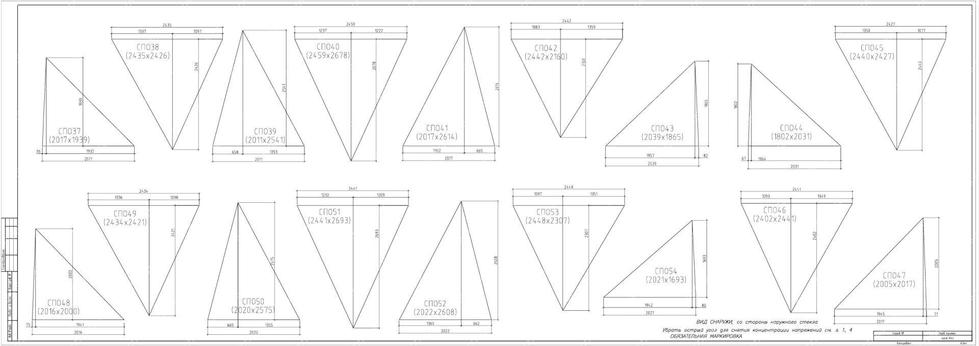 На данных чертежах показано остекления геодезического купола по готовому каркасу из клееного бруса и описывается инженерная проработка панелей остекления для триангулярной оболочки купола, уже смонтированной из клееного бруса. В составе проекта предусмотрены схемы раскроя стеклопакетов/триплекса по треугольным и многоугольным ячейкам, спецификация крепёжных узлов и требования к примыканиям к деревянным ребрам. Документация учитывает особенности геодезического купола как распорной системы и задаёт допуски, шаг герметизации и ветро‑снеговые нагрузки для безопасной эксплуатации.
