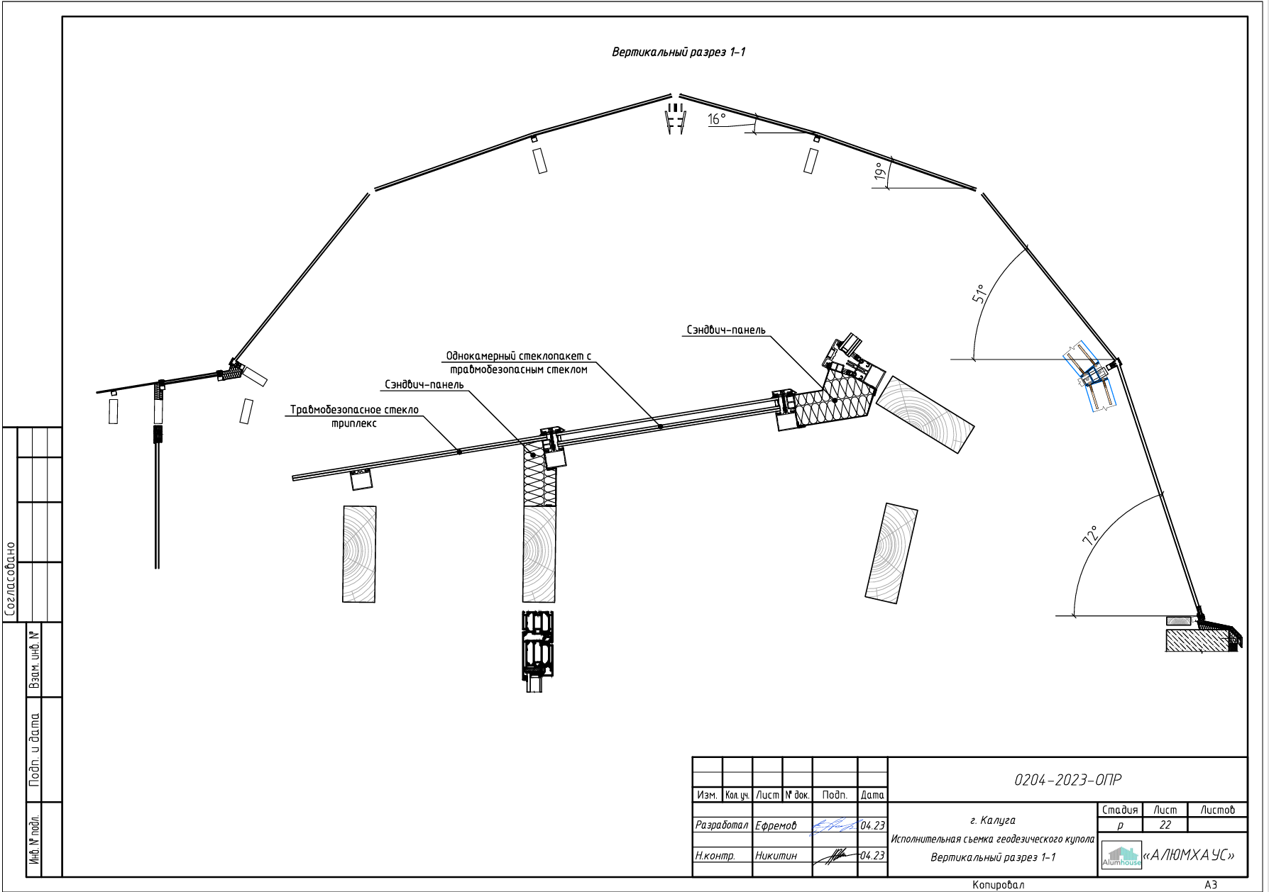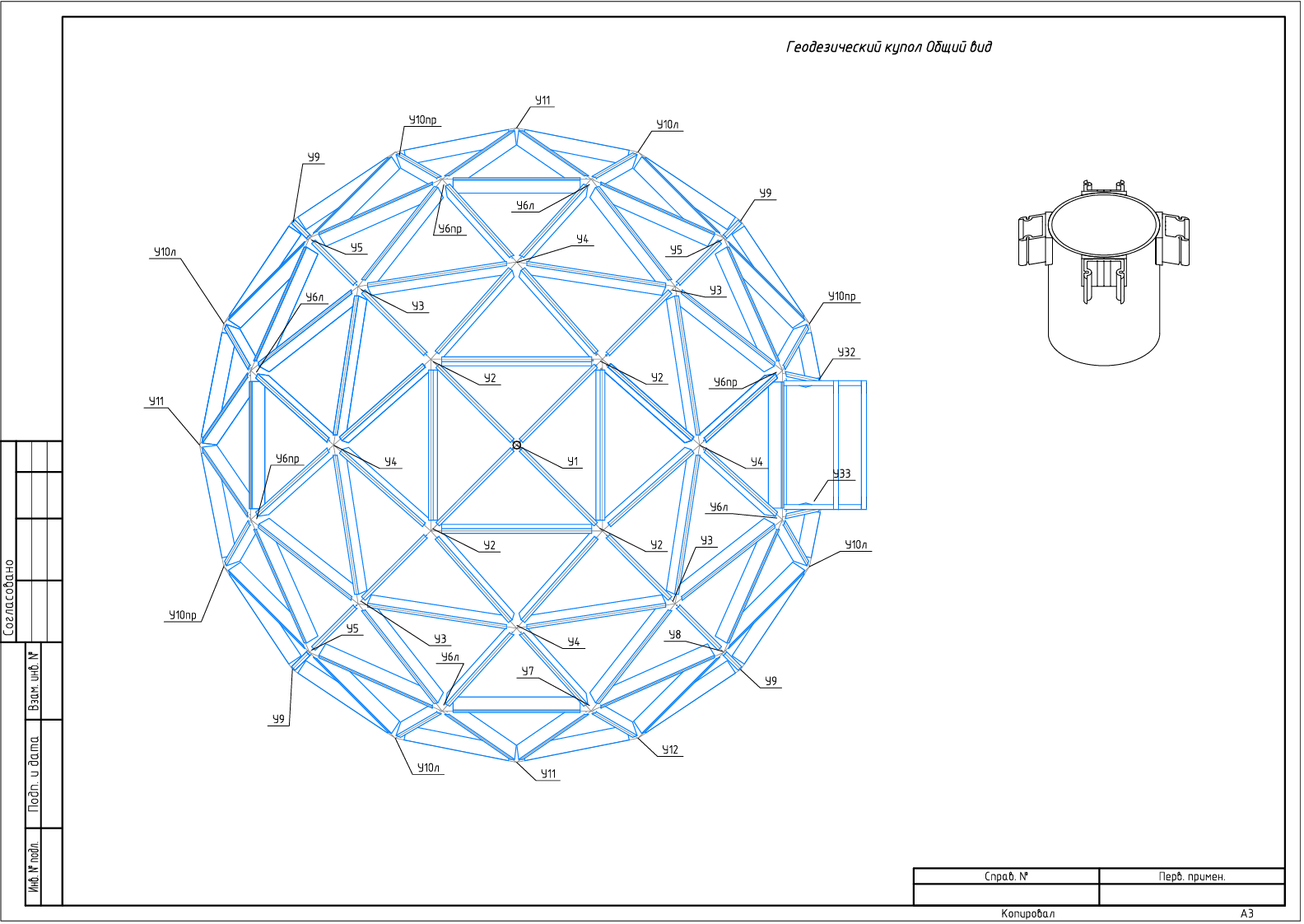 Проект/чертежи остекления геодезического купола по готовому каркасу из клееного бруса