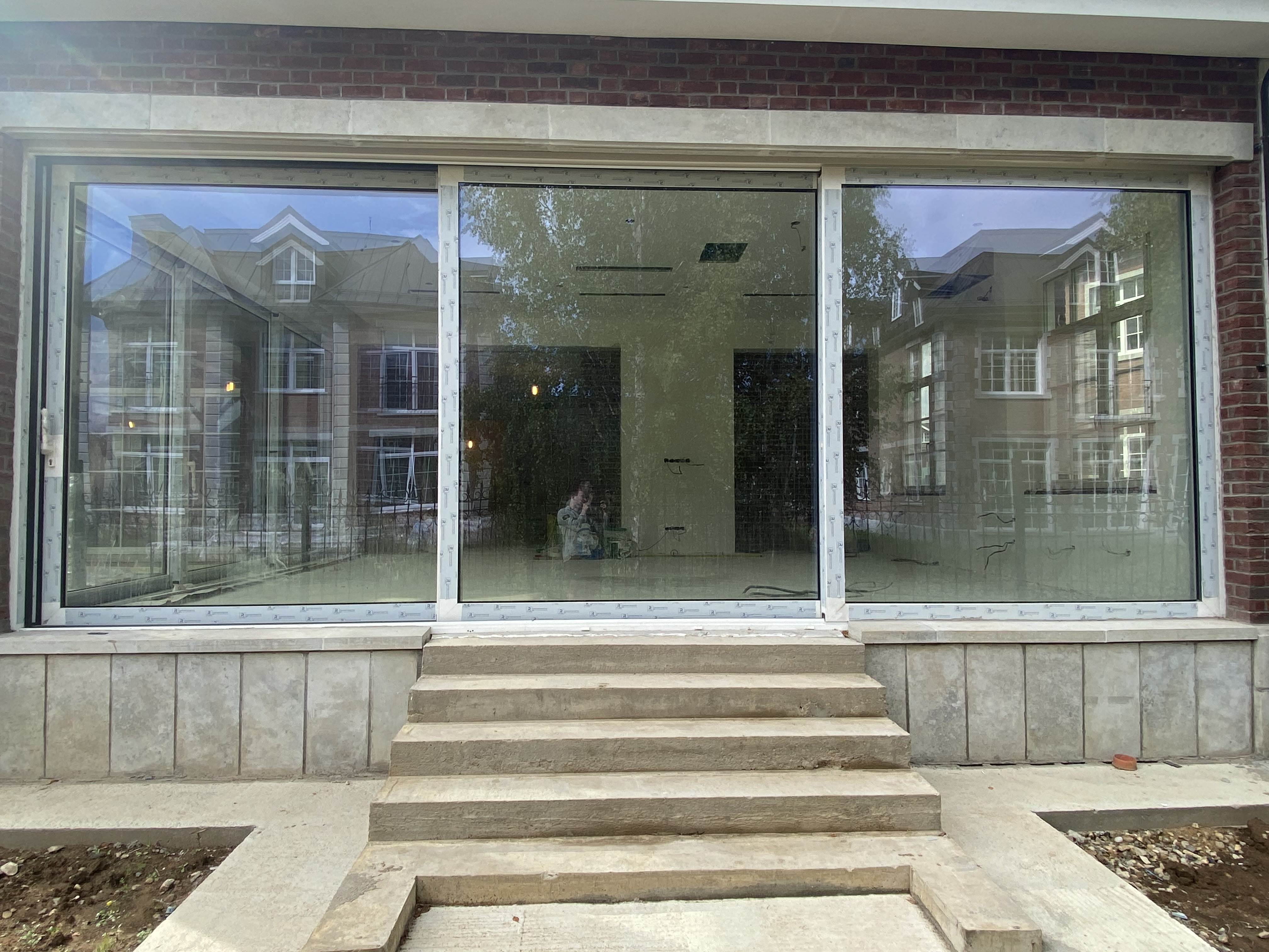 Тёплые раздвижные дверные конструкции идеально вписываются в фасад здания, не нарушая общей концепции. Благодаря своему типу открыванию, позволяет открыть проёмы на 1/2.