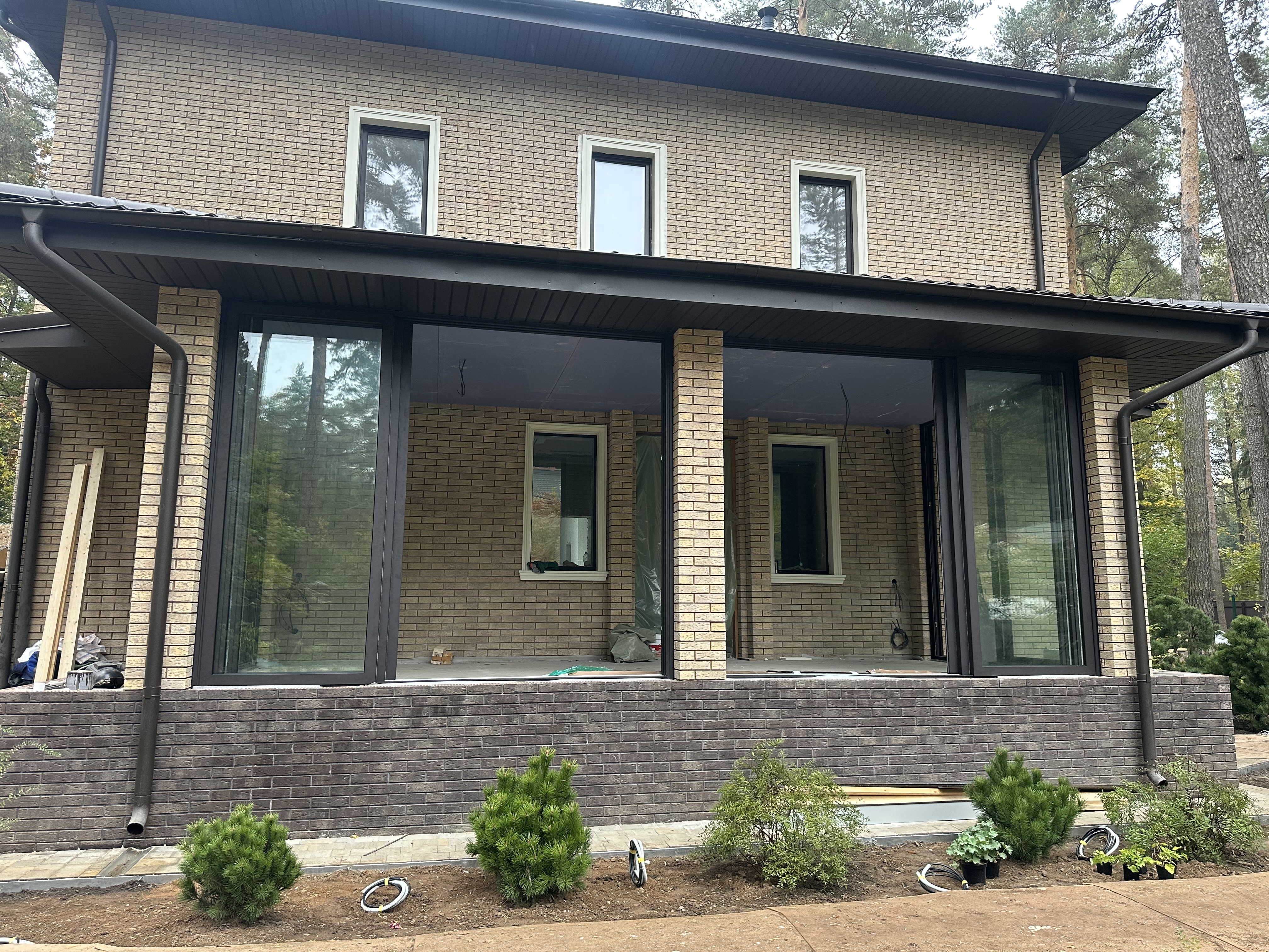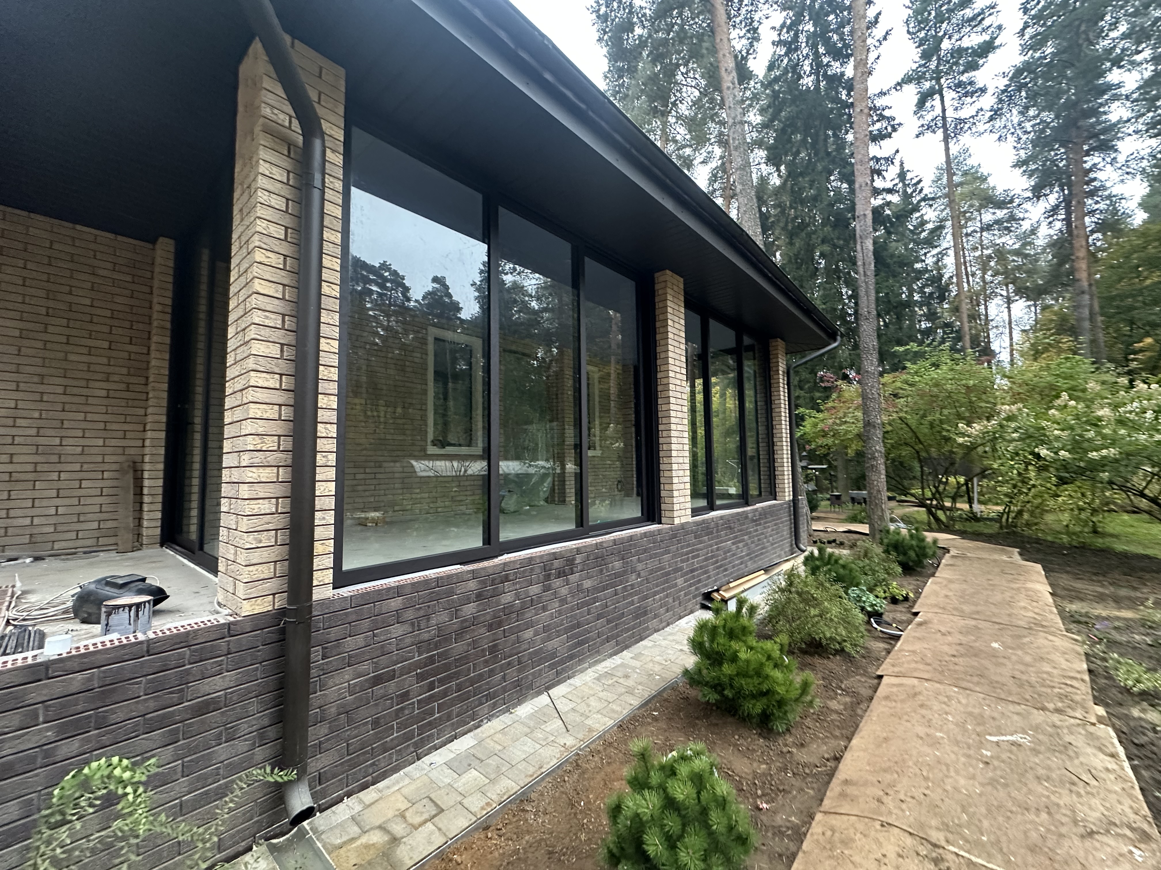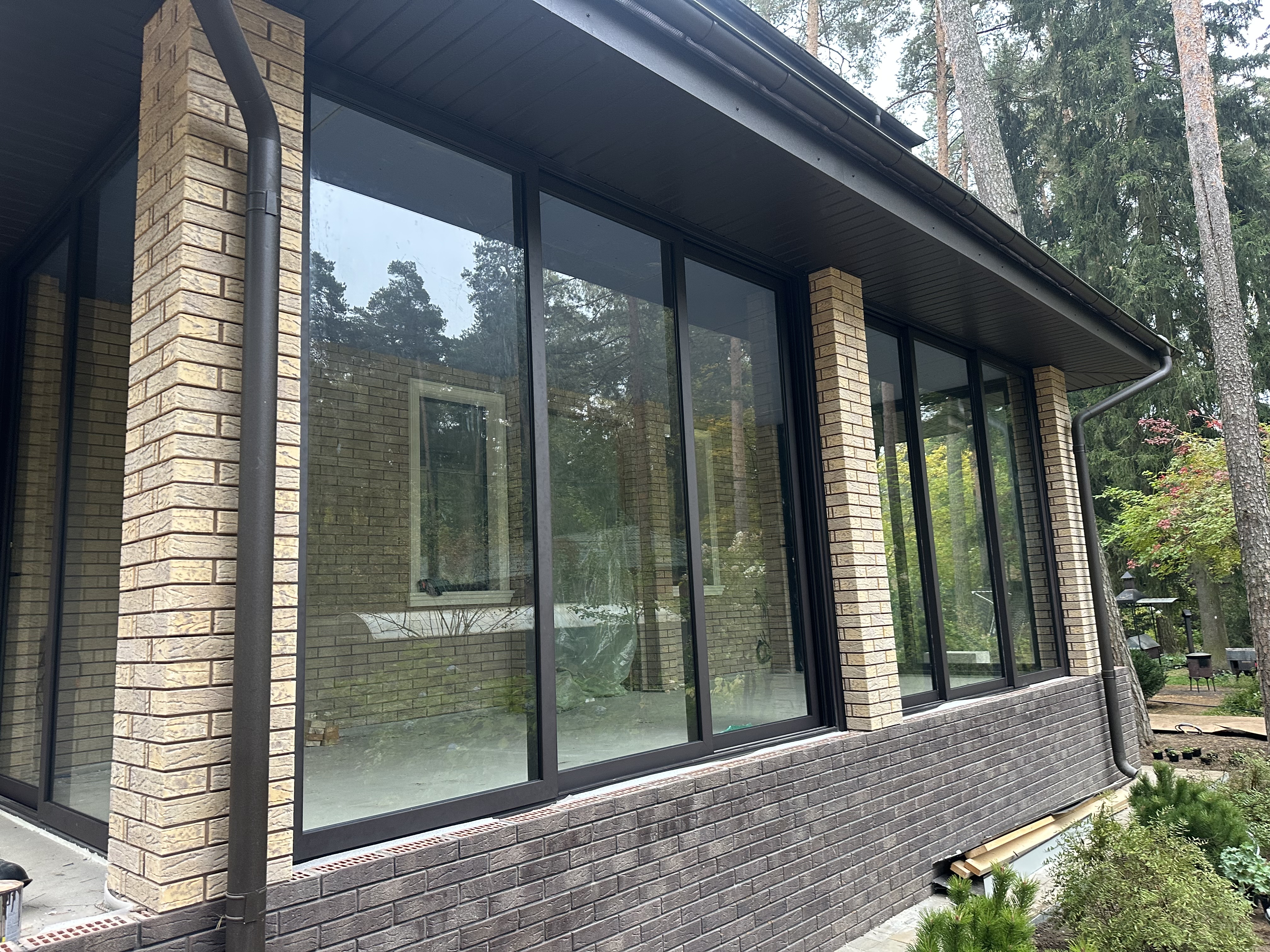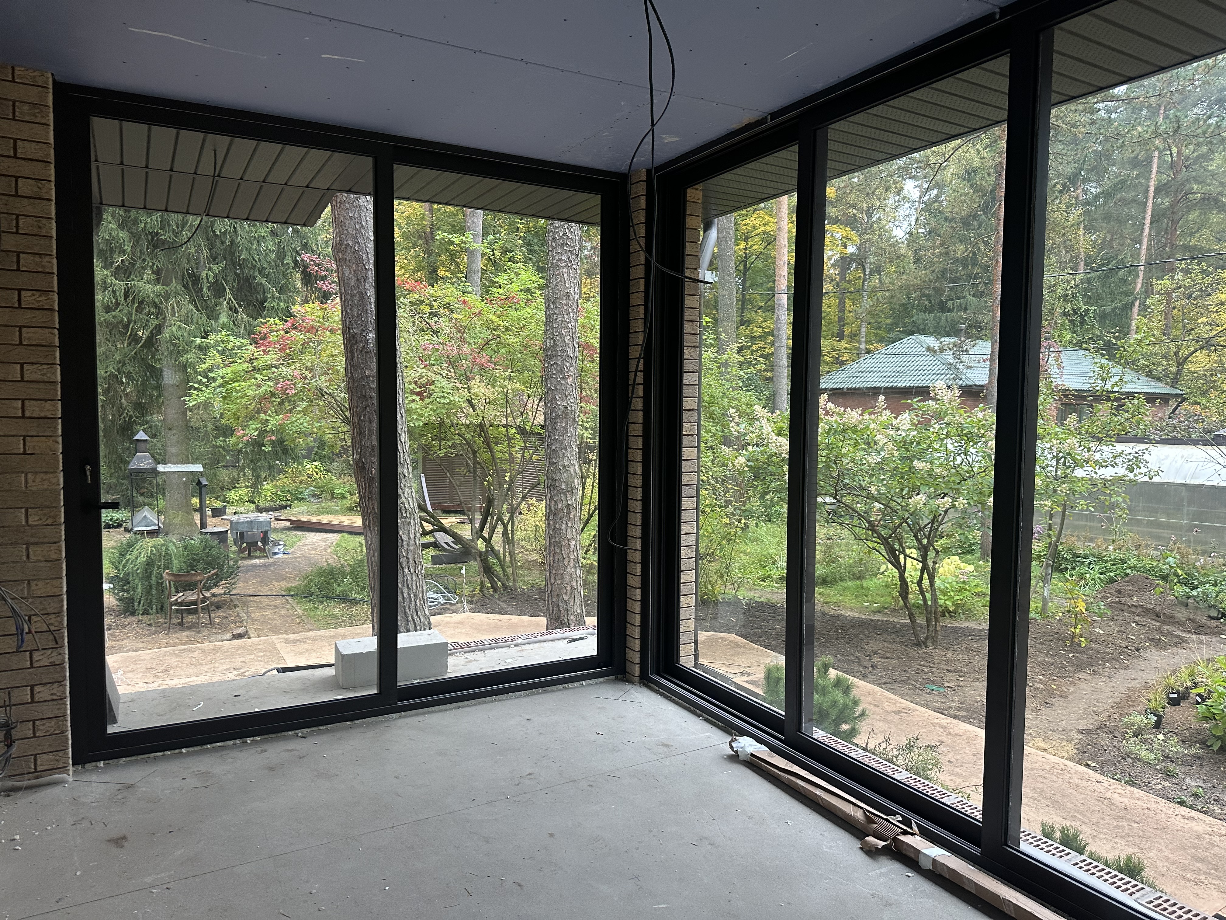 Остекление веранды раздвижными панорамными дверьми от пола до потолка