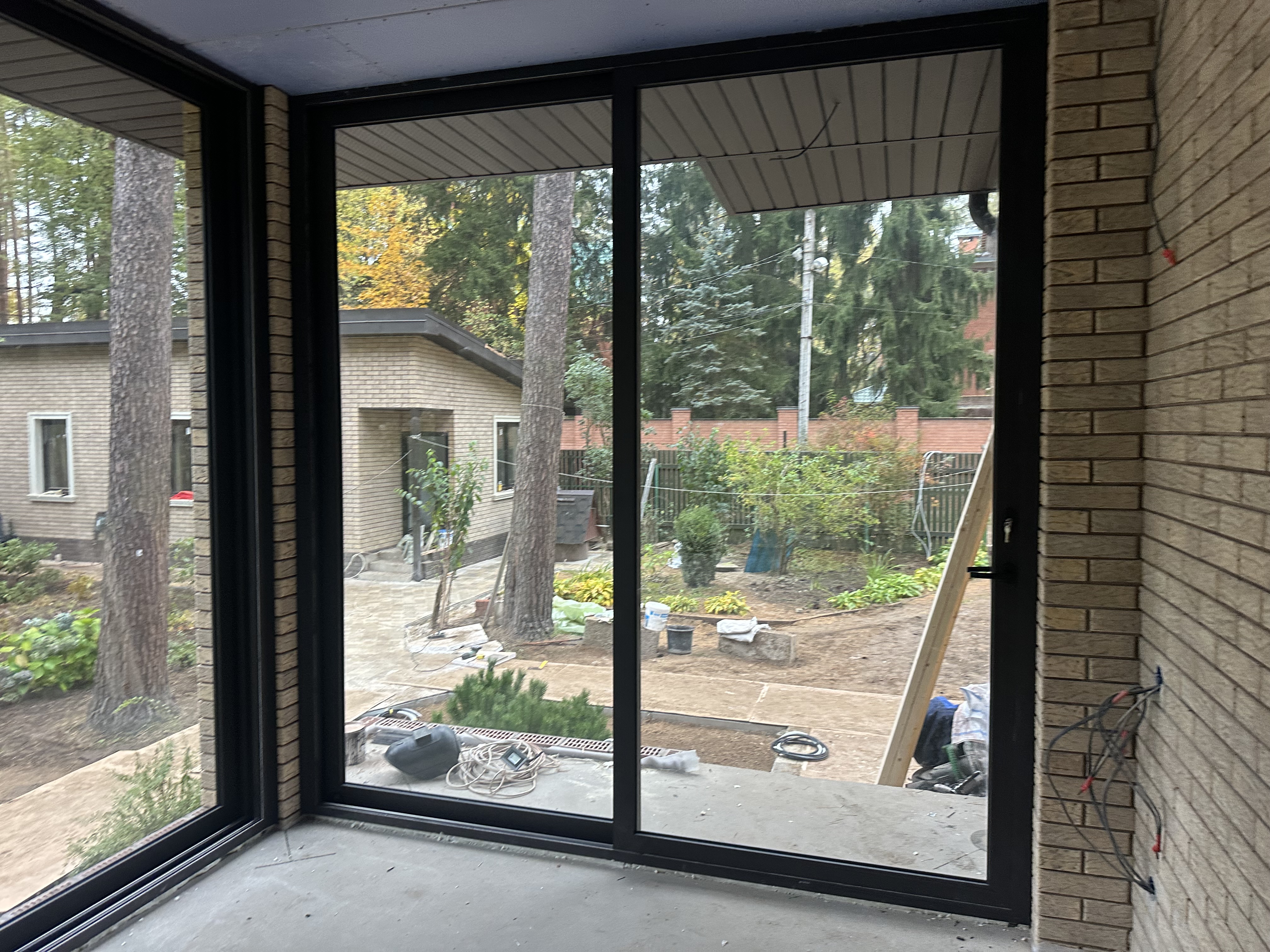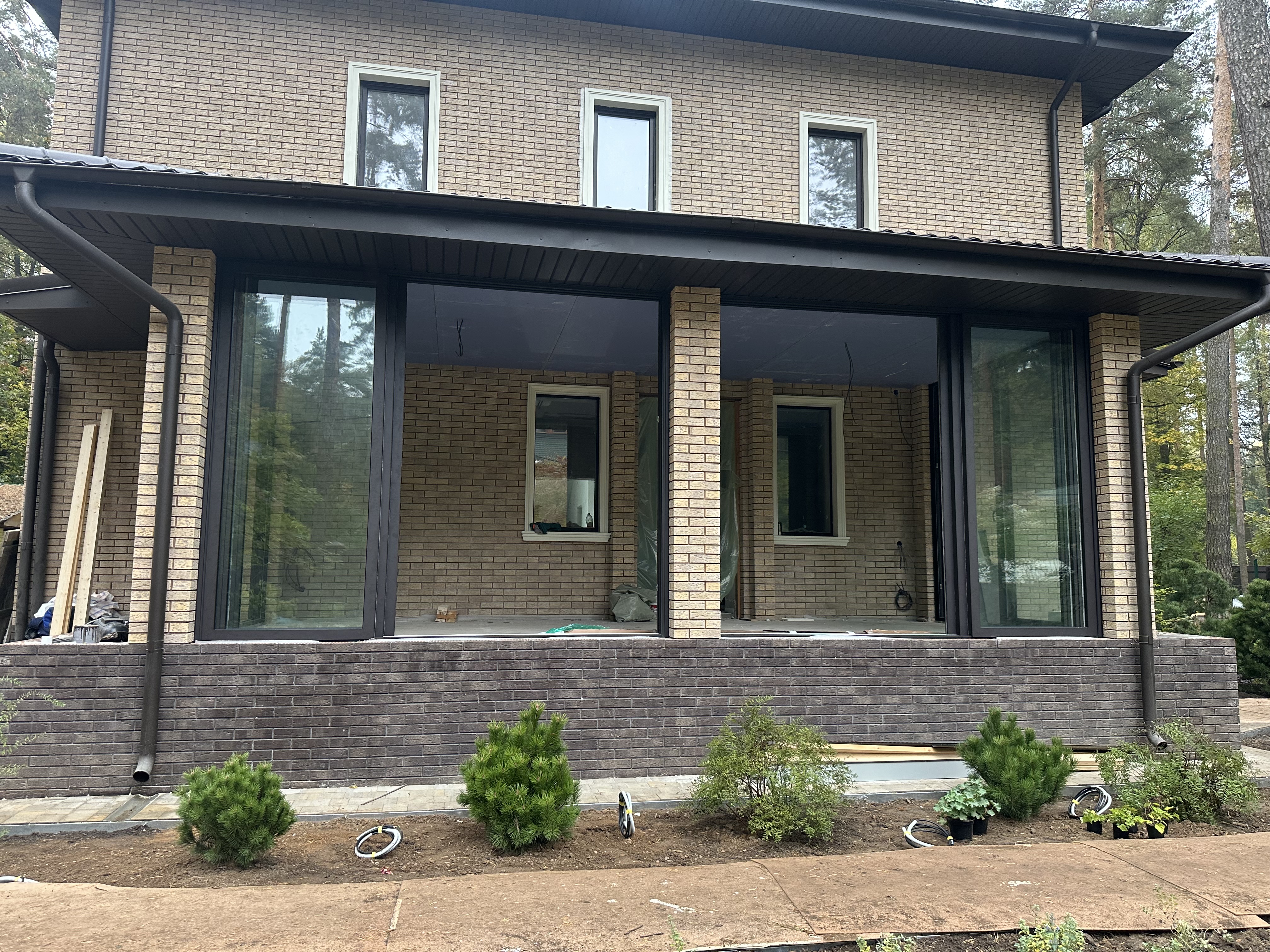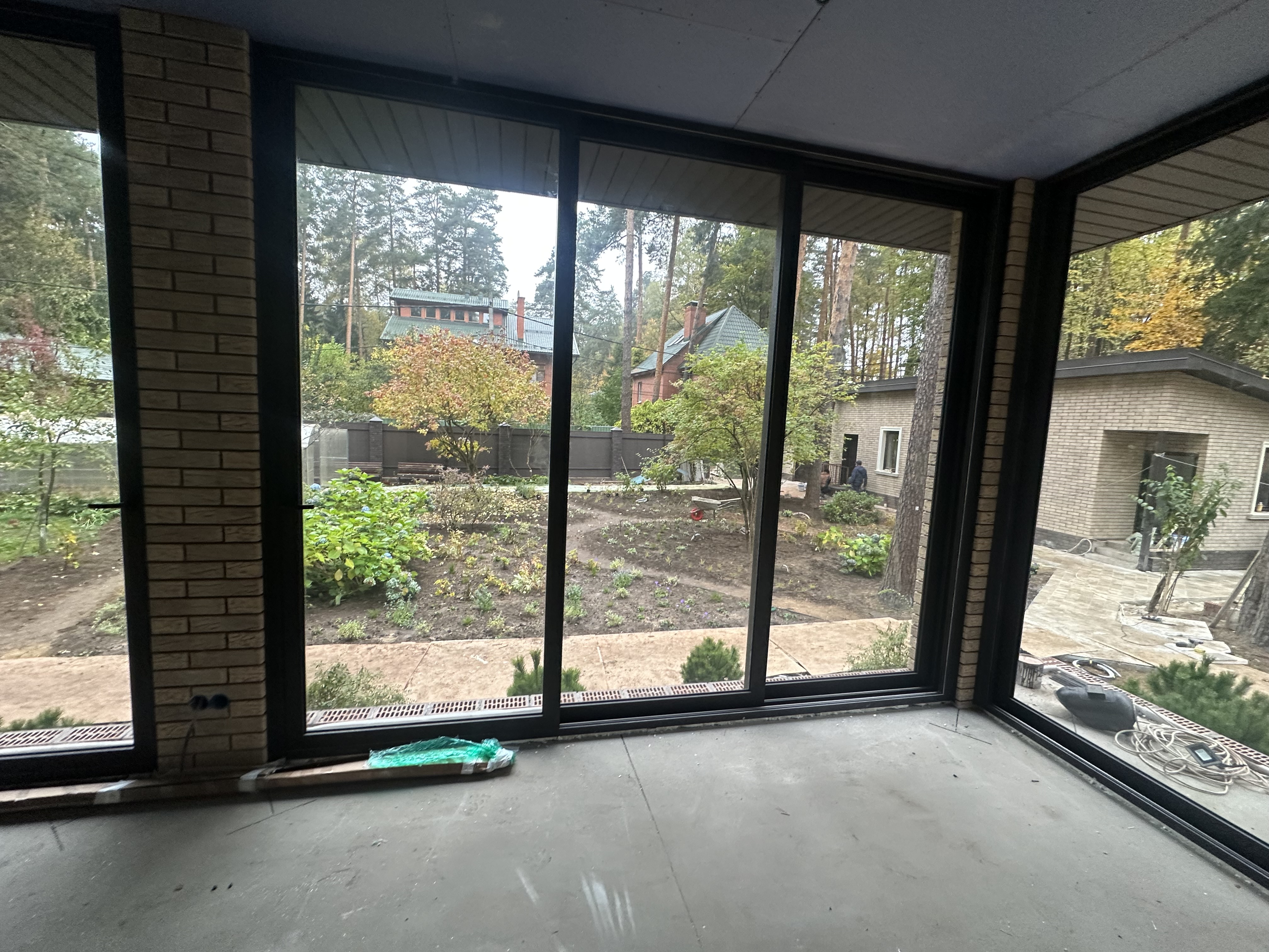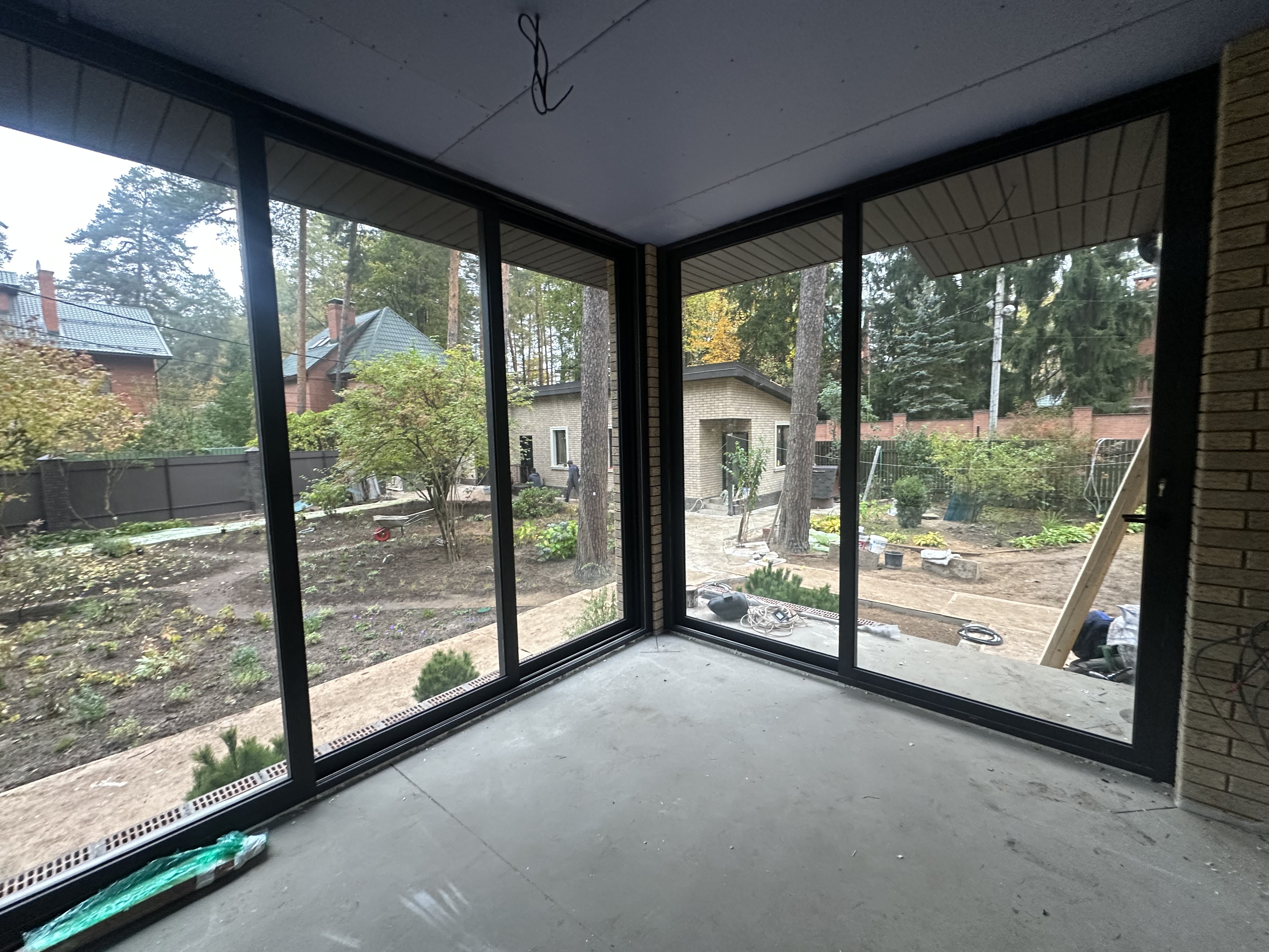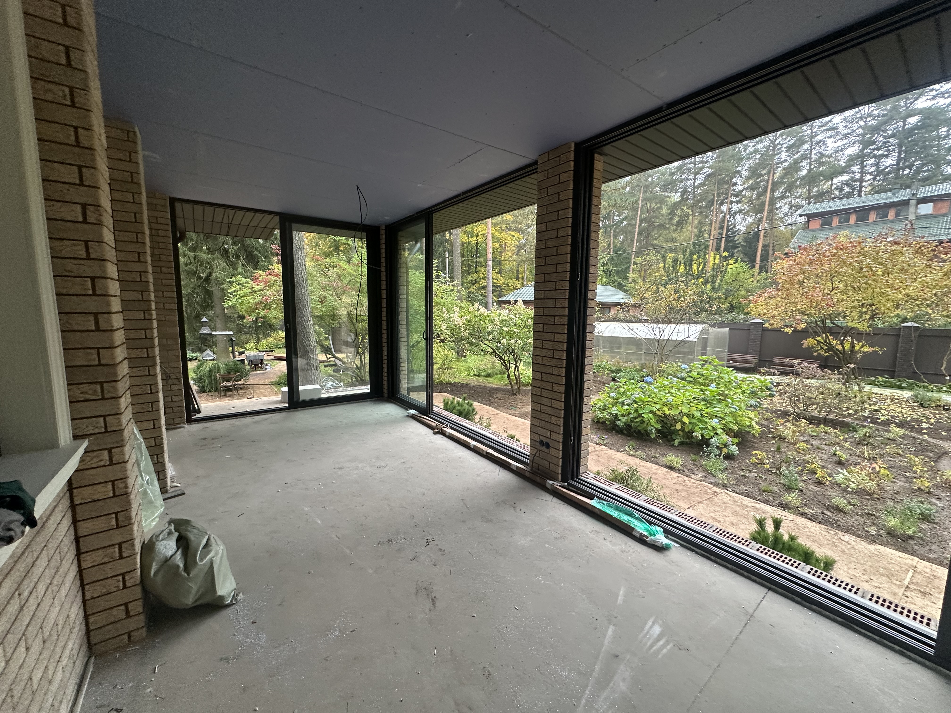 Остекление веранды раздвижными панорамными дверьми от пола до потолка