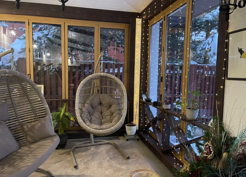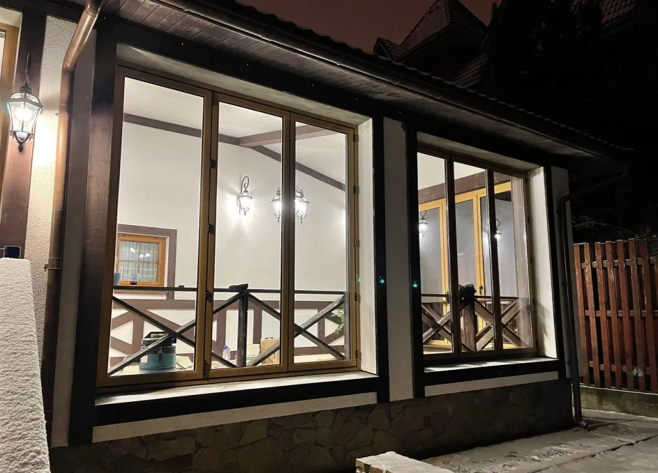 Профили окрашены по палитре RAL с возможностью матовых, глянцевых и текстурных покрытий под архитектуру дома. Для остекления доступны безопасные варианты: закалённое и ламинированное стекло, а также мультифункциональные и солнцезащитные стеклопакеты под инсоляцию участка. Итогом стала светлая и трансформируемая веранда, удобная для отдыха, приёма гостей и сезонного проветривания без потери эстетики.