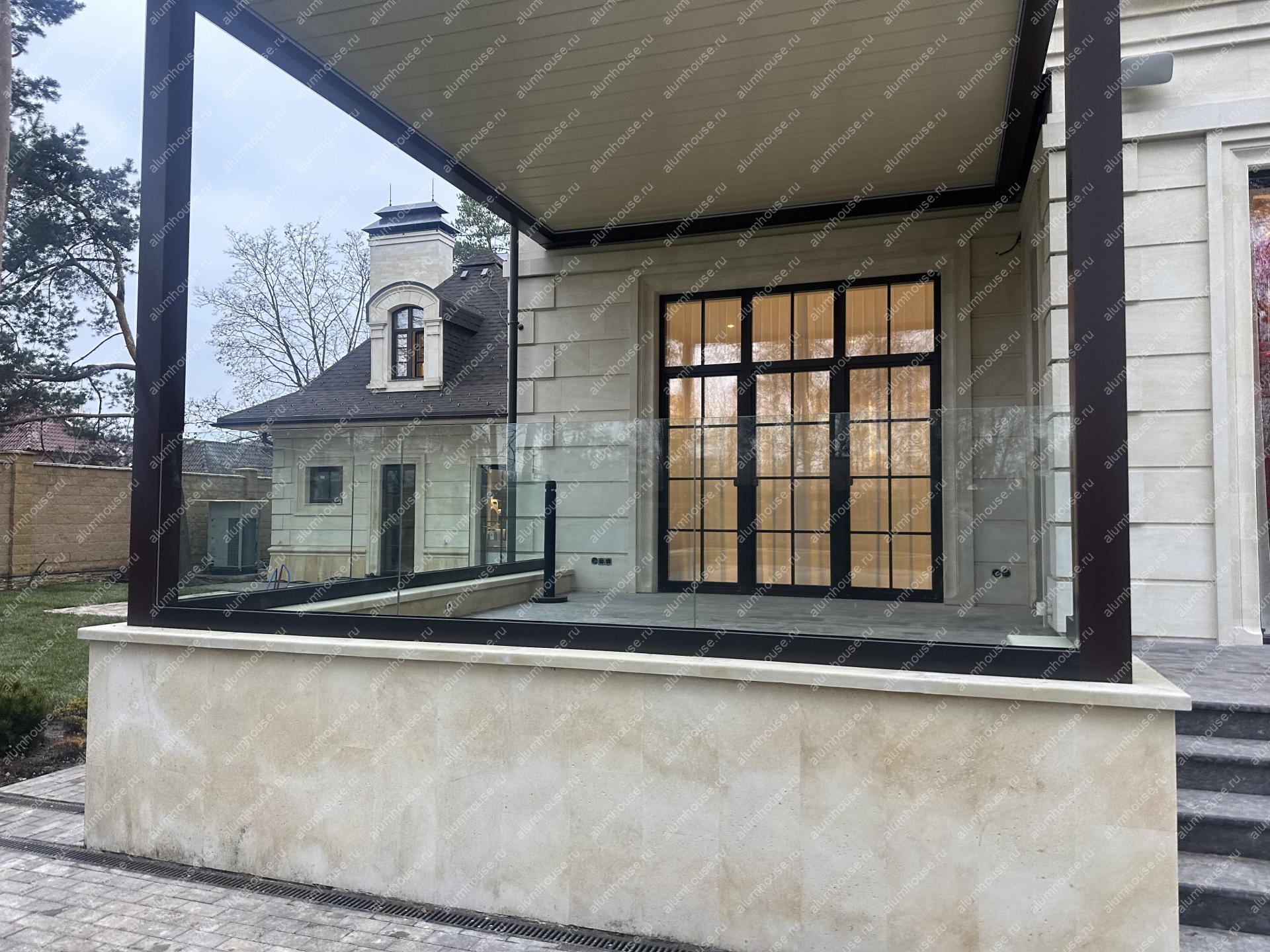 Результат - лёгкая и надёжная конструкция, устойчивная к ветровым нагрузкам и ежедневной эксплуатации. Ограждение повышает безопасность зоны отдыха, не перегружая видовые линии. Пергола сохраняет ощущение открытого пространства при визуальной целостности фасадной композиции.