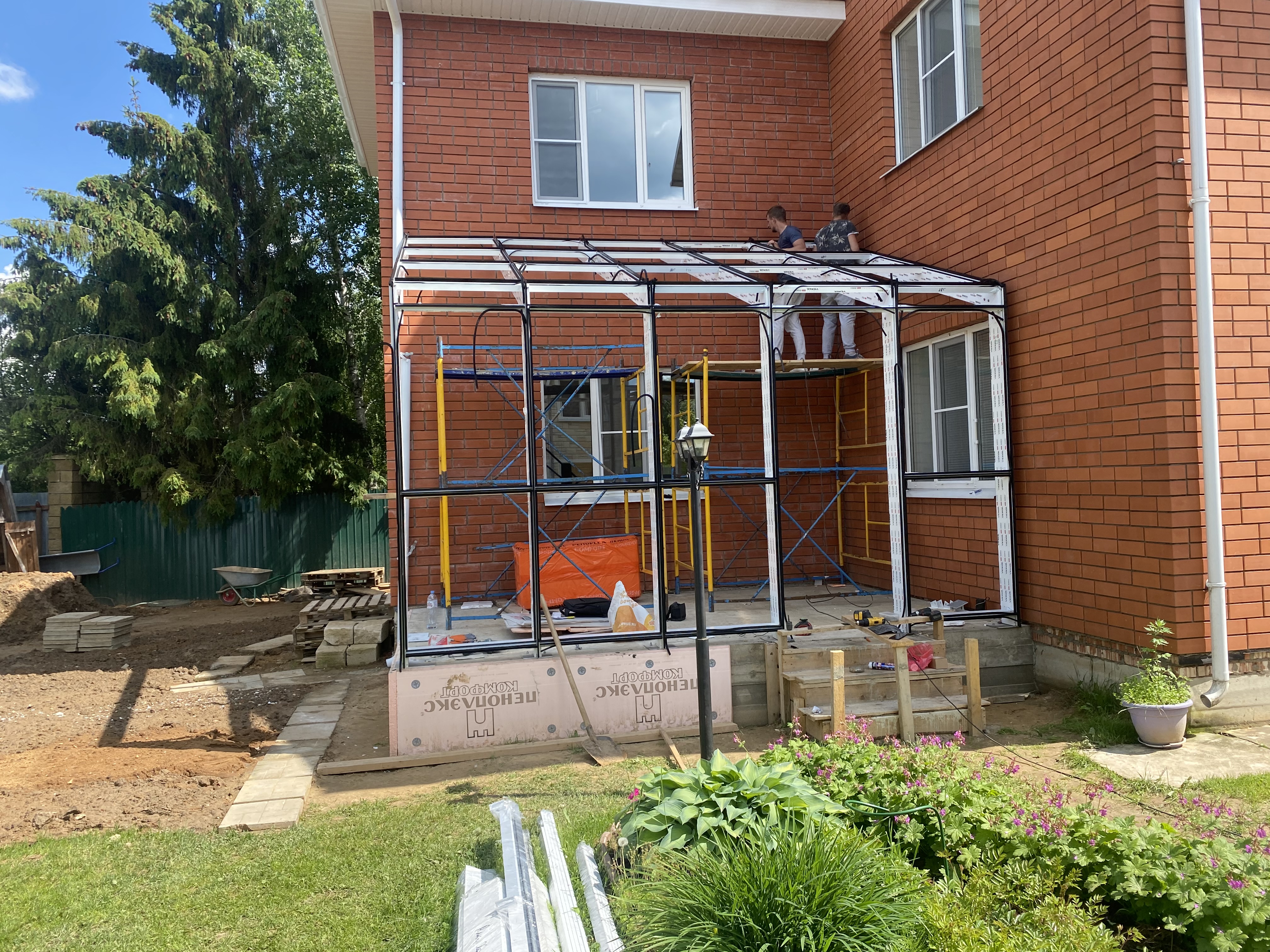 Зимний сад на крыше гаража из алюминиевого профиля стал лёгкой тёплой надстройкой с панорамным светом и комфортом круглогодичного отдыха.