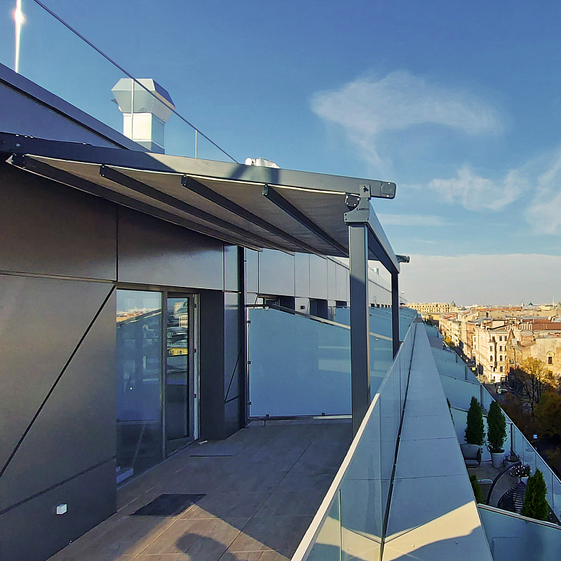 Это пристенная модель, предназначенная для монтажа непосредственно на фасад здания. Кроме террас ресторанов и загородных домов, она может устанавливаться на балконы городских пентхаусов или зоны отдыха высотных террас.
