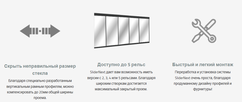 - Переработка и установка системы SliderNext очень проста, благодаря продуманному дизайну профилей и фурнитуры!