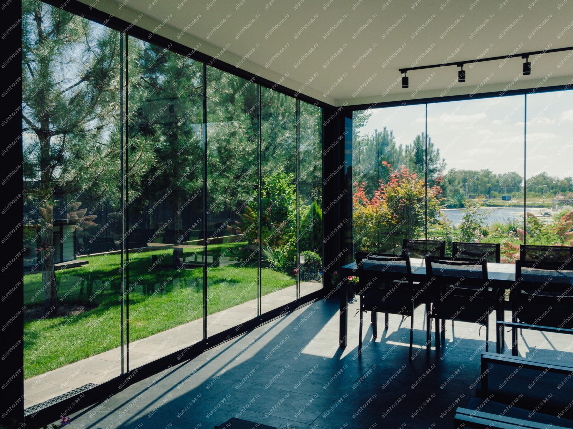 Если вам необходима пристройка с безрамным остеклением, мы предложим
