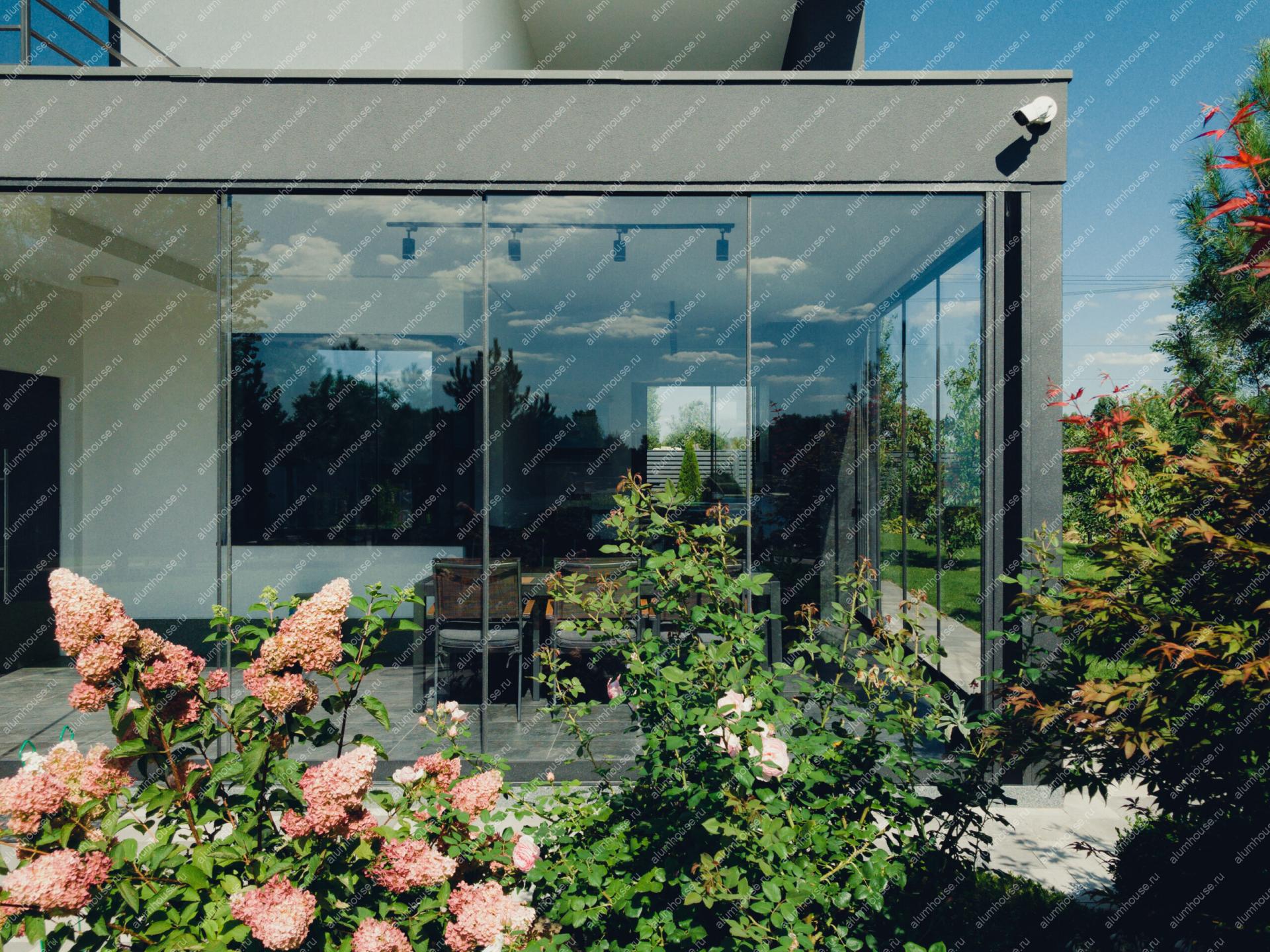 Стеклянная пристройка с безрамным остеклением и стеклянной крышей - подходит для расширения частных домов, а также служит прекрасным местом для отдыха, позволяющая раньше начать весну и продлить лето до поздней осени.