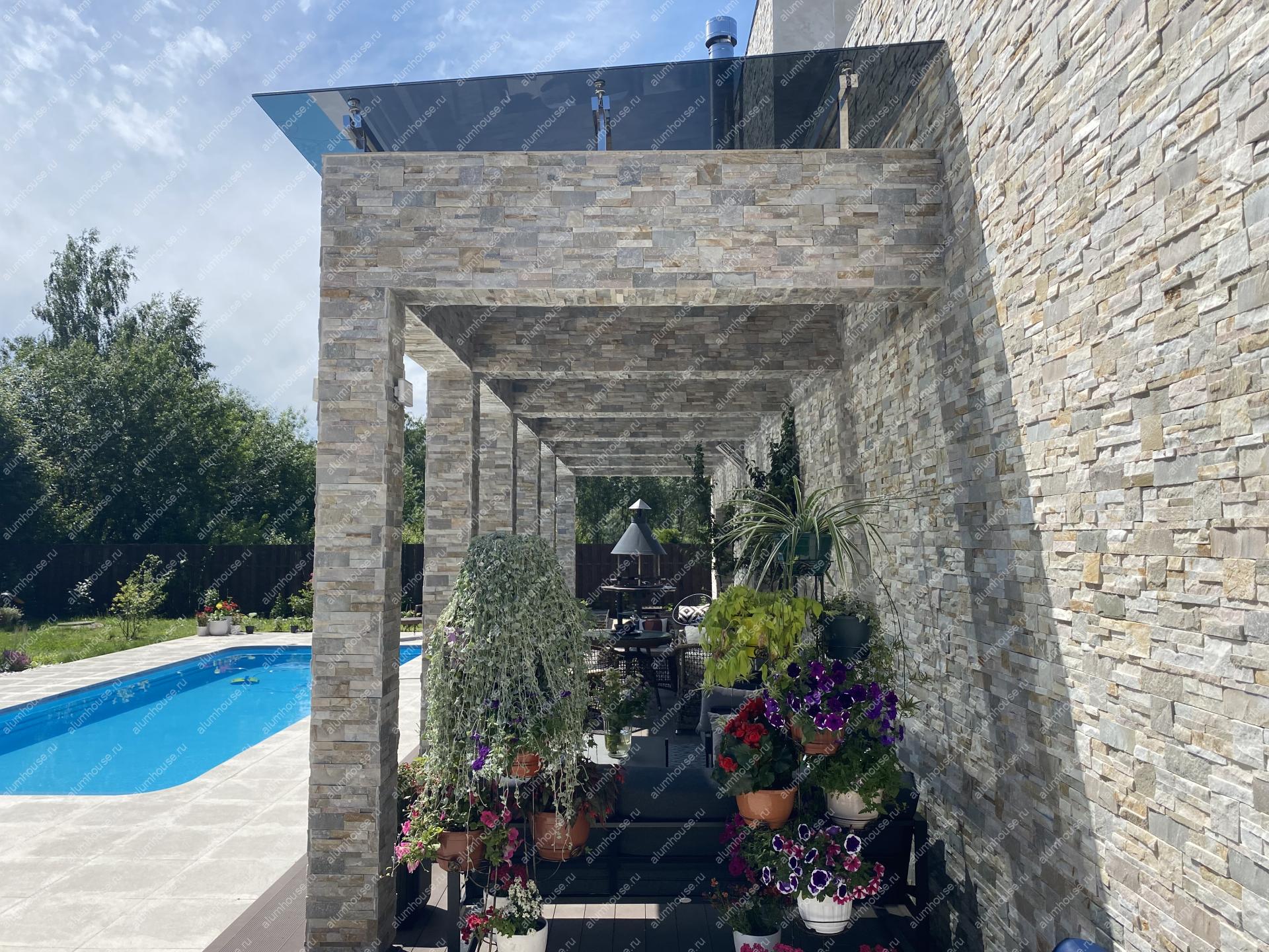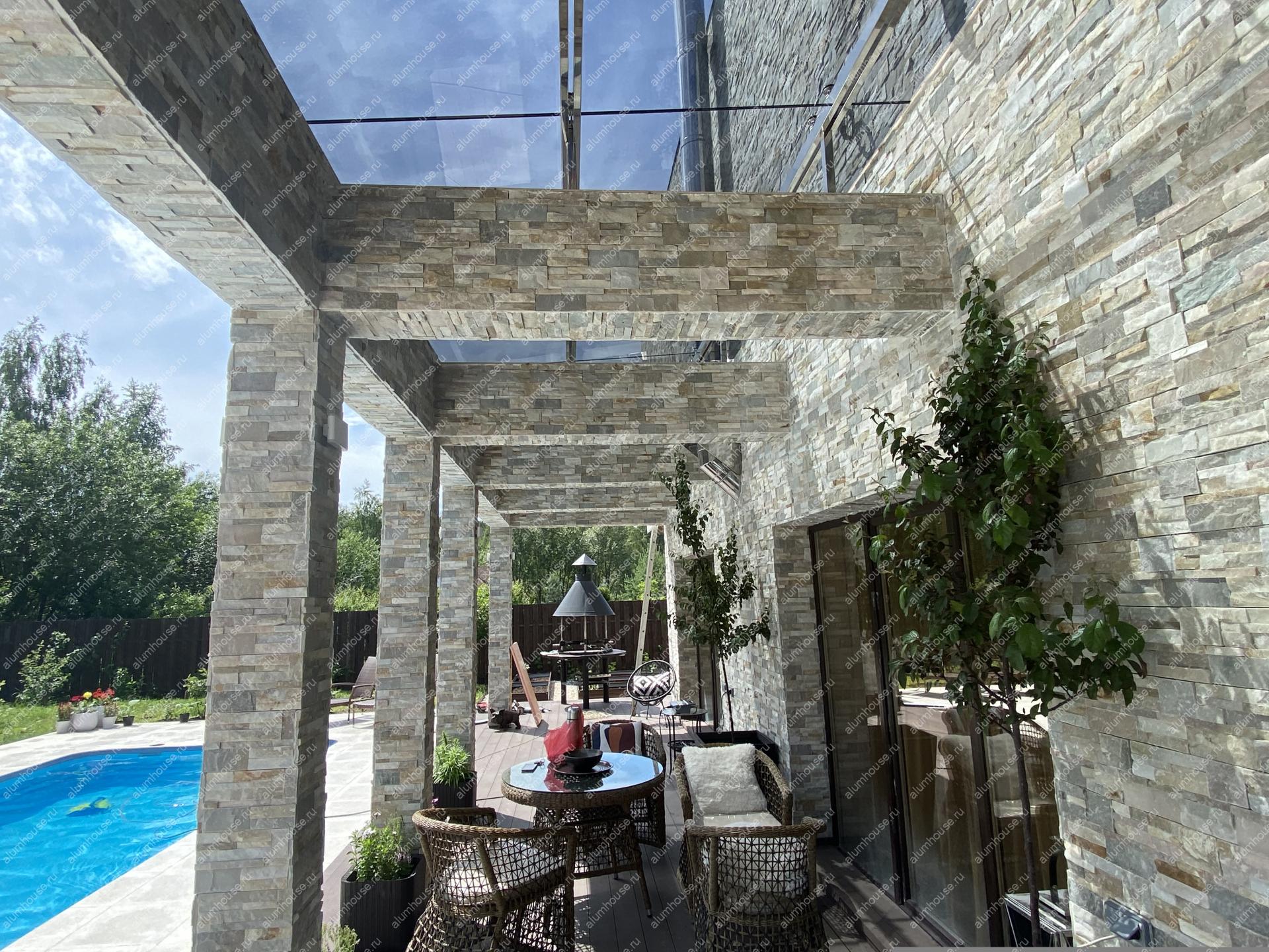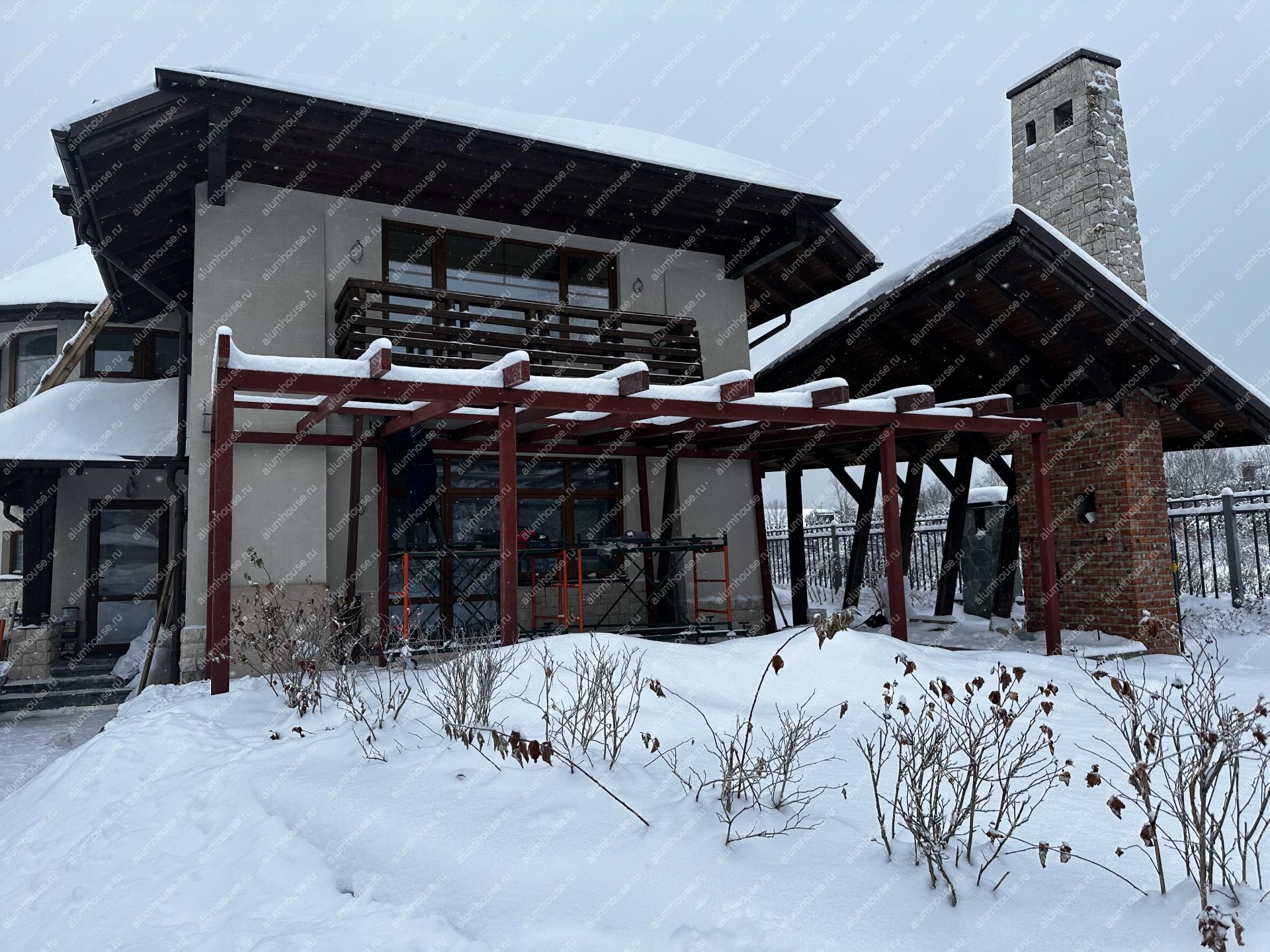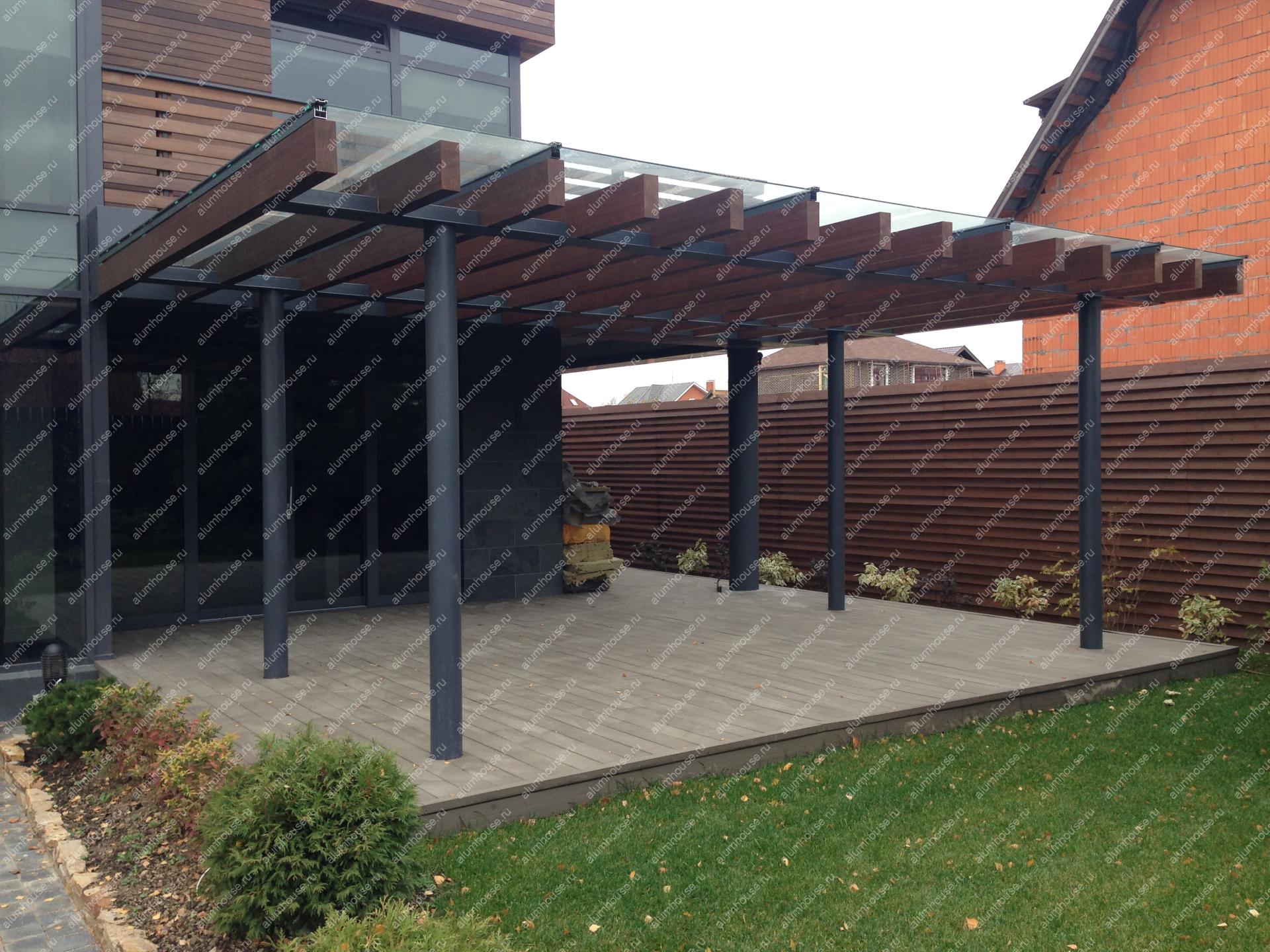Остекление деревянно-металлического навеса сделает большую часть вашего открытого пространства полезной в течение всего года. Навес обеспечивает защиту от снега, дождя и ветра.