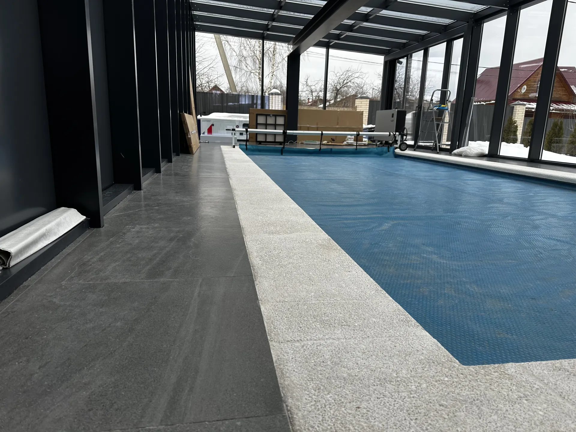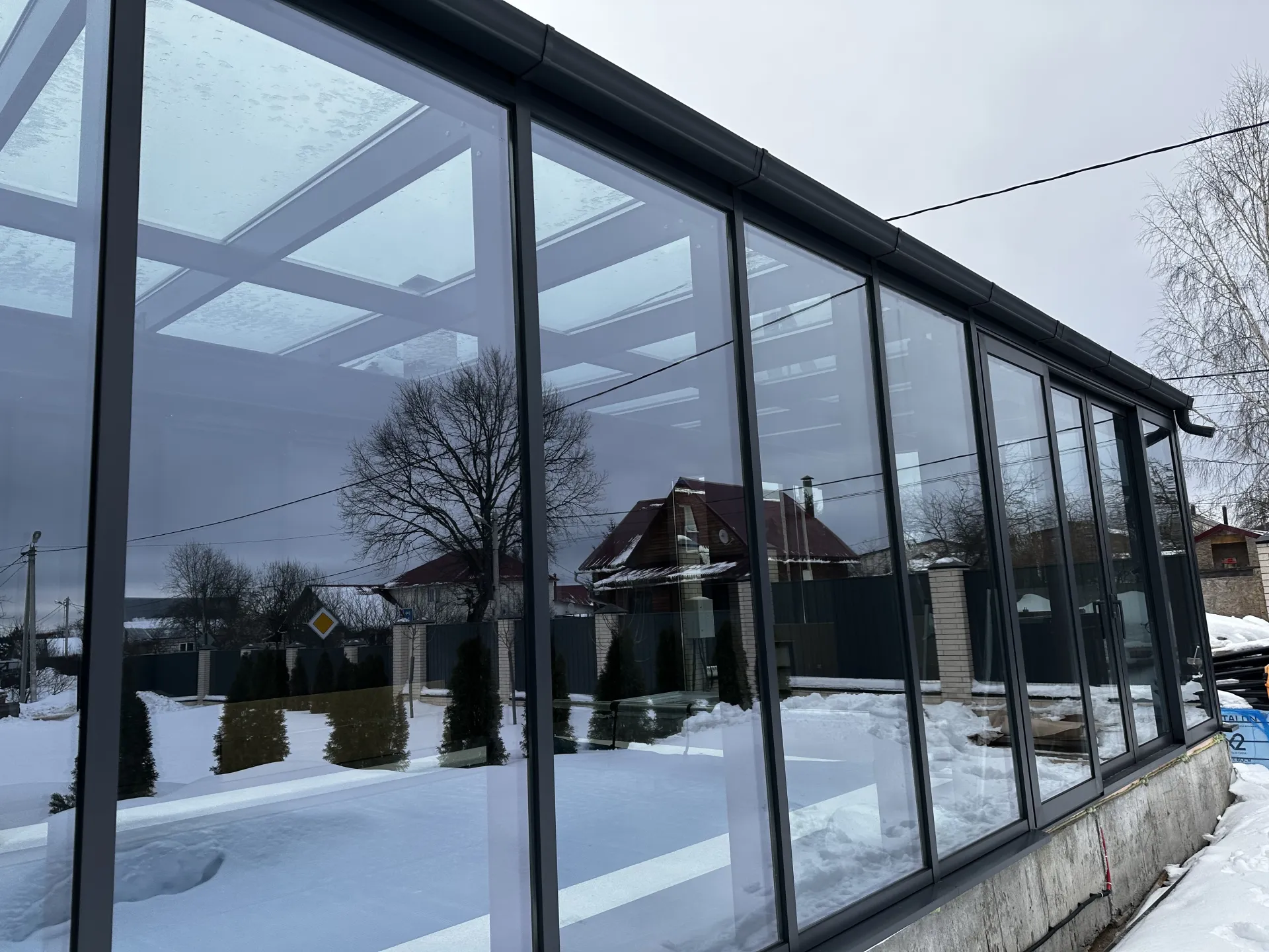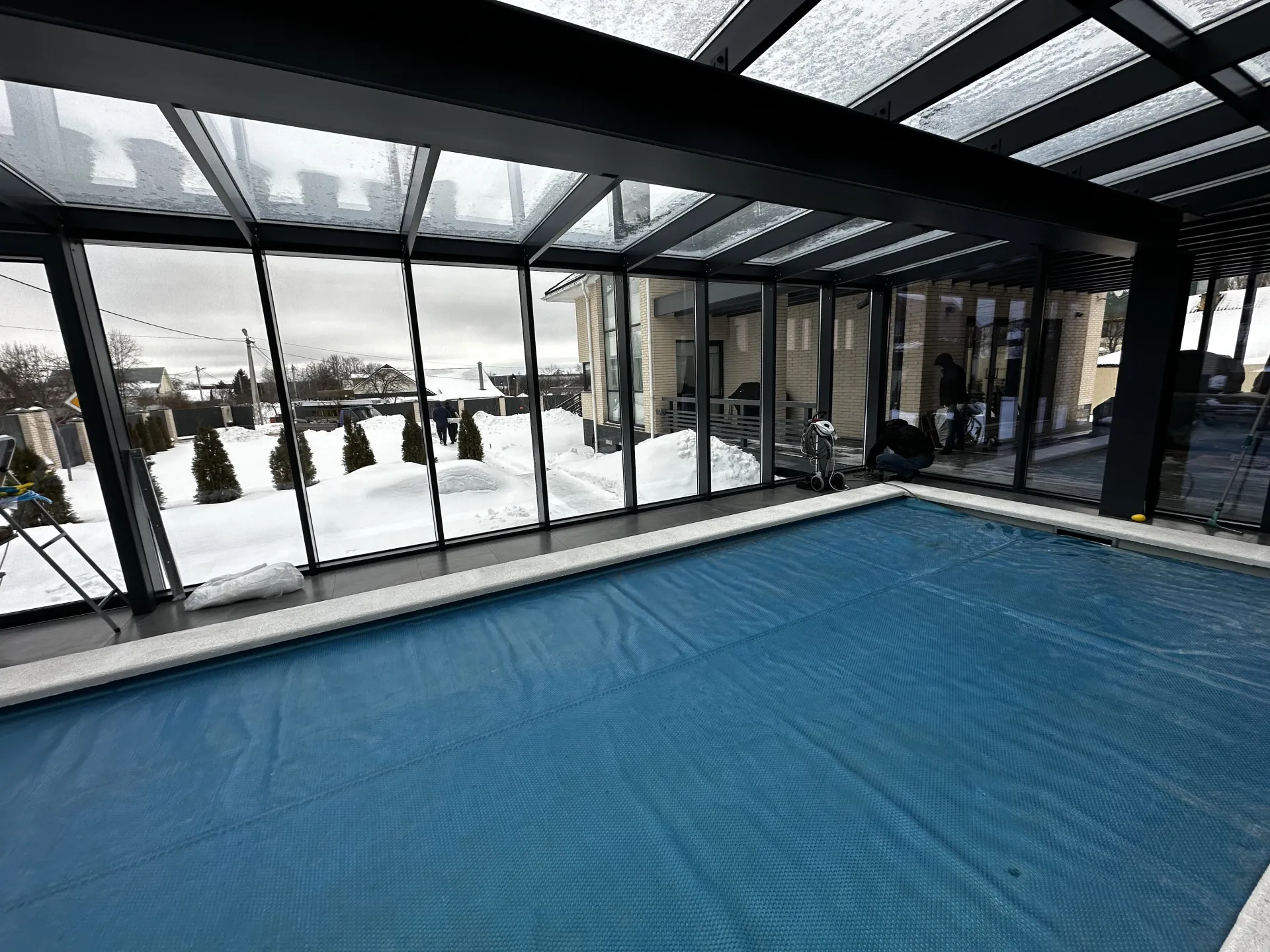 В зависимости от задач проекта используется теплое или холодное остекление. Теплое остекление подходит для бассейна в доме или зимнего сада, обеспечивая высокую теплоизоляцию. Холодное остекление применяется для открытого типа объектов и павильонов с крышей.
