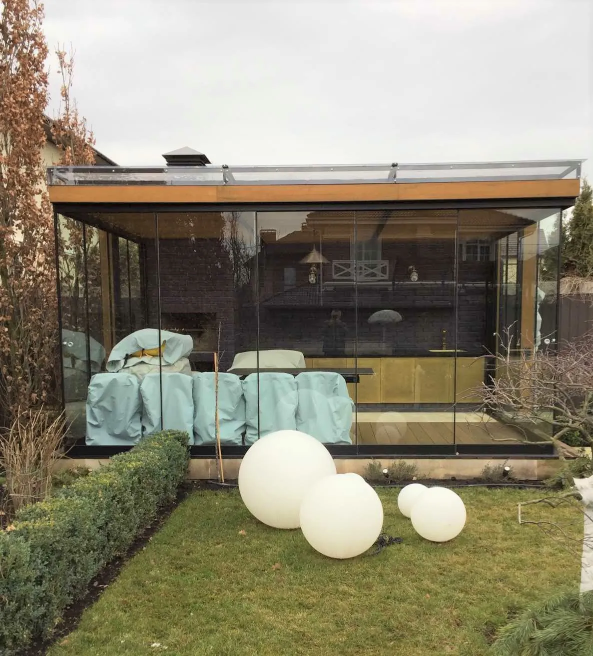 Холодное остекление беседок подходит для сезонного использования. В отличие от теплых систем со стеклопакетом, холодное остекление не предусматривает полноценную теплоизоляцию. Однако такие окна хорошо защищают пространство беседки и создают комфортное помещение для отдыха на даче.