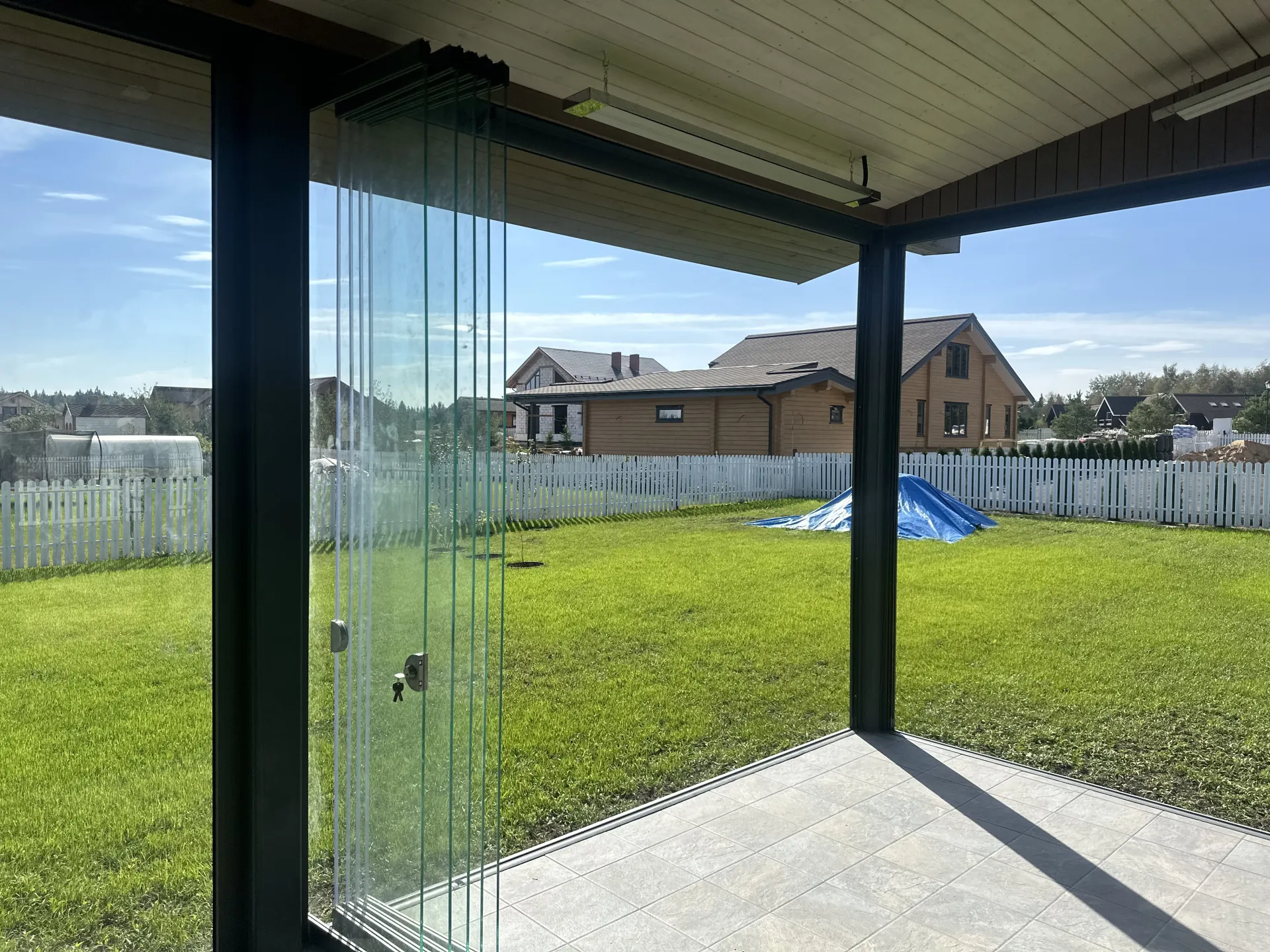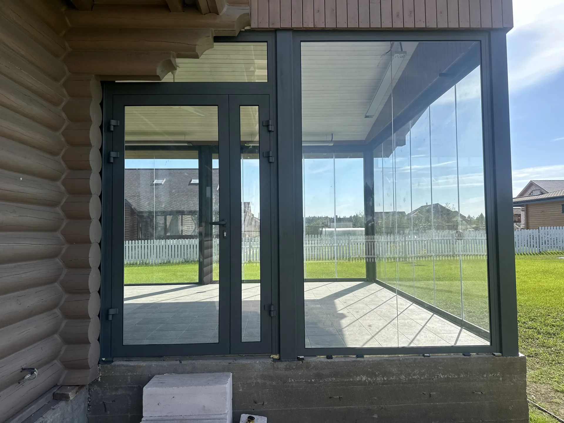 Если требуется более легкое решение, можно выбрать холодное остекление террасы. Холодное остекление чаще применяется для летних веранд, беседок или дач. В этом случае устанавливаются алюминиевые системы с одинарным стеклом или облегчённым стеклопакетом. Холодное остекление защищает помещение от ветра и осадков, при этом сохраняет панорамный вид.