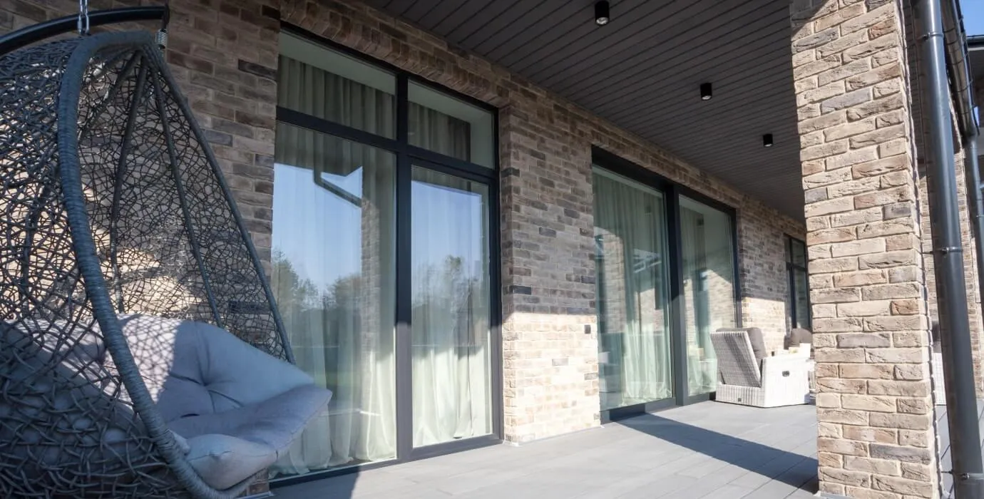 Остекление веранды и террасы может быть выполнено в панорамном формате. Панорамное остекление визуально увеличивает пространство, обеспечивает отличную освещенность и современный дизайн фасадов дома. Раздвижные и распашные створки удобны в эксплуатации, а глухие элементы подходят для больших проемов. Сдвижные системы экономят место, а двери — входные или балконные — дополняют общую группу конструкций.